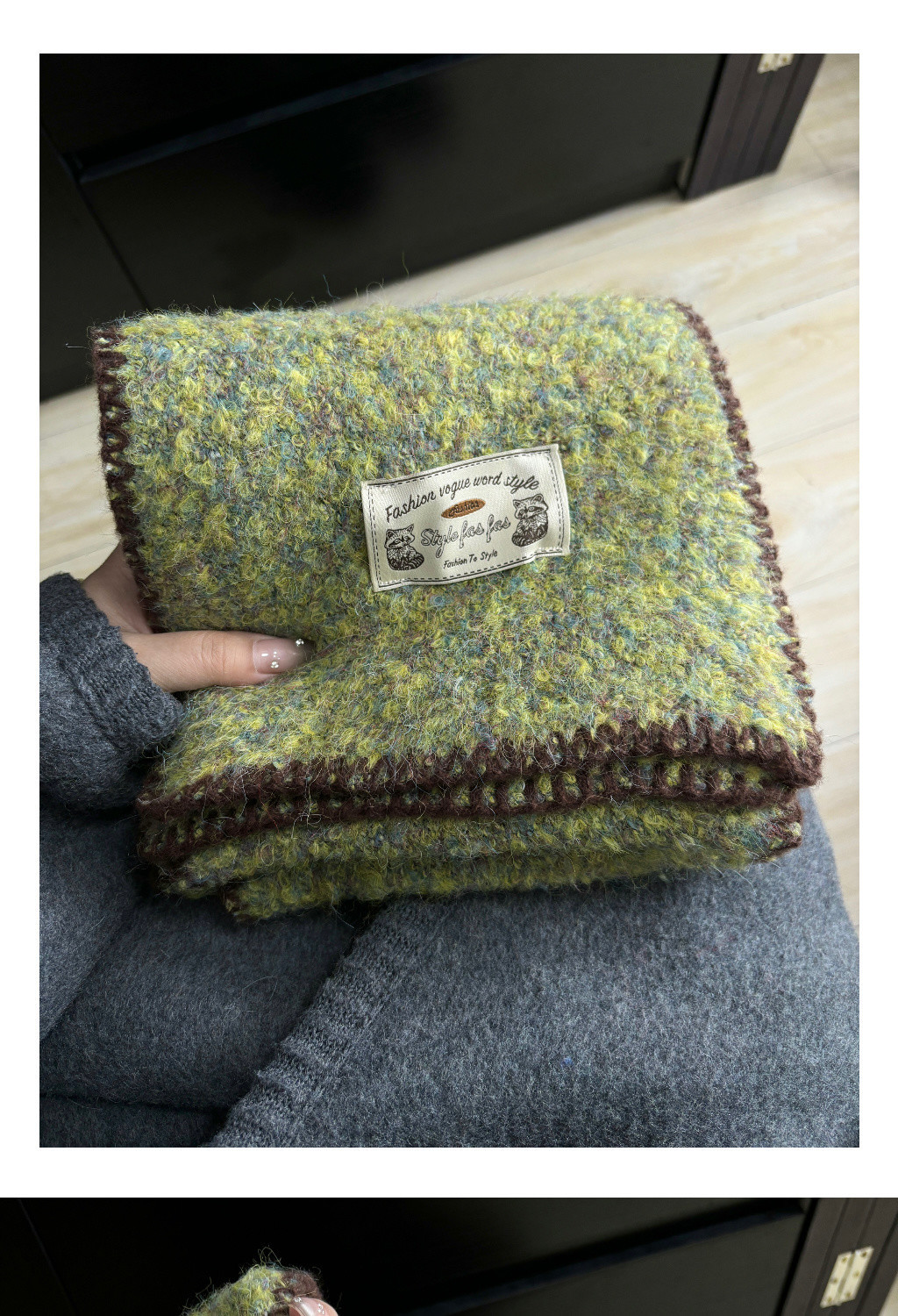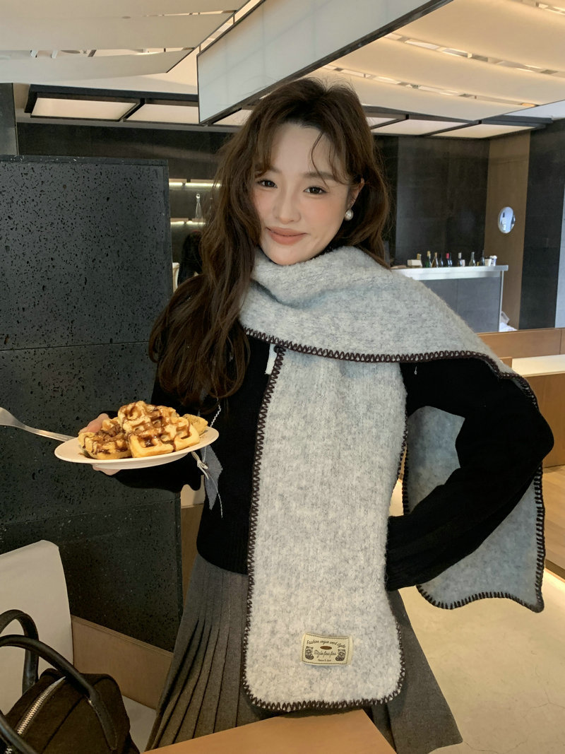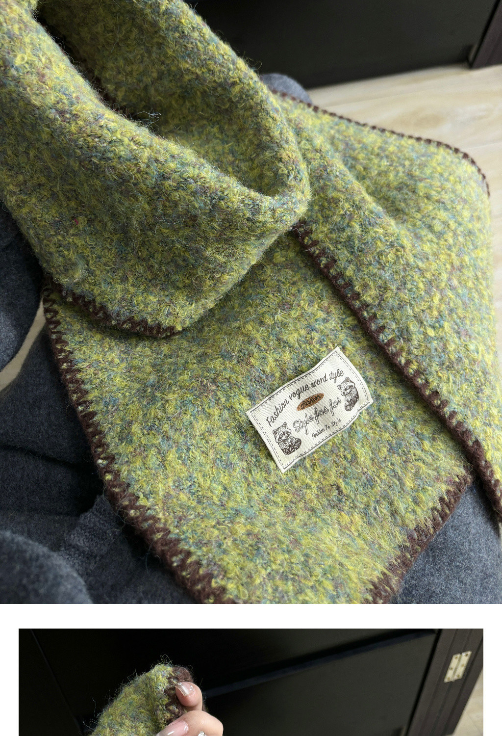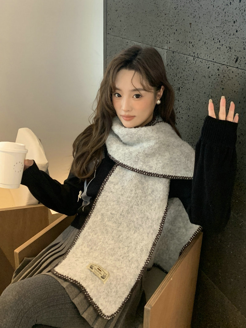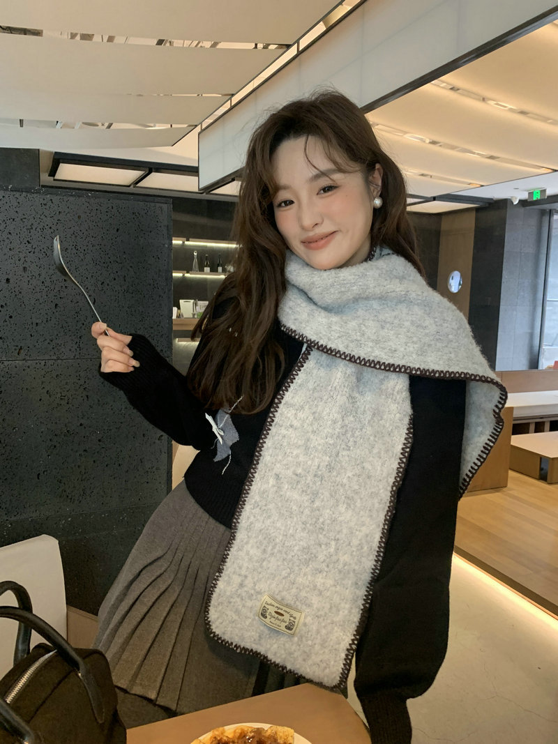 빈티지 엣지 스카프 여성의 가을과 겨울 2024 새로운 고급 한국 스타일 따뜻한 두꺼운 스카프 다크 그린 양모 봉제스토어 가기