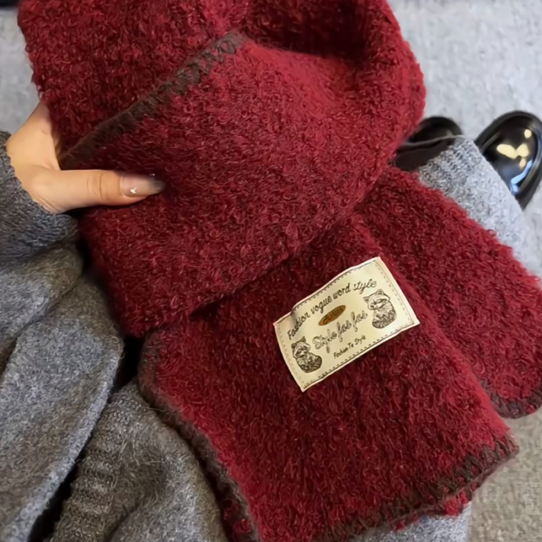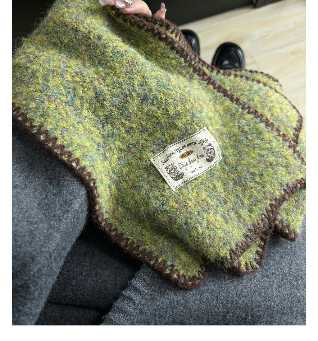 빈티지 엣지 스카프 여성의 가을과 겨울 2024 새로운 고급 한국 스타일 따뜻한 두꺼운 스카프 다크 그린 양모 봉제