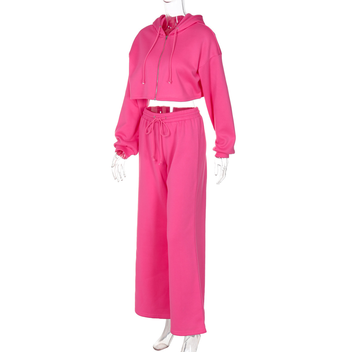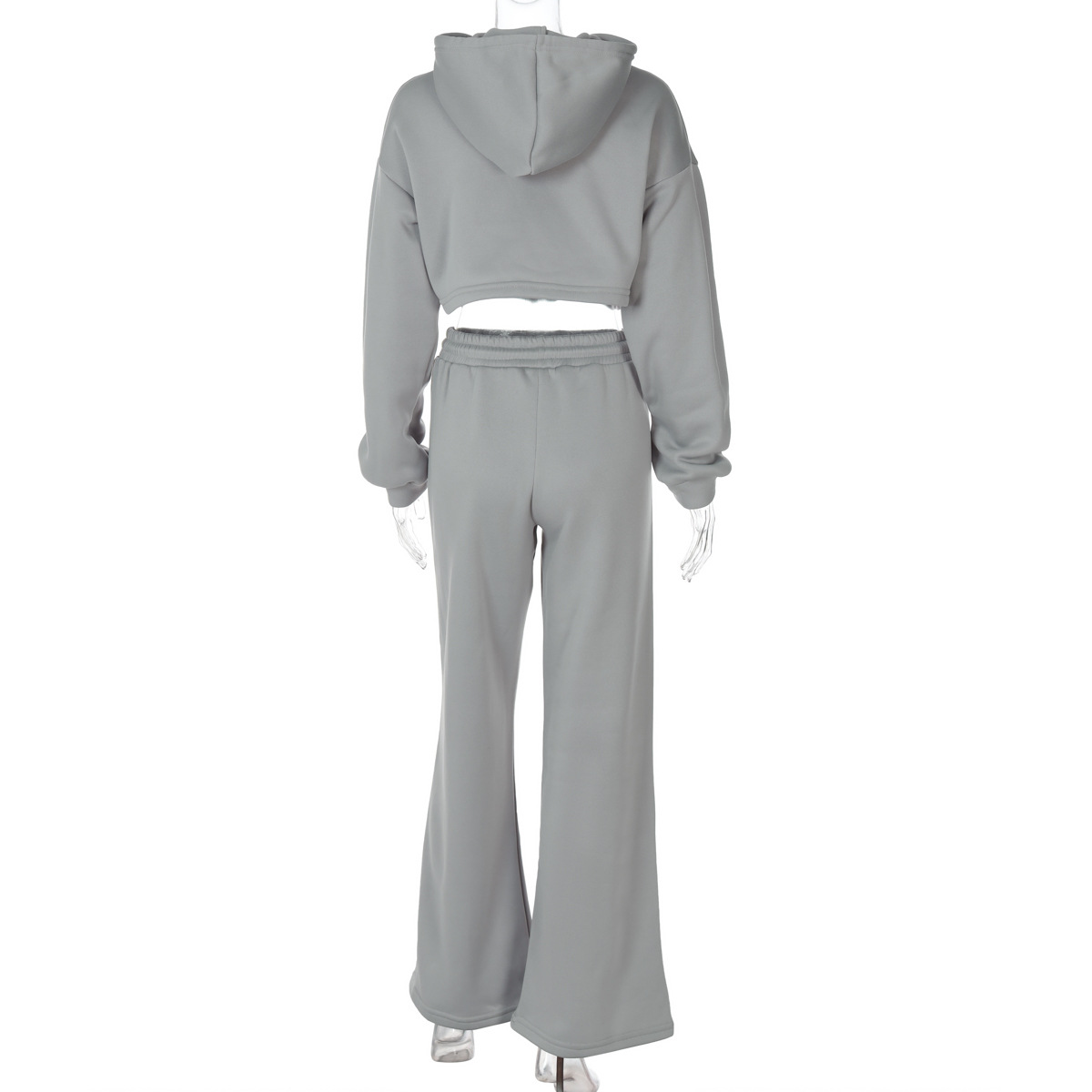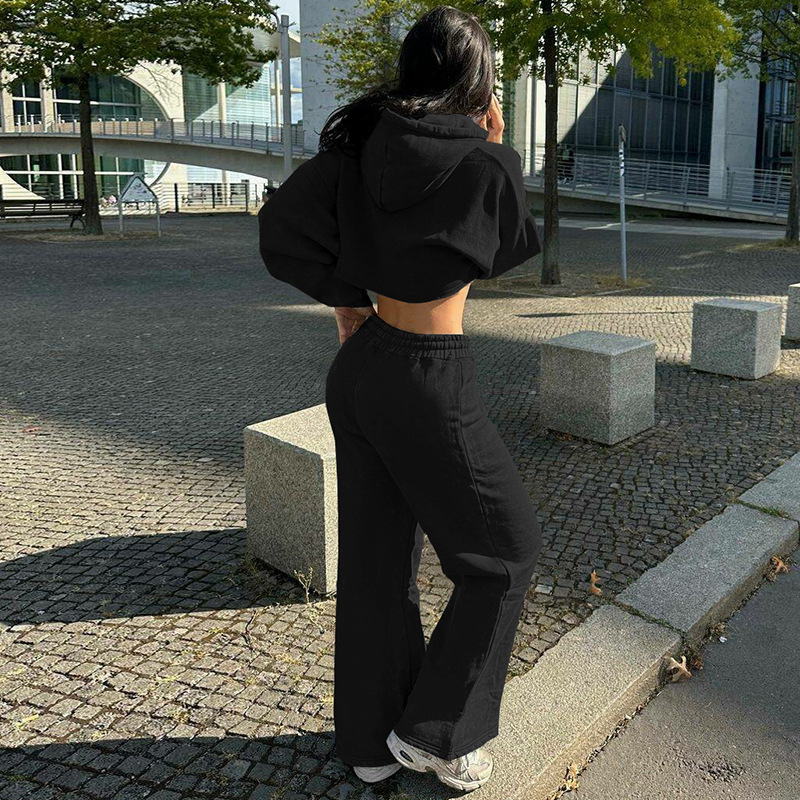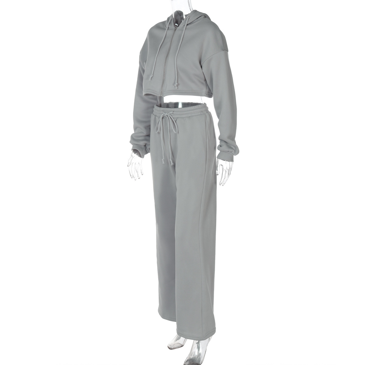 유럽과 미국 여성의 2024 가을과 겨울 새로운 패션 지퍼 후드 탑 슬림 캐주얼 바지 세트 도매