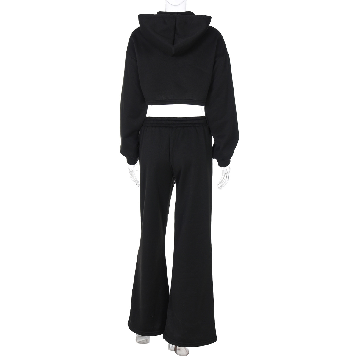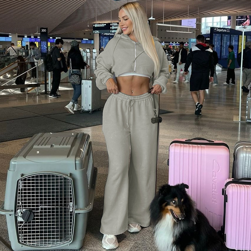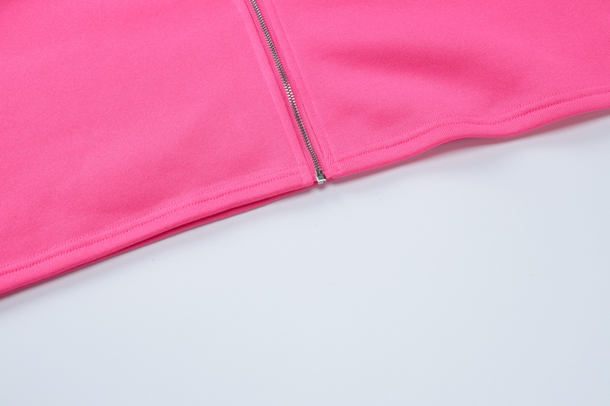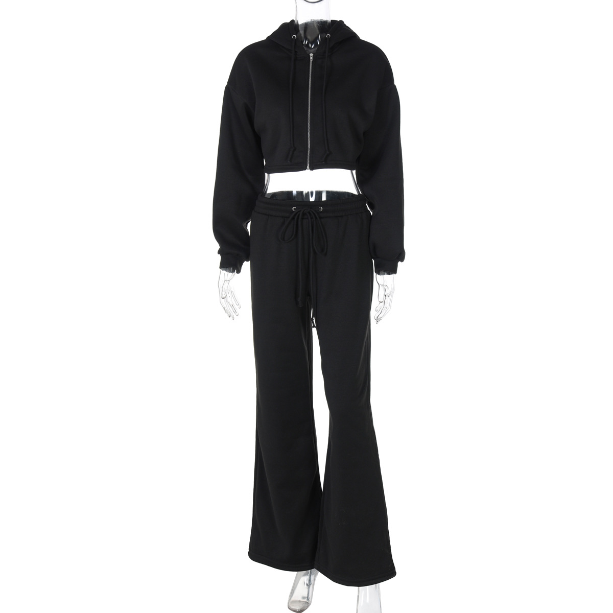 유럽과 미국 여성의 2024 가을과 겨울 새로운 패션 지퍼 후드 탑 슬림 캐주얼 바지 세트 도매