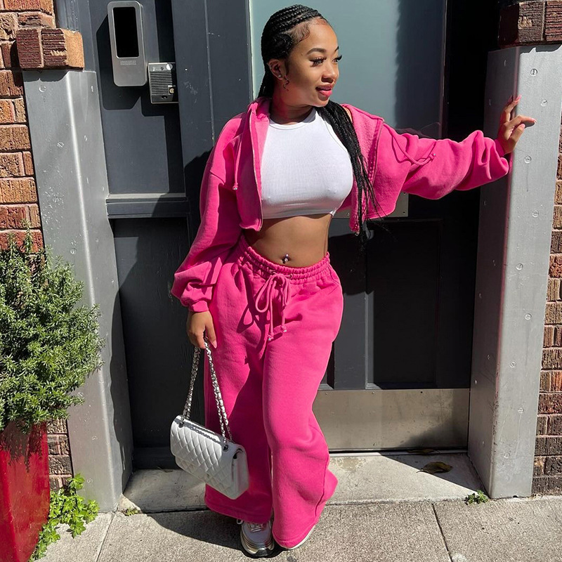 유럽과 미국 여성의 2024 가을과 겨울 새로운 패션 지퍼 후드 탑 슬림 캐주얼 바지 세트 도매스토어 가기