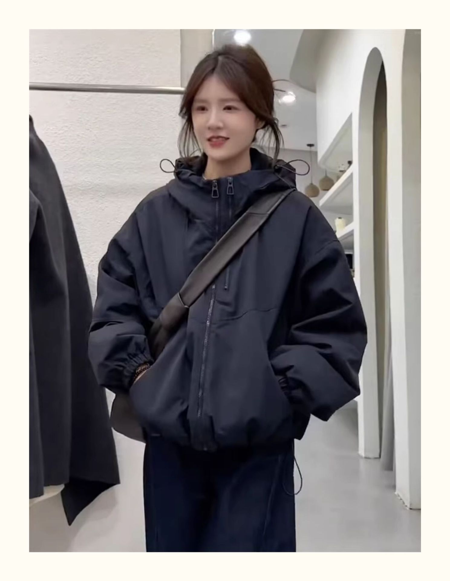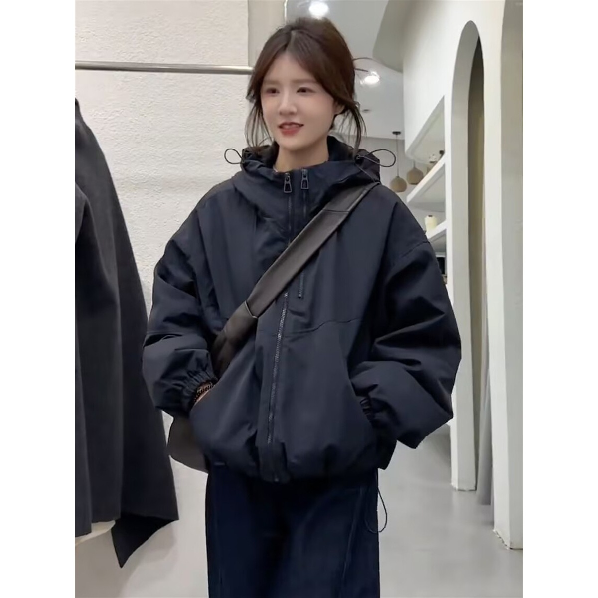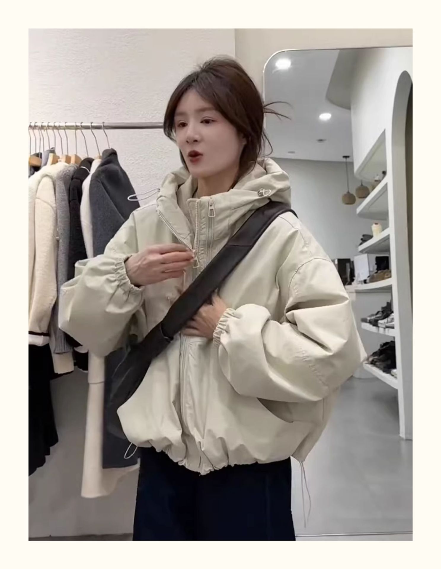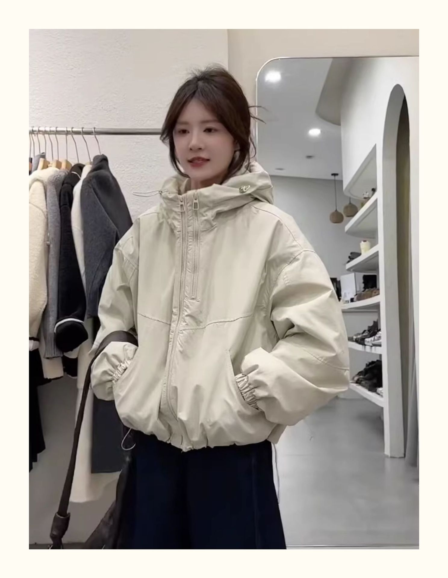 후드가 두꺼운 재킷 여성 쇼트 2024 가을과 겨울 새로운 캐주얼 루즈 패션 올 매치 재킷 탑스토어 가기