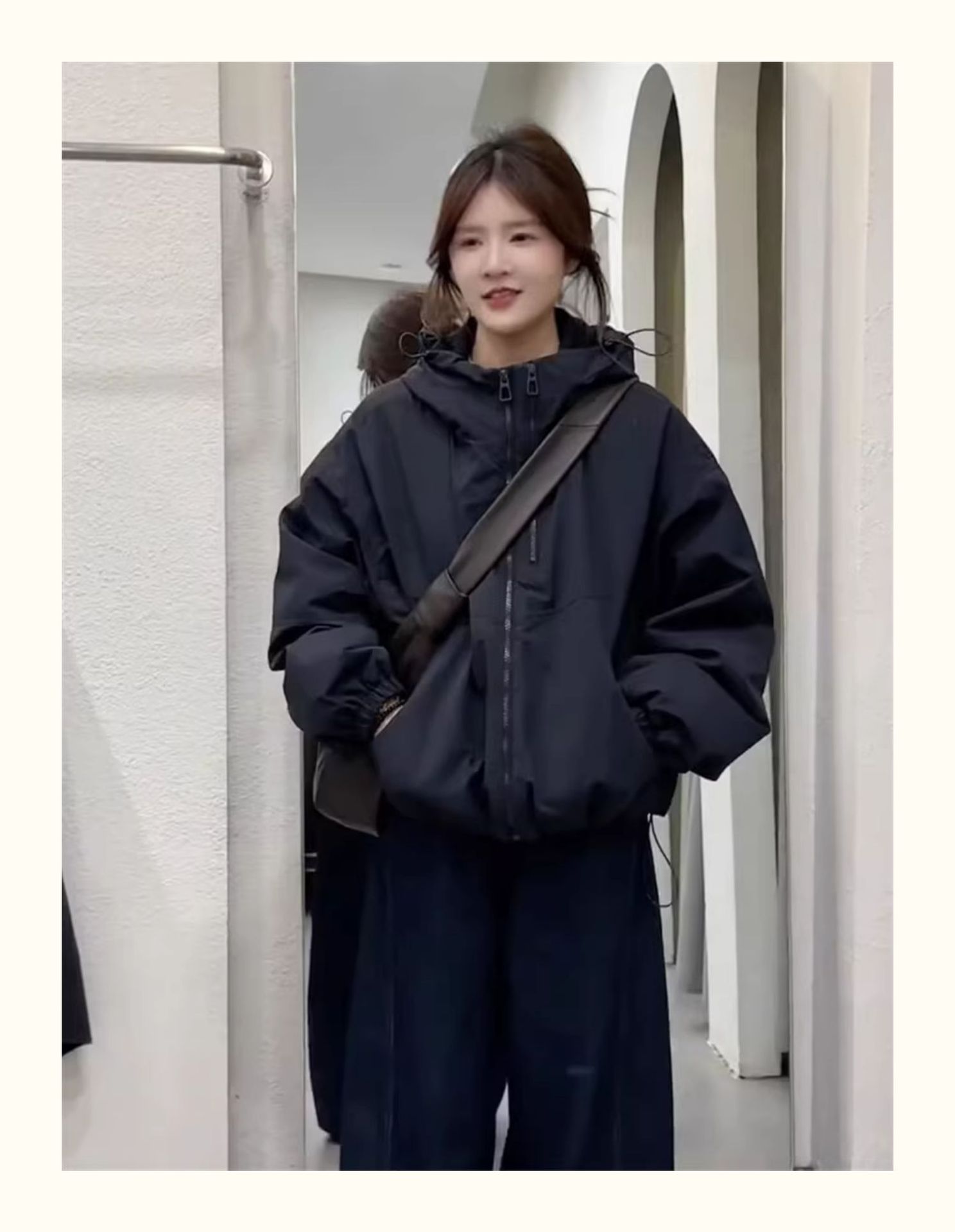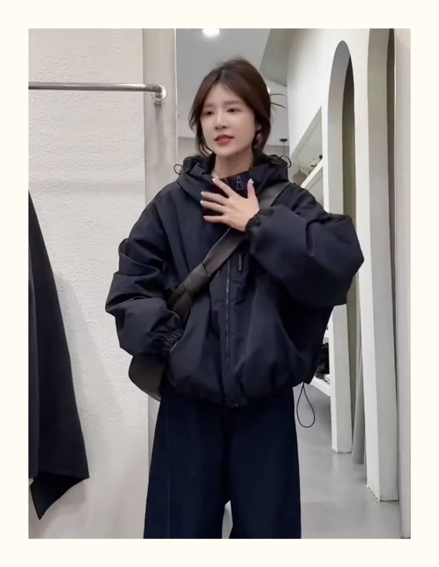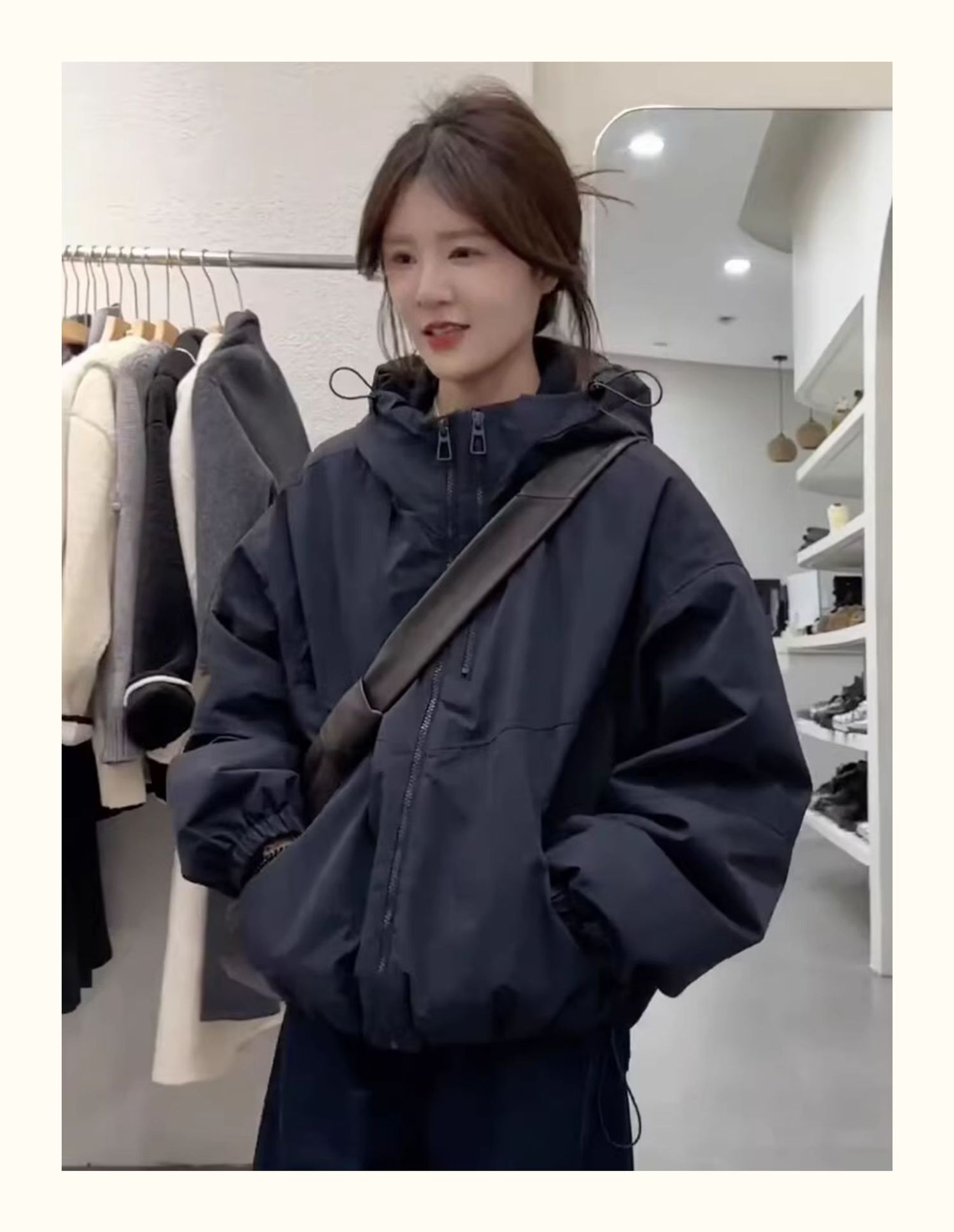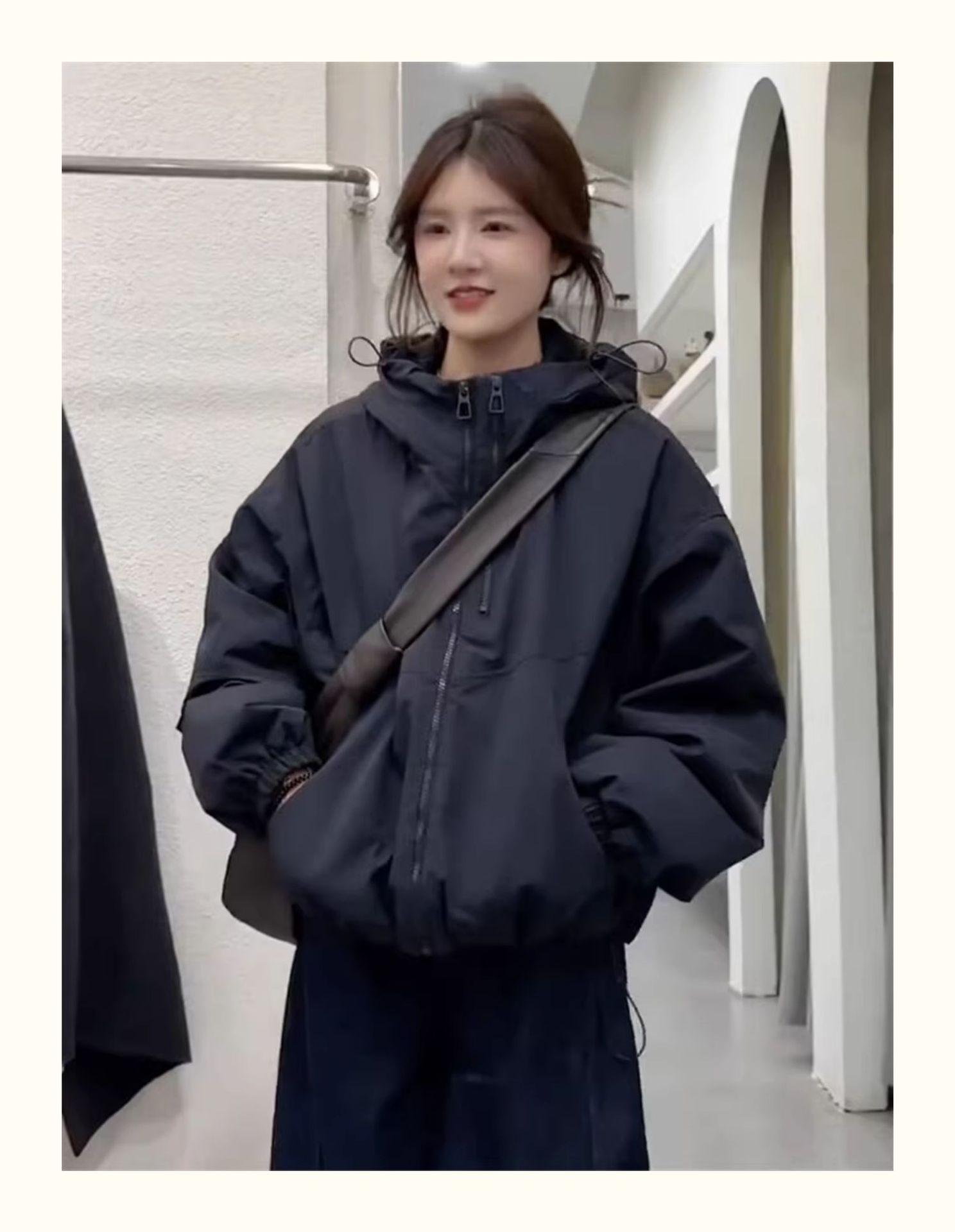 후드가 두꺼운 재킷 여성 쇼트 2024 가을과 겨울 새로운 캐주얼 루즈 패션 올 매치 재킷 탑스토어 가기