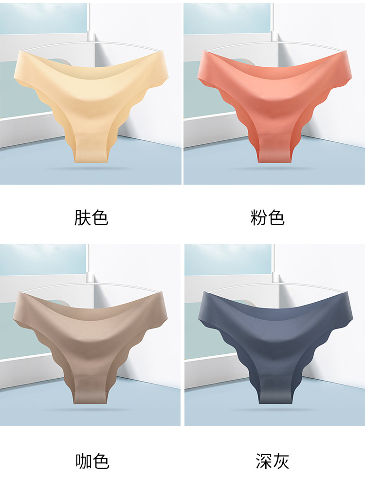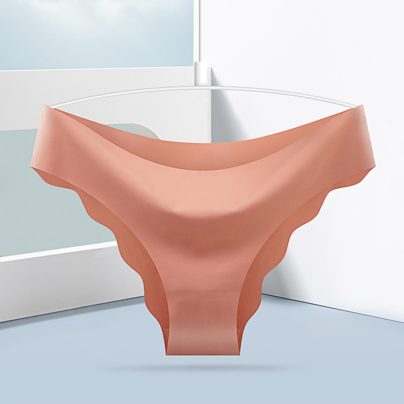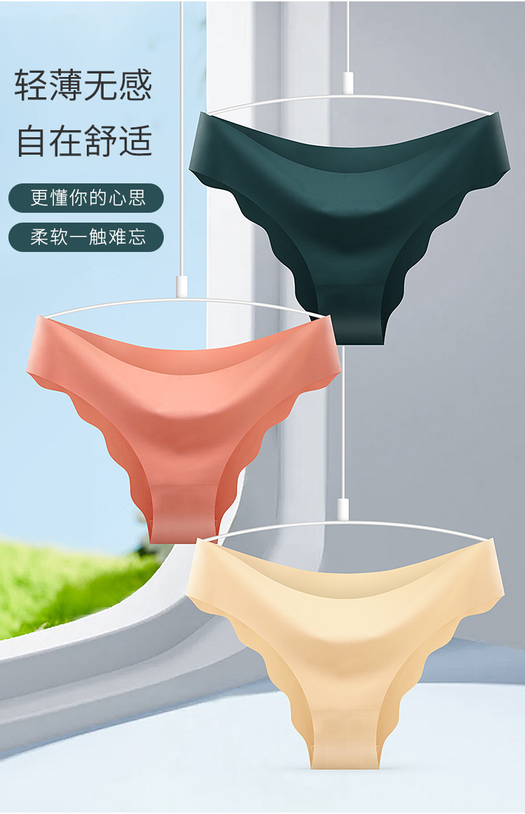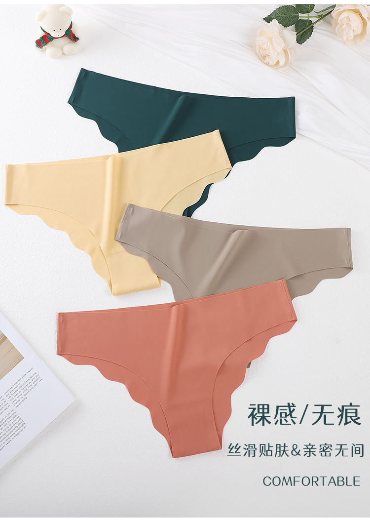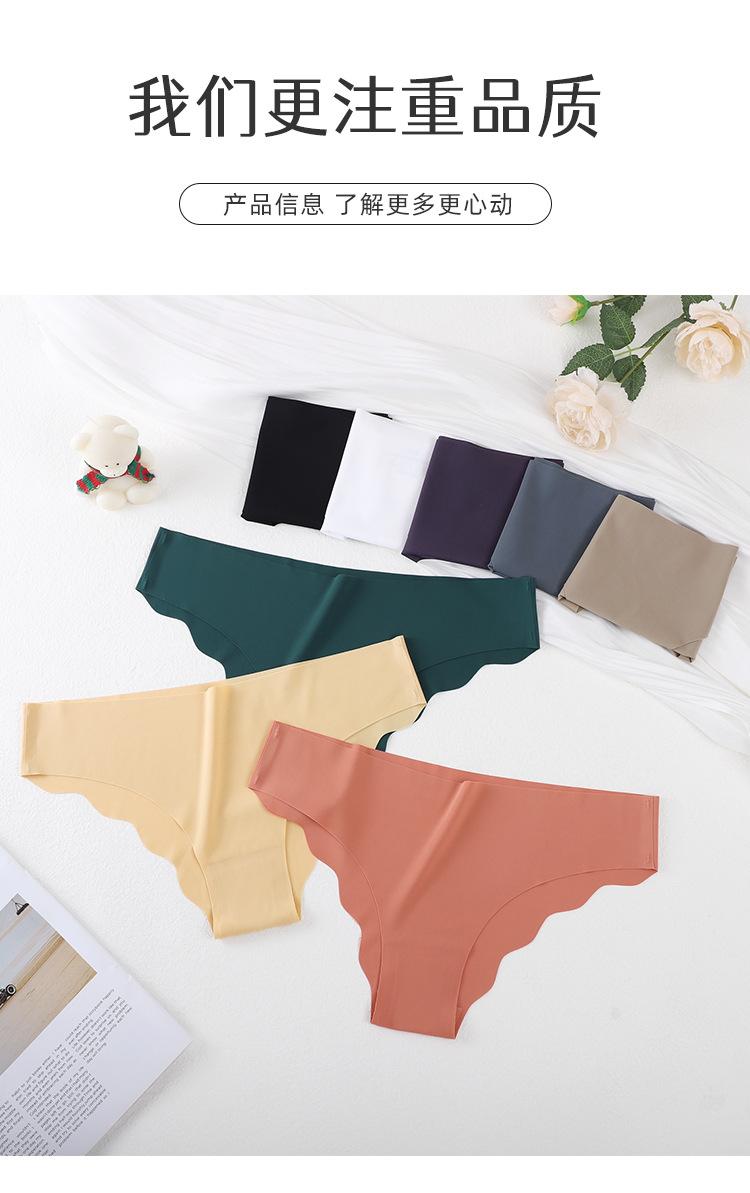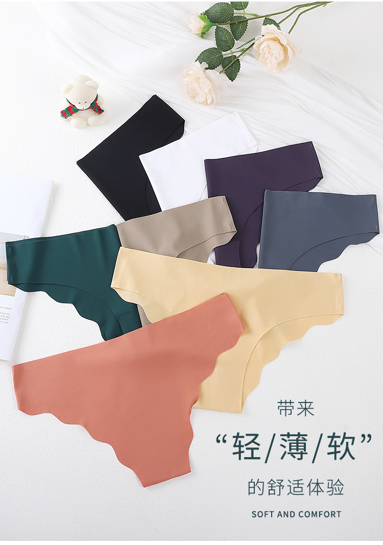 [공장 찾기] 여성을 위한 국경 간 유럽 및 미국 심리스 아이스 실크 속옷, 물결 모양의 가장자리 단색 올인원 소녀 팬티스토어 가기
