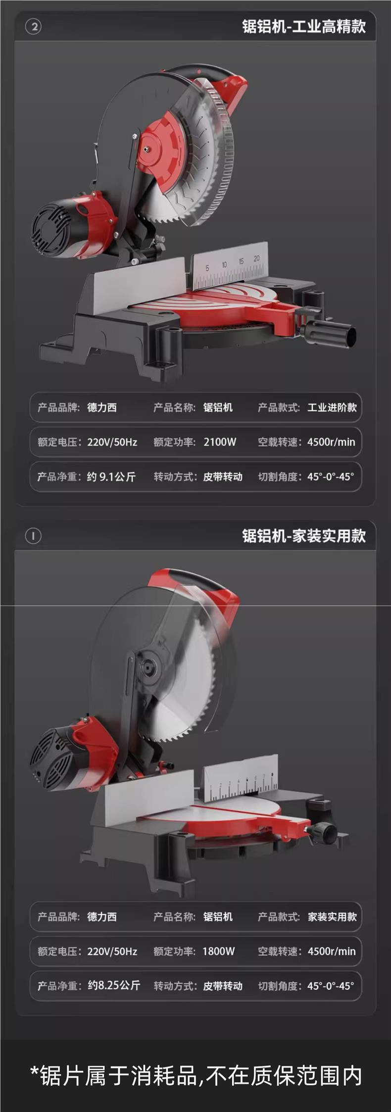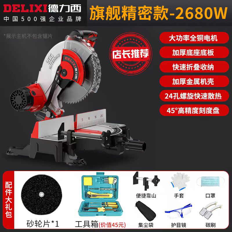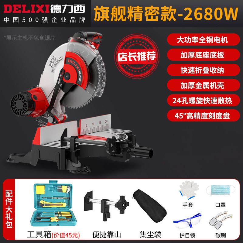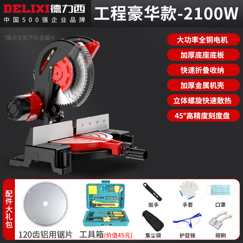 Delixi 알루미늄 톱질 기계 다기능 절단기 10 인치 높은 정밀도는 알루미늄 합금 목재 알루미늄 45 도 마이터 톱을 보았다