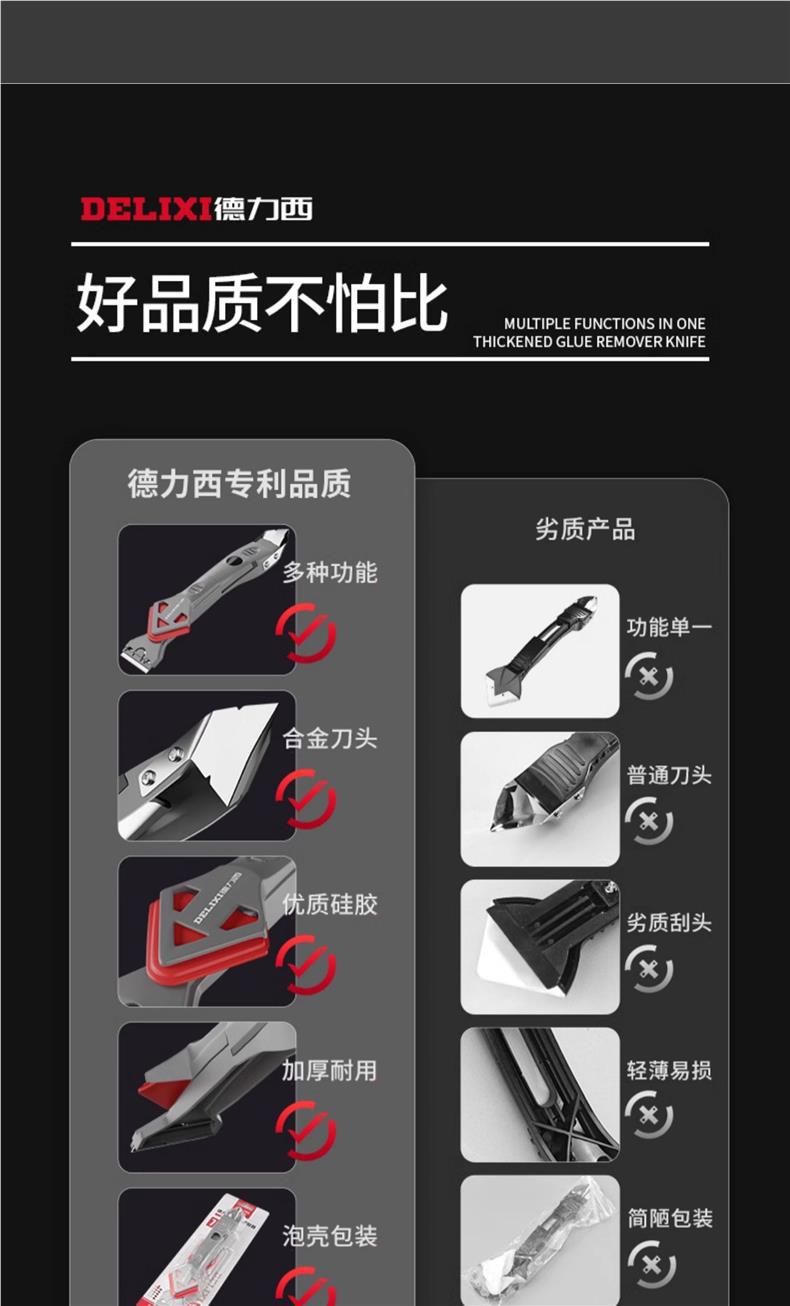 Delixi 스크레이퍼 접착제 긁는 유물 스크레이퍼 유리 접착제 트리밍 다기능 스무딩 뷰티 재봉 도구 접착제 삽스토어 가기