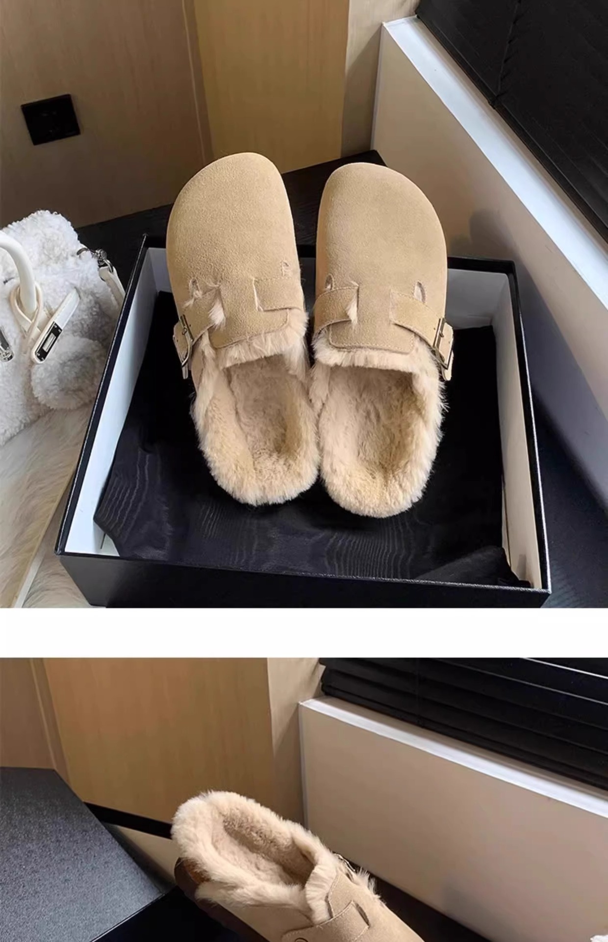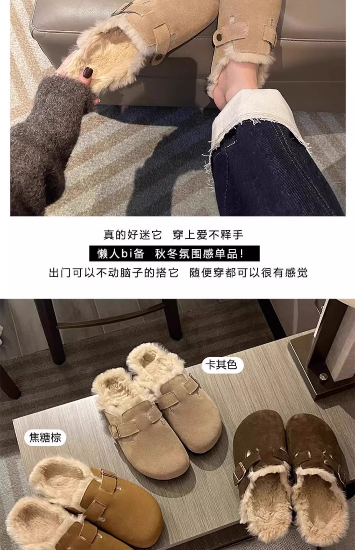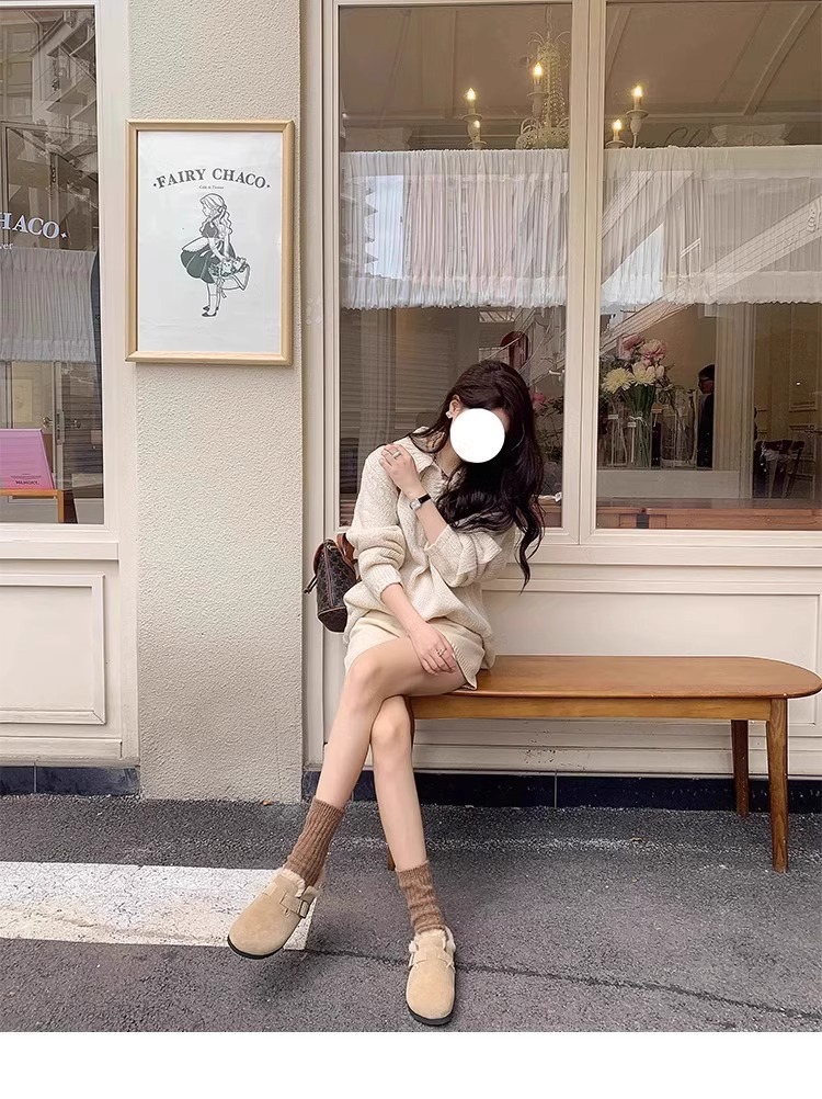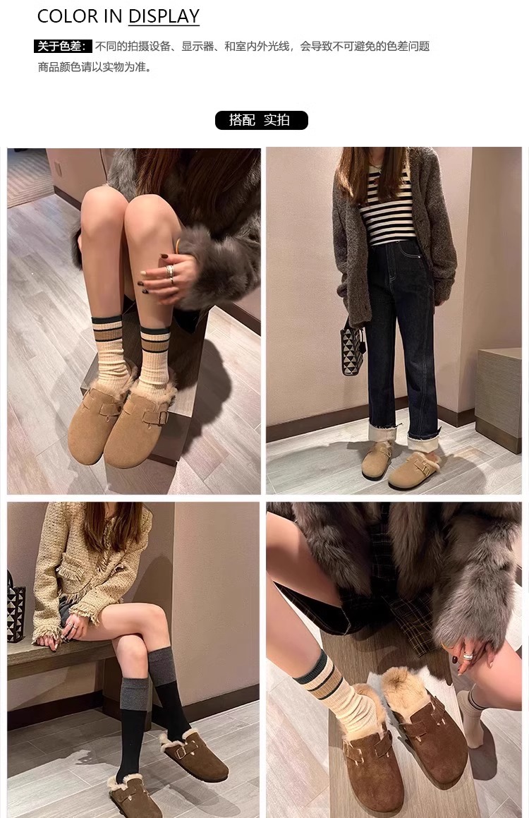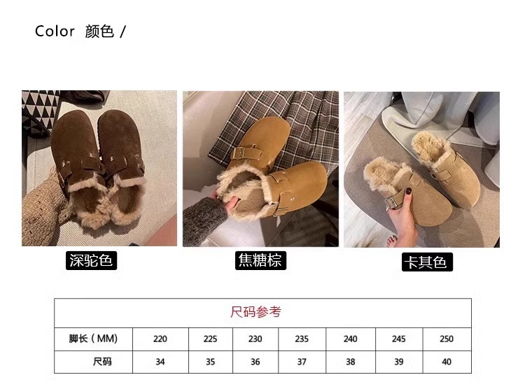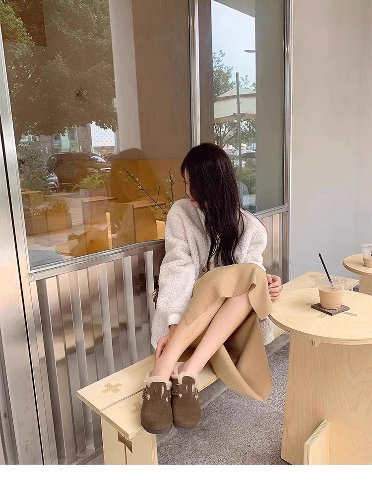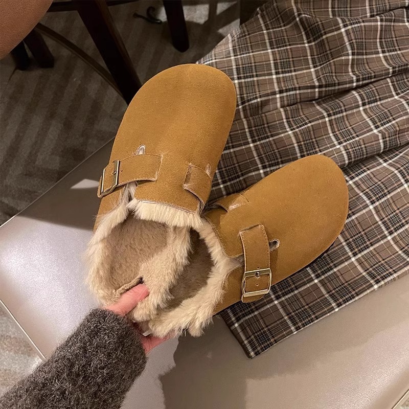 레트로 플러시 두꺼운 밑창 보켄 슈즈 여성용 2025 가을 겨울 신상 플러시 토캡 반슬립 슬리퍼스토어 가기