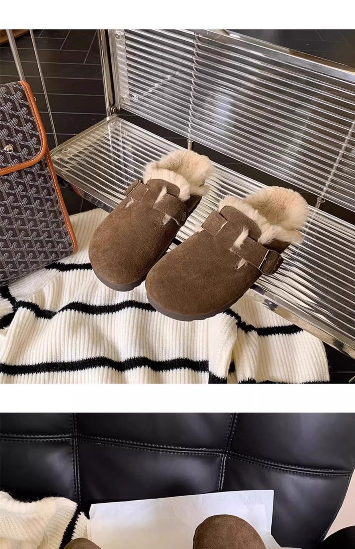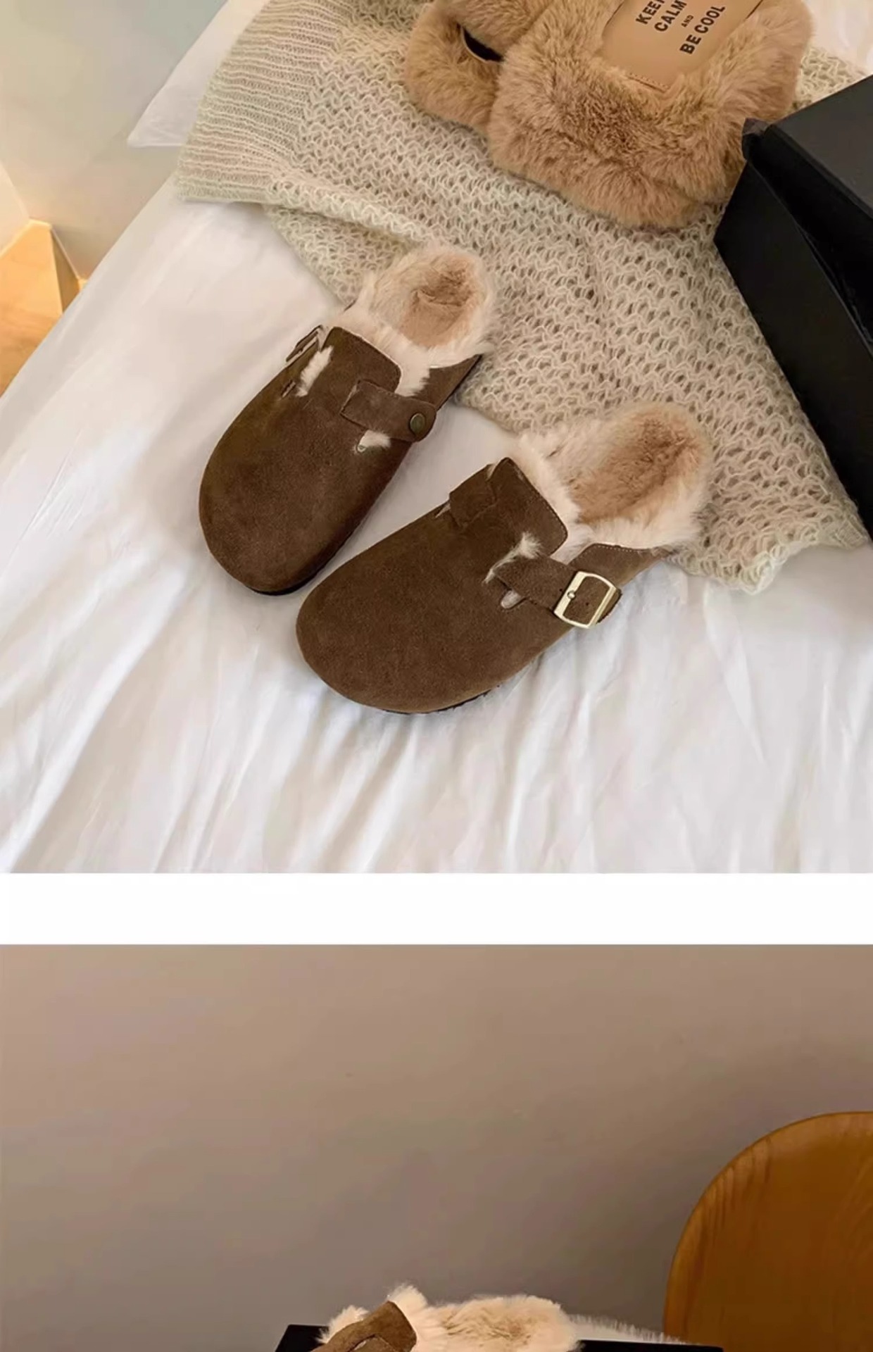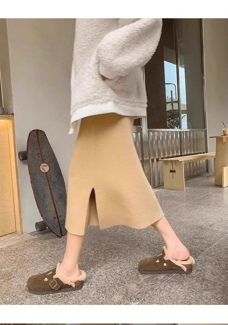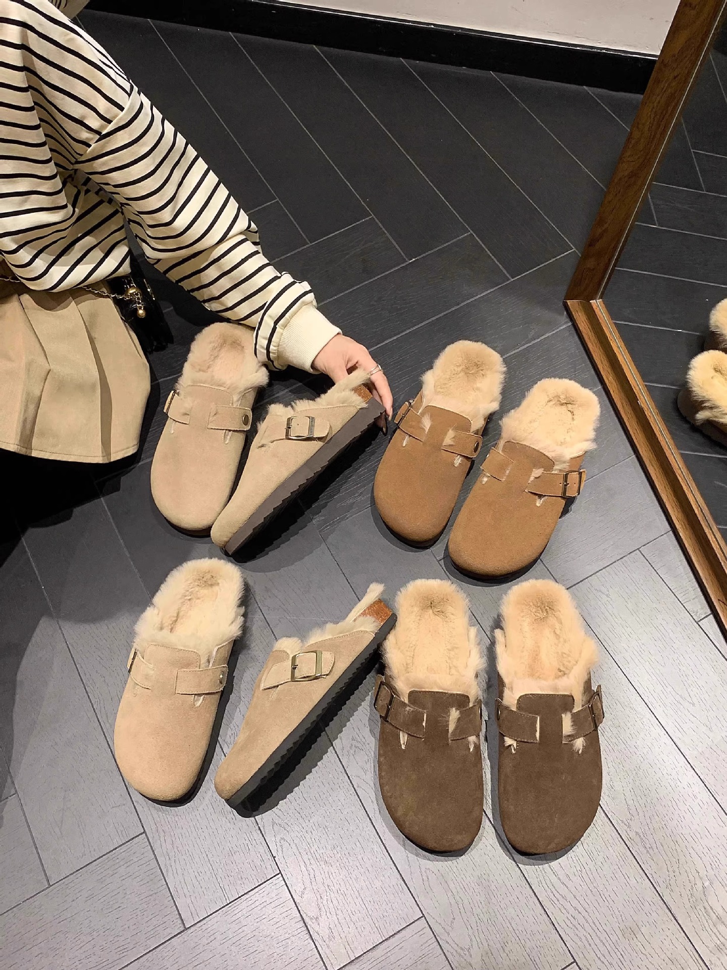 레트로 플러시 두꺼운 밑창 보켄 슈즈 여성용 2025 가을 겨울 신상 플러시 토캡 반슬립 슬리퍼스토어 가기