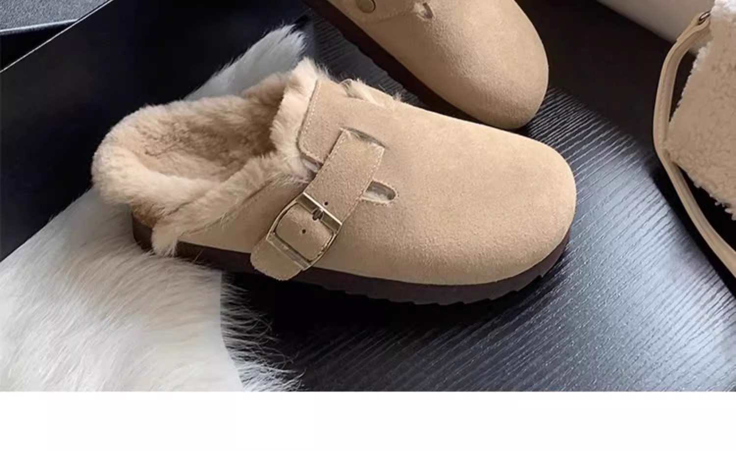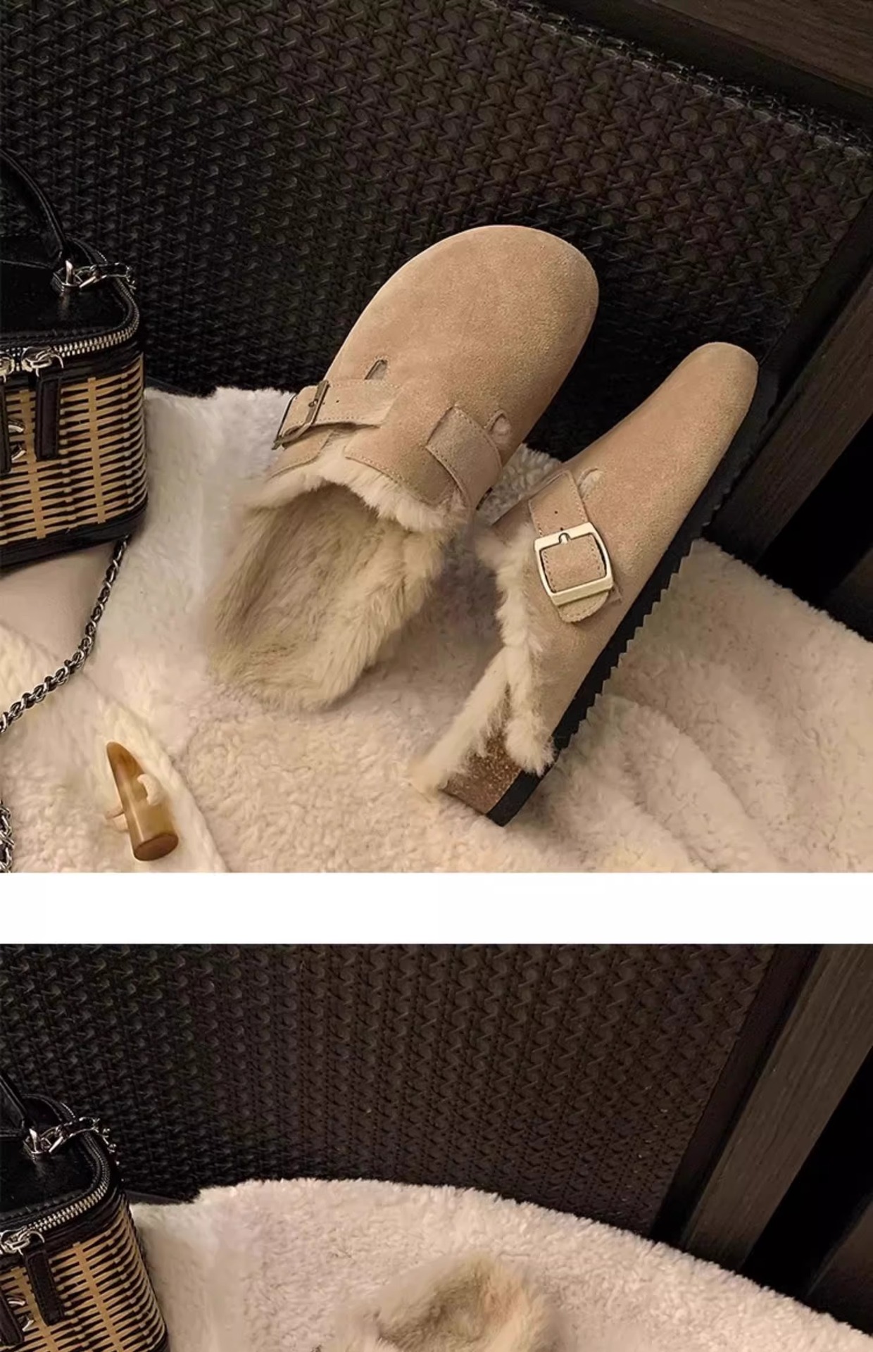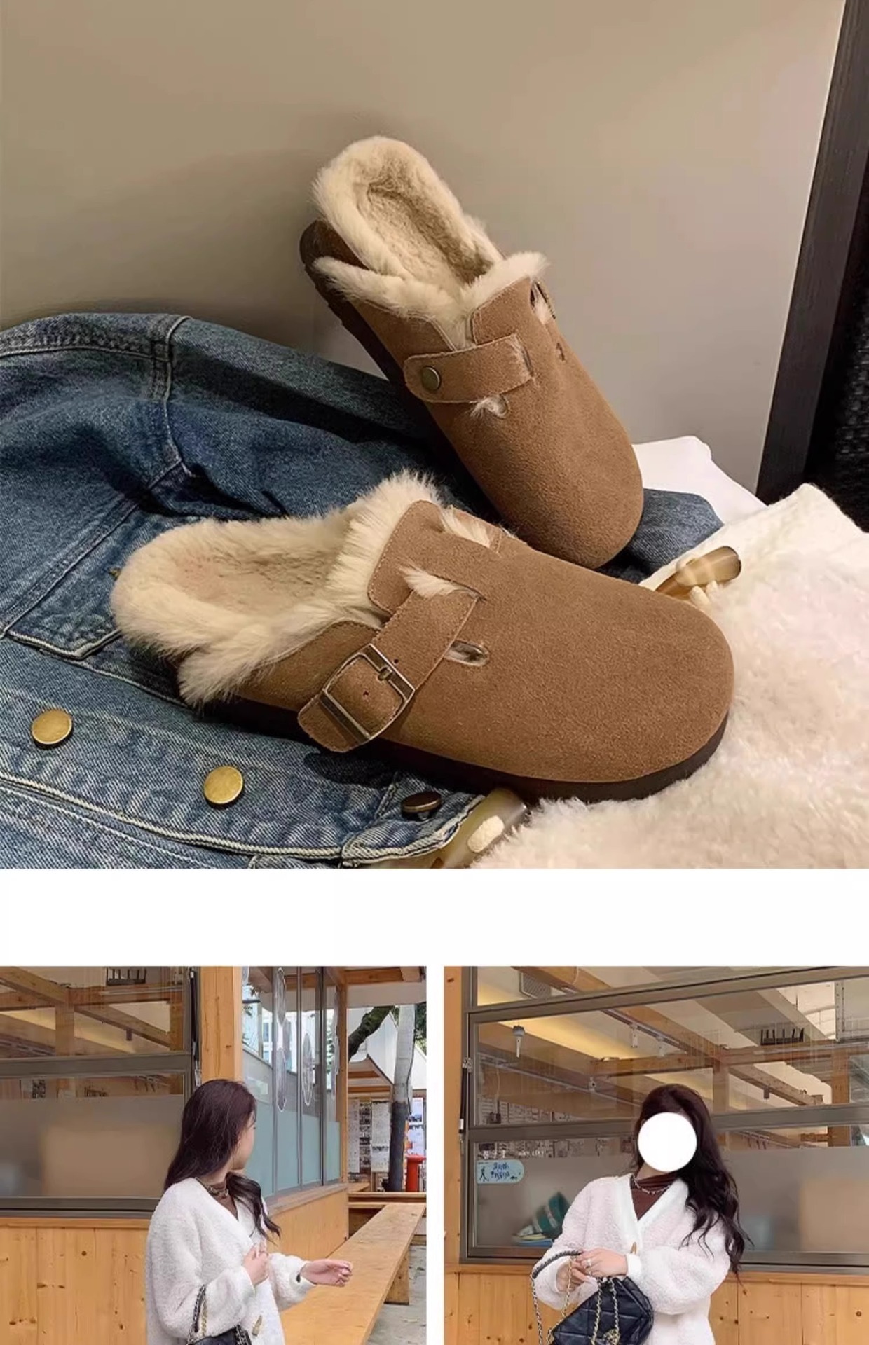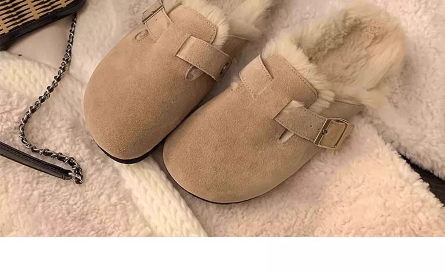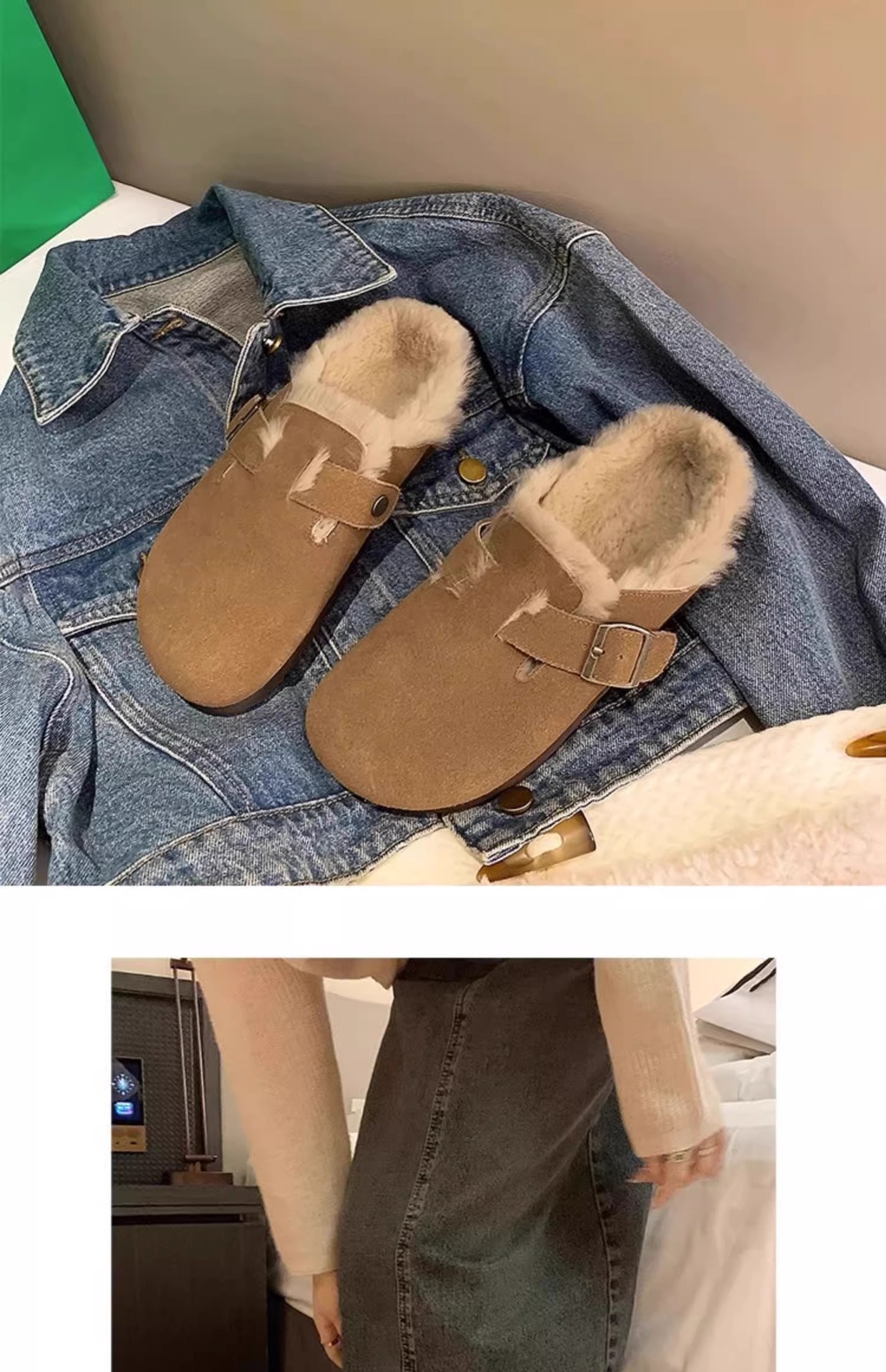 레트로 플러시 두꺼운 밑창 보켄 슈즈 여성용 2025 가을 겨울 신상 플러시 토캡 반슬립 슬리퍼스토어 가기