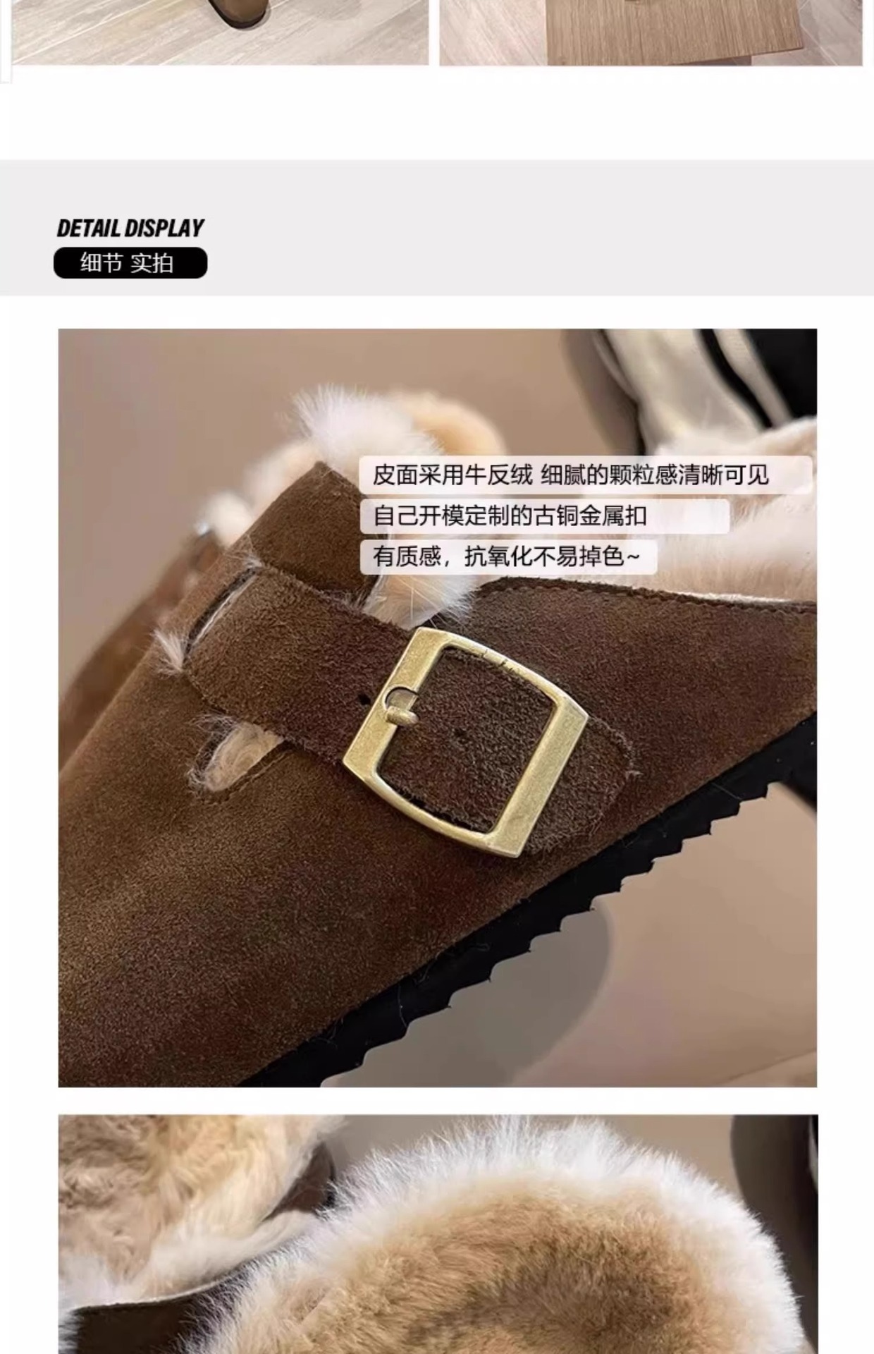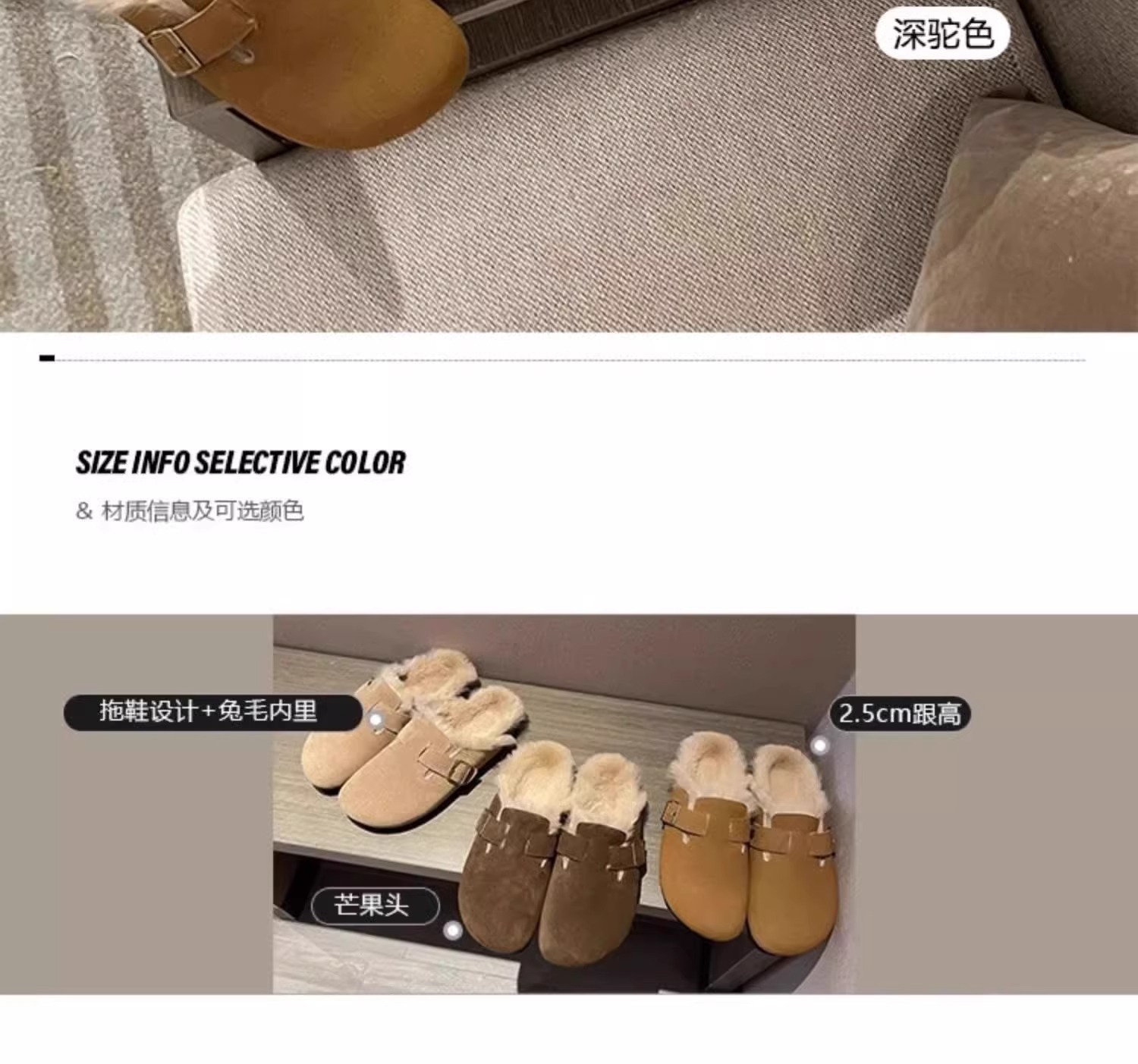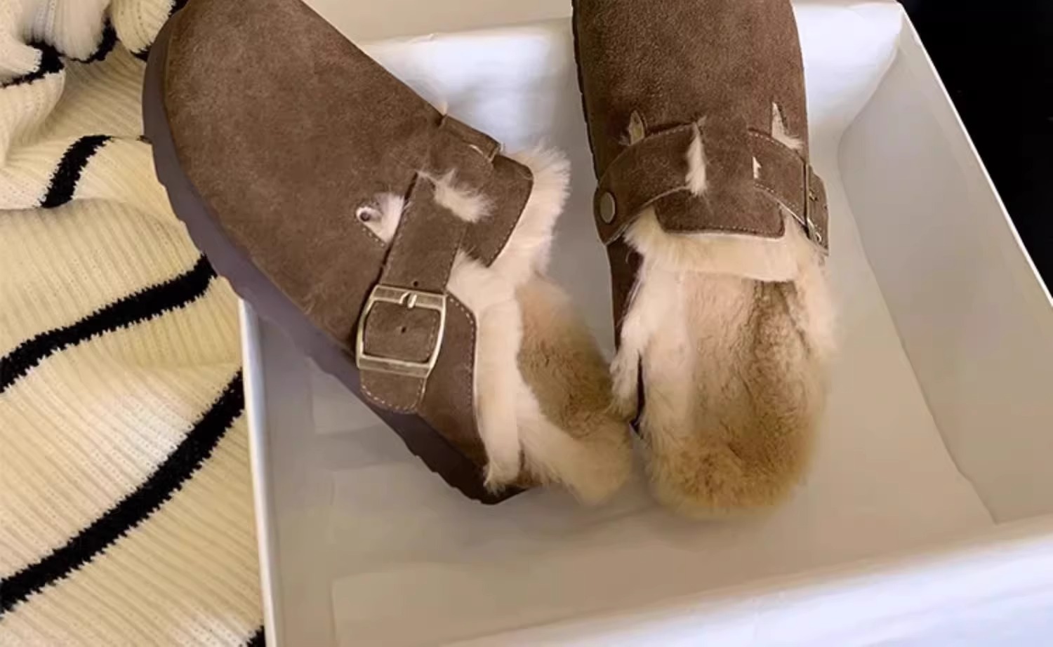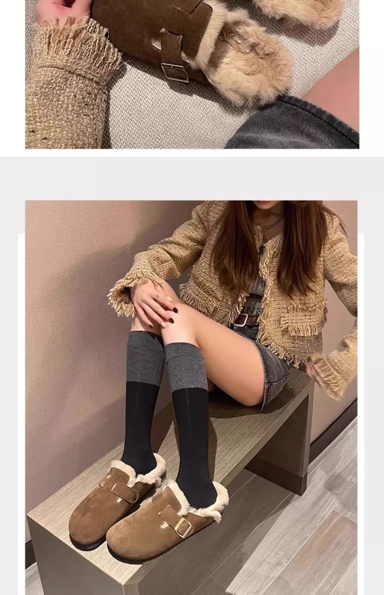 레트로 플러시 두꺼운 밑창 보켄 슈즈 여성용 2025 가을 겨울 신상 플러시 토캡 반슬립 슬리퍼스토어 가기