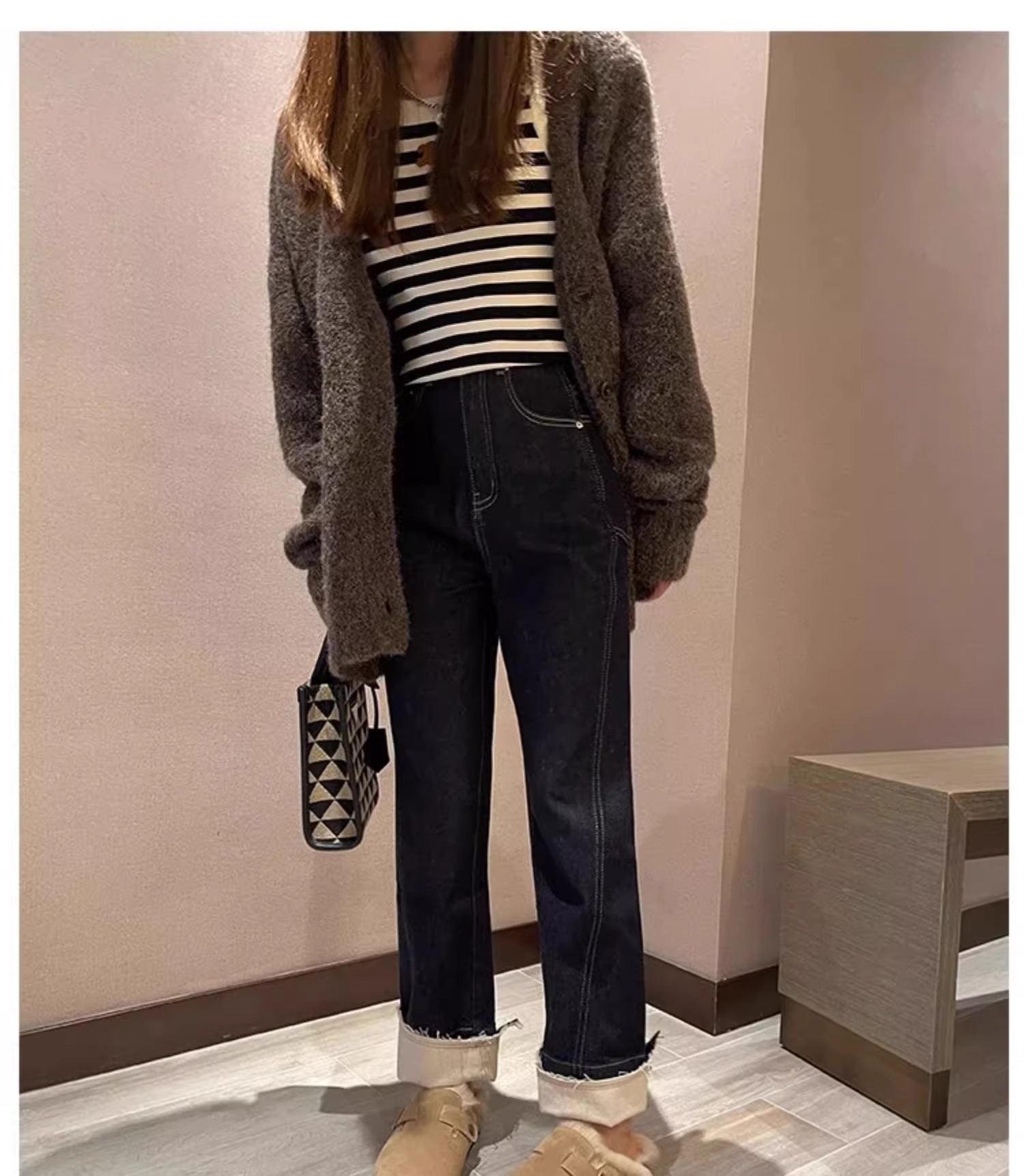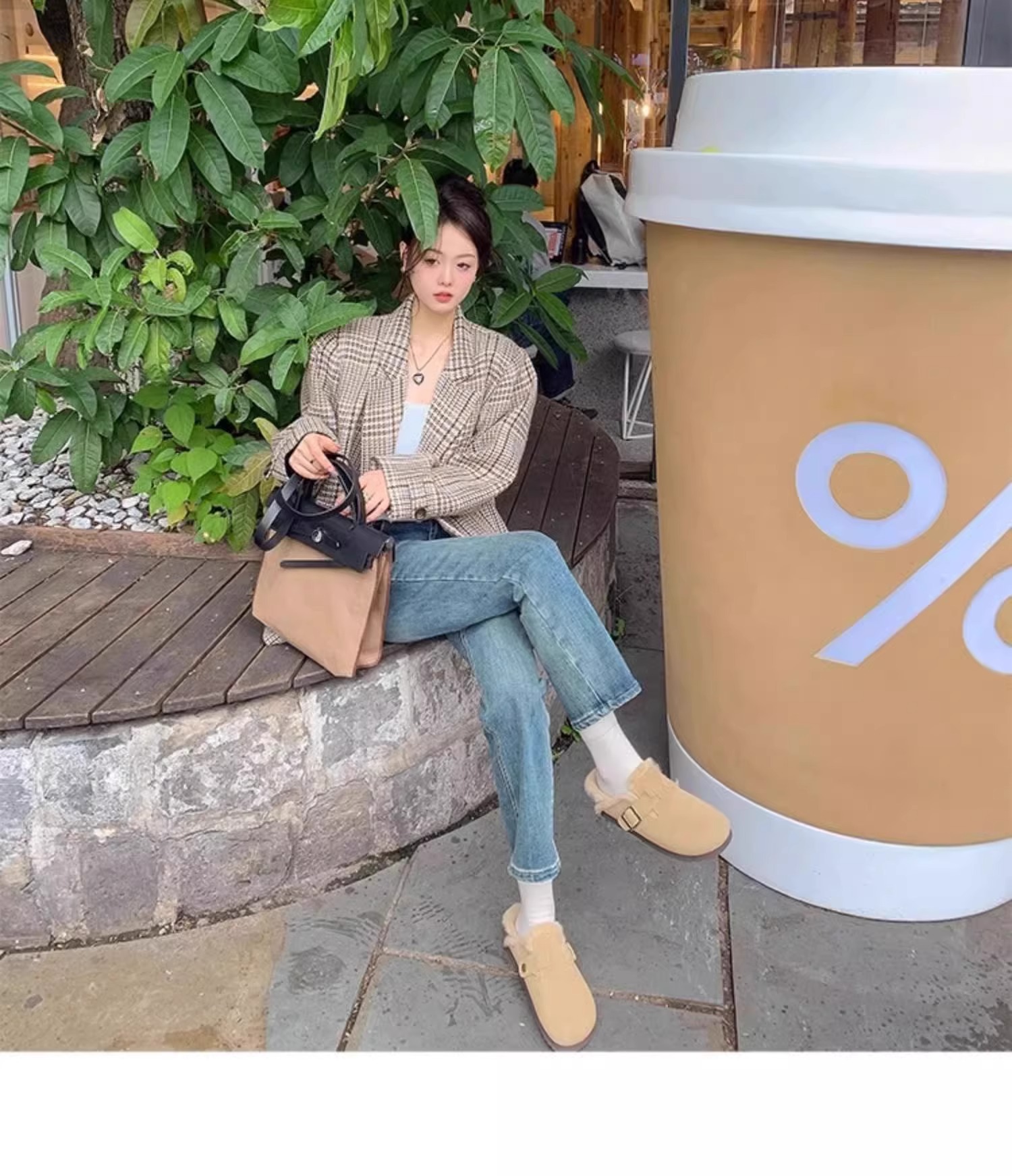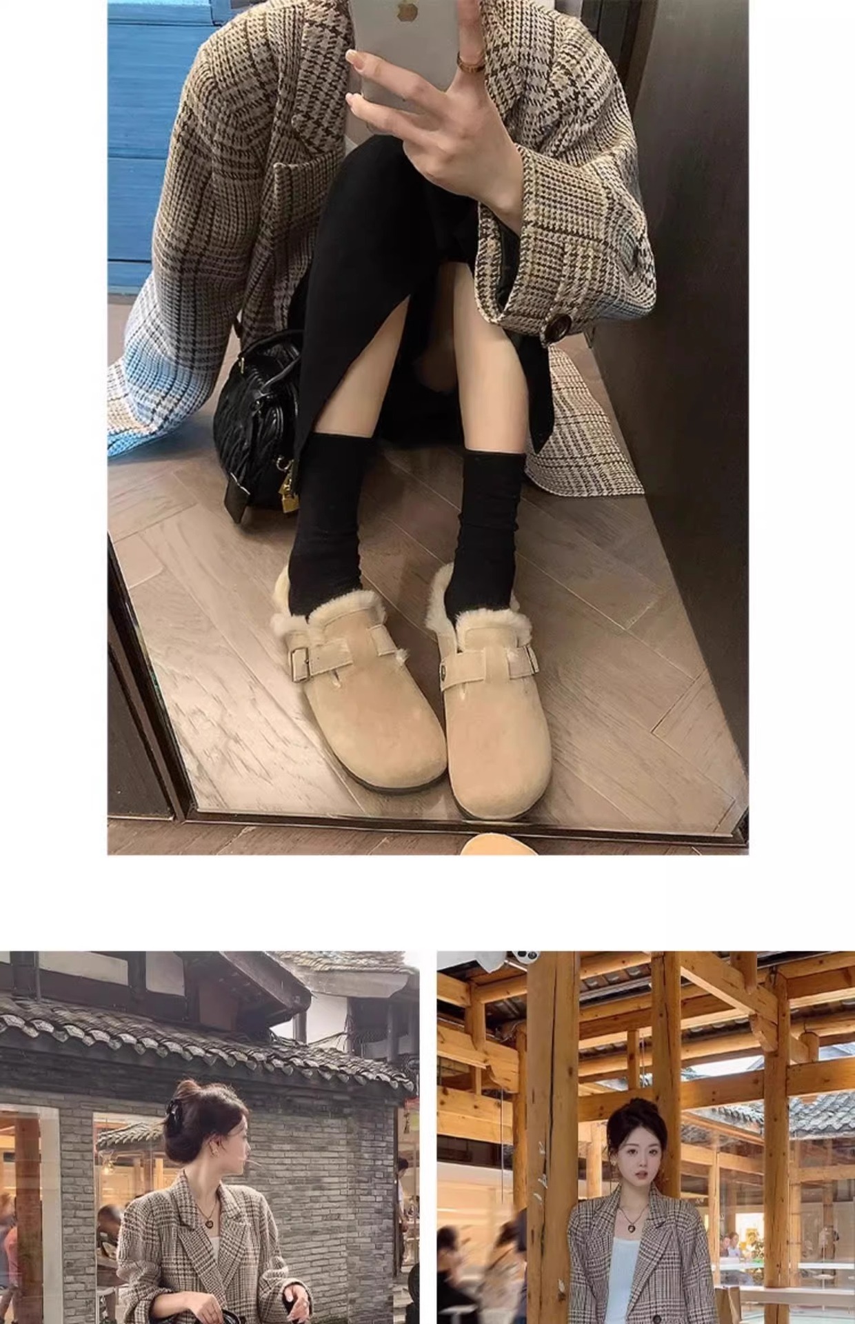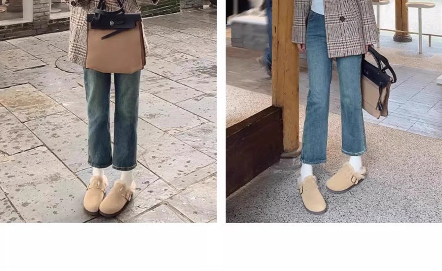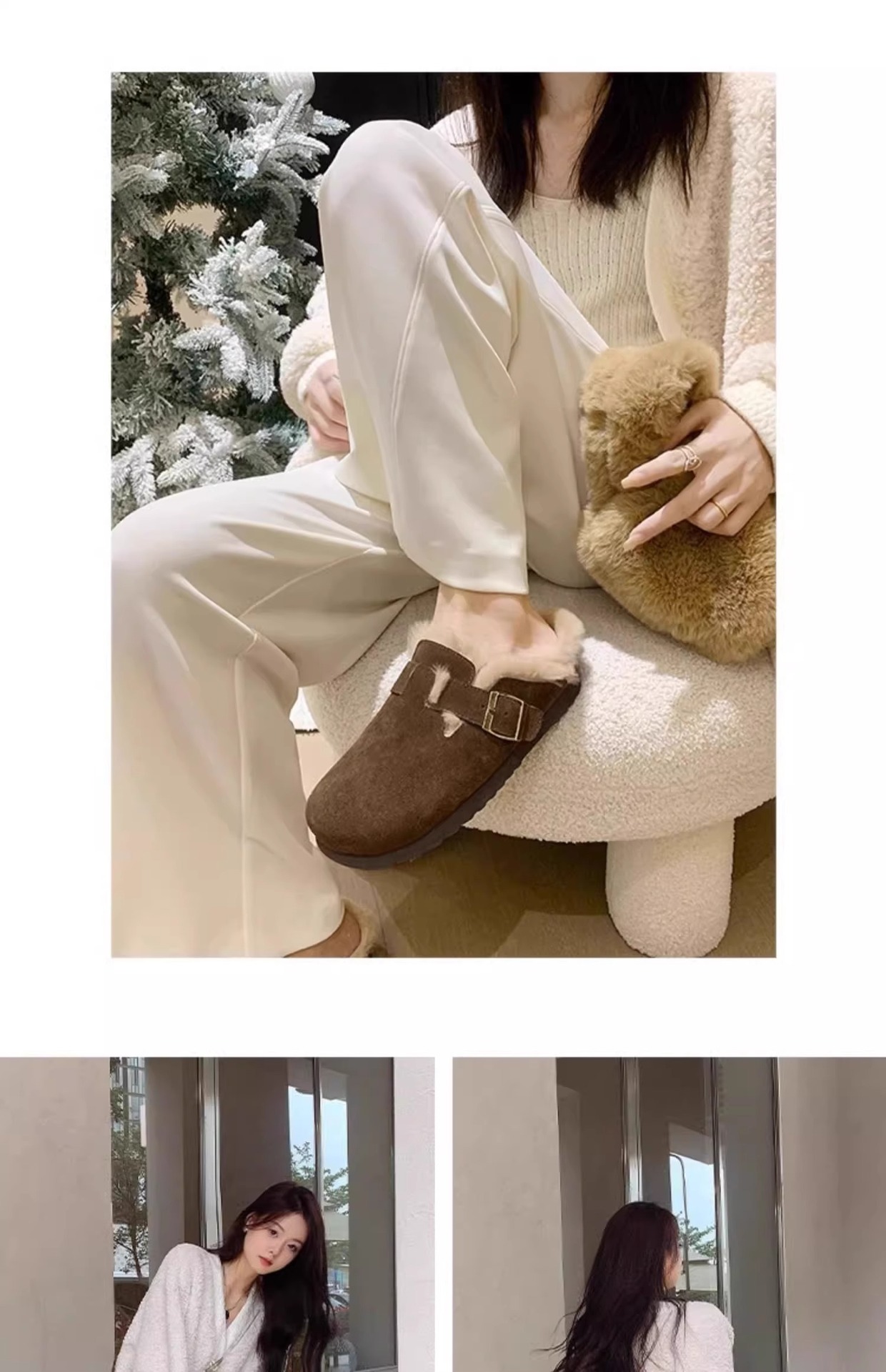 레트로 플러시 두꺼운 밑창 보켄 슈즈 여성용 2025 가을 겨울 신상 플러시 토캡 반슬립 슬리퍼스토어 가기