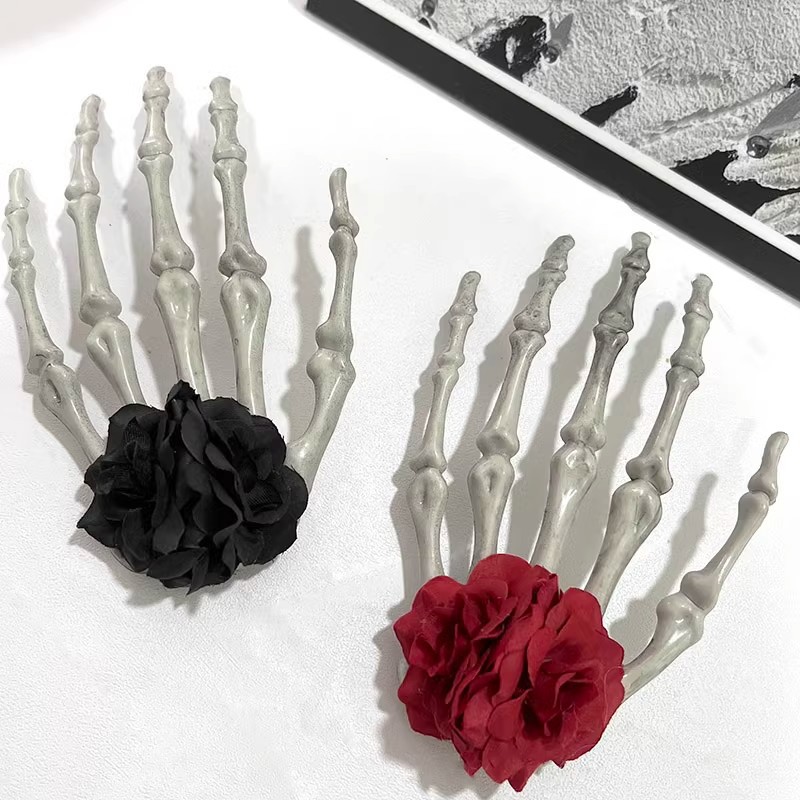 할로윈 두개골 발톱 사이드 클립 머리 소녀 고딕 손 뼈 틈새 성격 큰 유령 클로 로즈 디아블로 머리핀스토어 가기