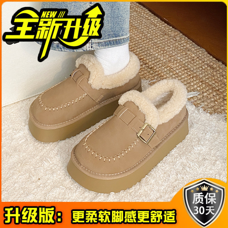 프랑스 스타일의 우아한 비르 케 나우 신발 마오 마오 마오 신발 여성의 2024 가을 및 겨울 새로운 통근 두꺼운 단독 기모 면 신발스토어 가기