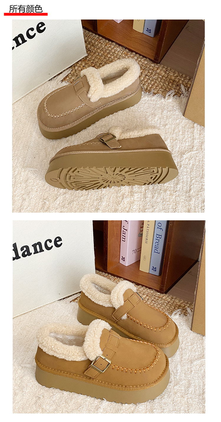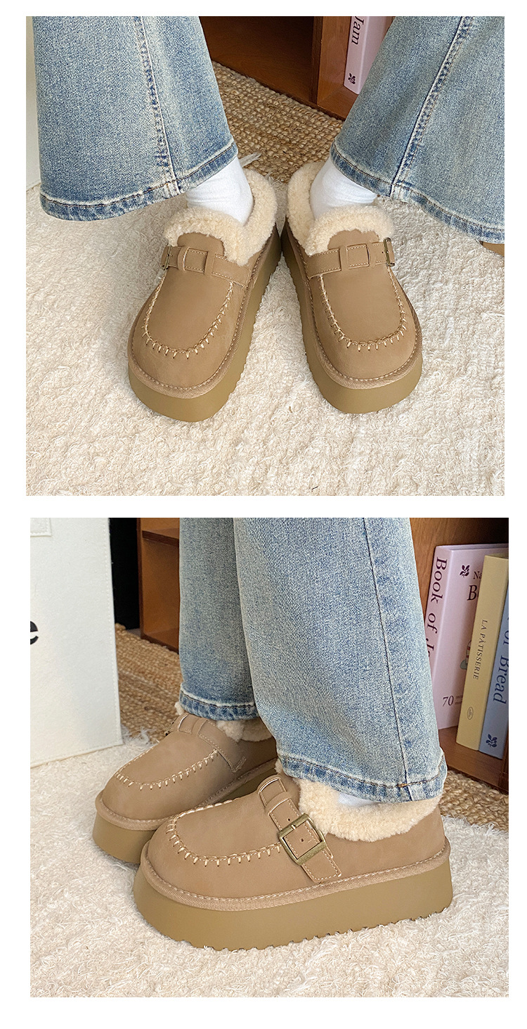 프랑스 스타일의 우아한 비르 케 나우 신발 마오 마오 마오 신발 여성의 2024 가을 및 겨울 새로운 통근 두꺼운 단독 기모 면 신발