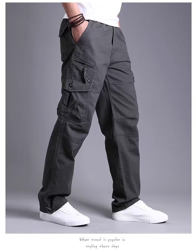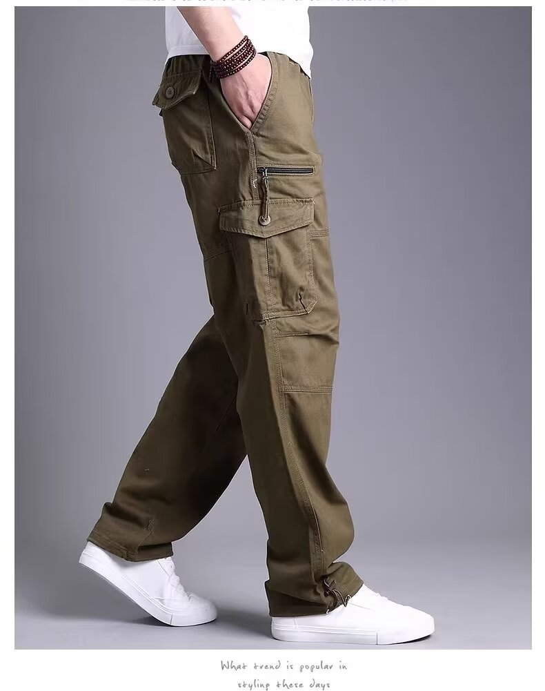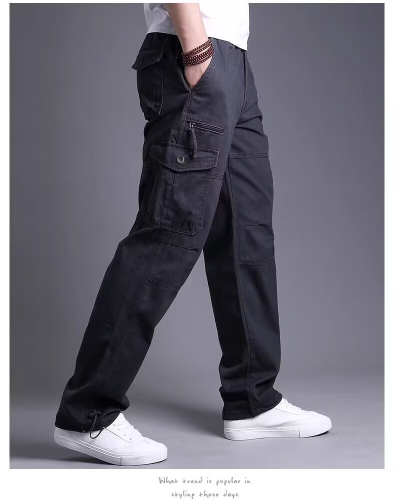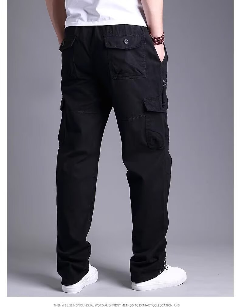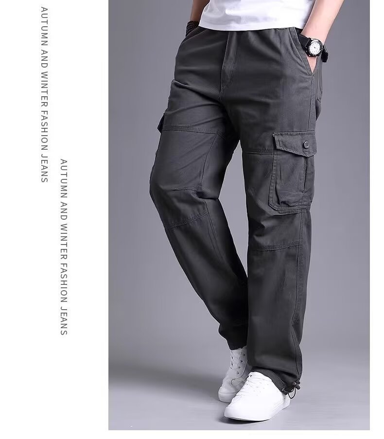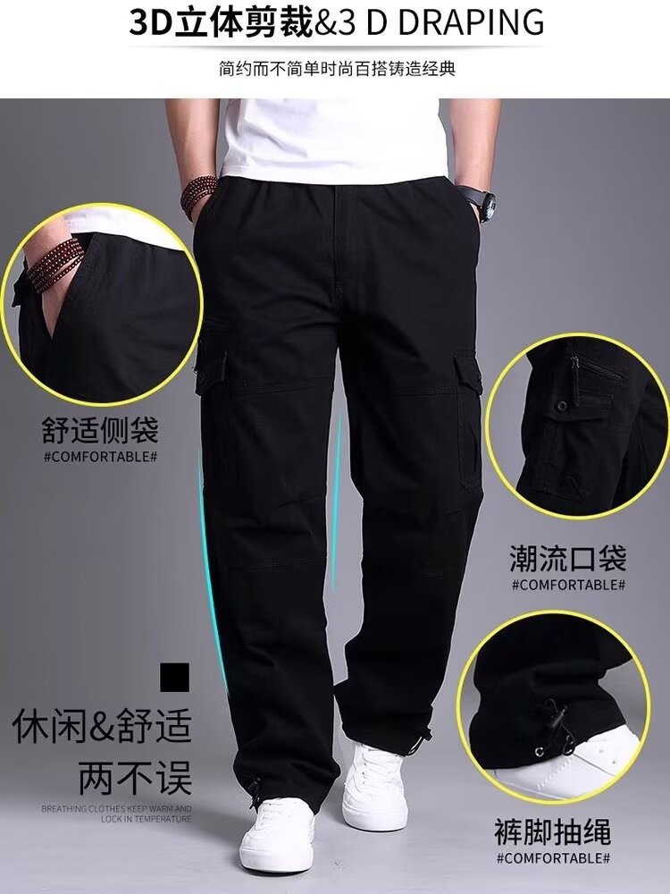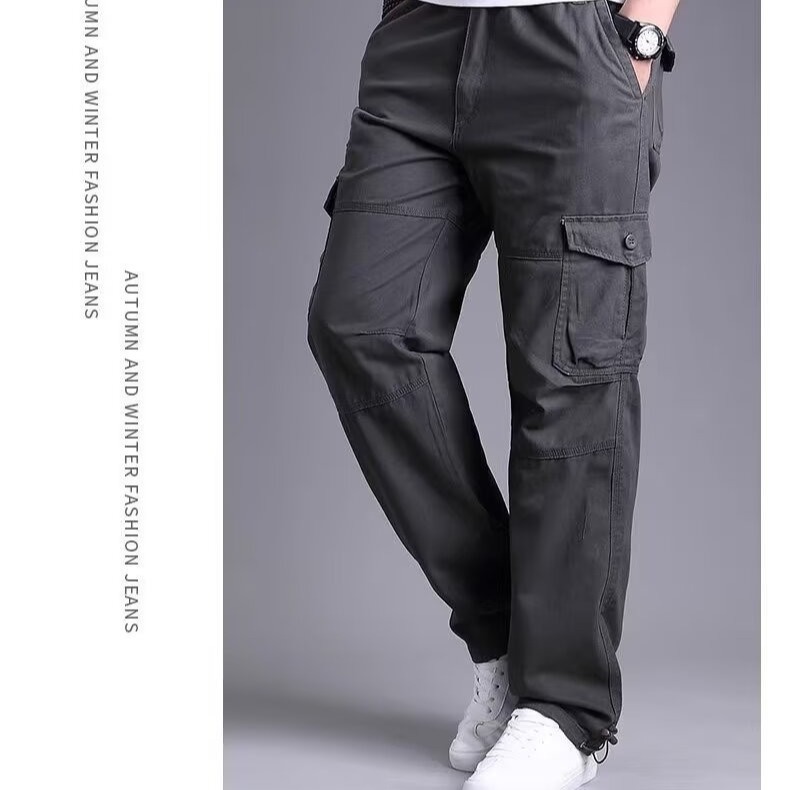 봄과 가을 두꺼운 멀티 포켓 오버볼 남자의 느슨한 플러스 사이즈 야외 스포츠 바지 솔리드 컬러 작업복 캐주얼 바지스토어 가기