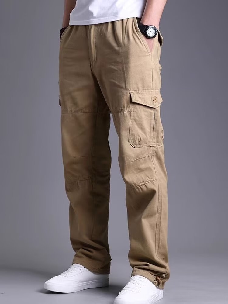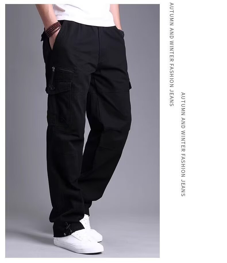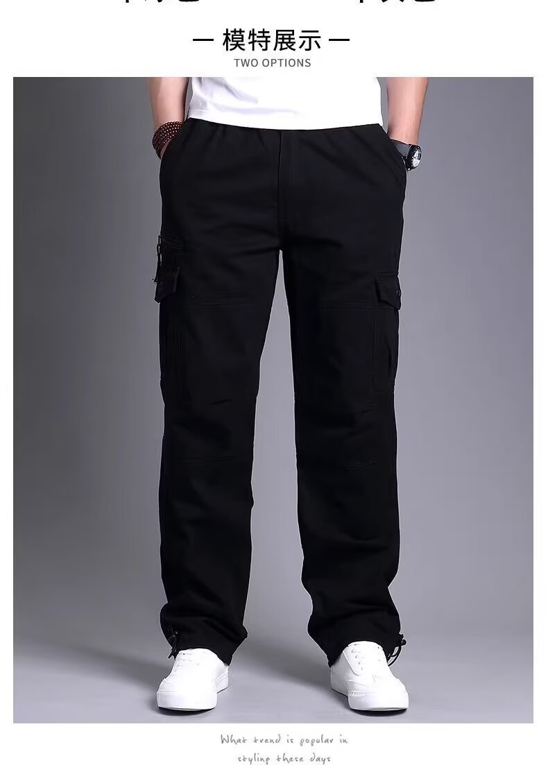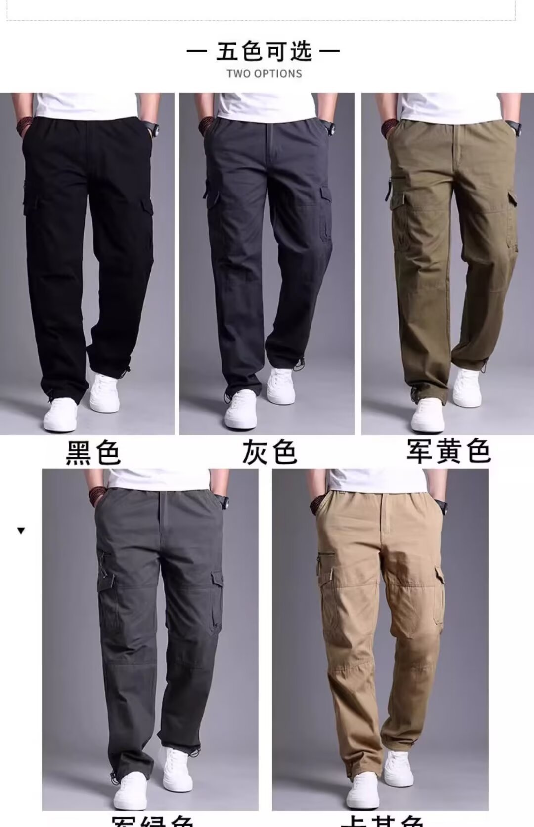 봄과 가을 두꺼운 멀티 포켓 오버볼 남자의 느슨한 플러스 사이즈 야외 스포츠 바지 솔리드 컬러 작업복 캐주얼 바지