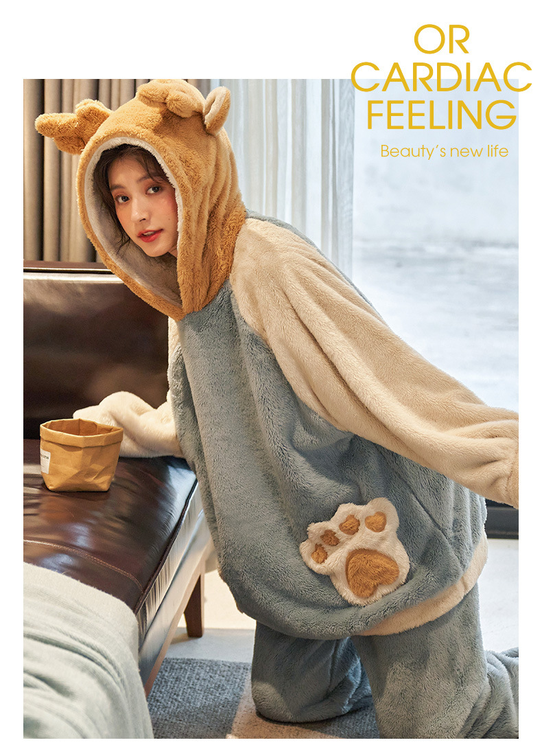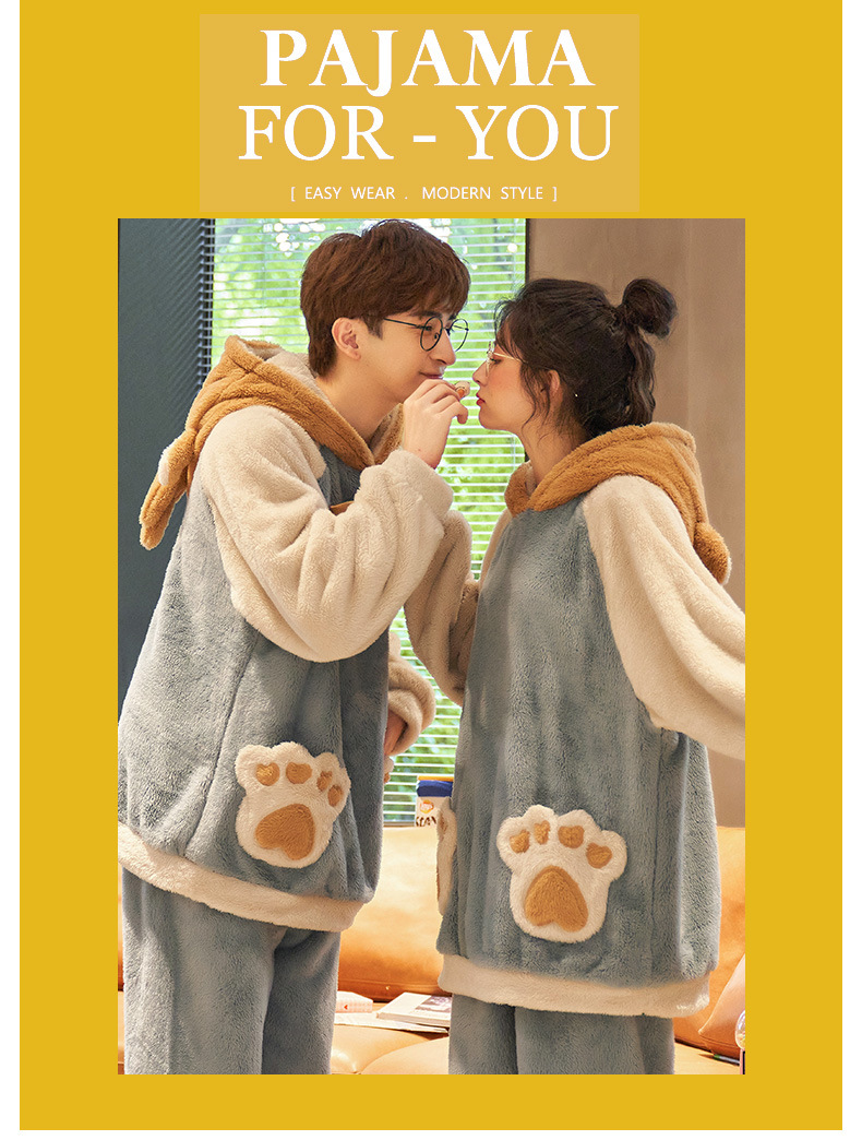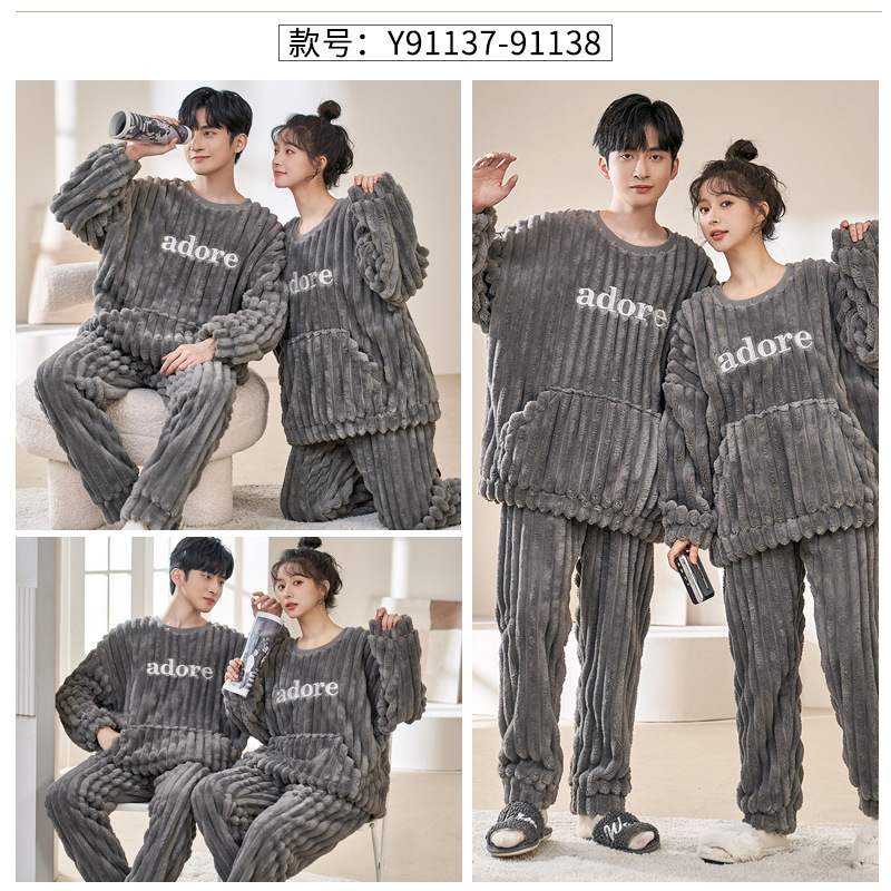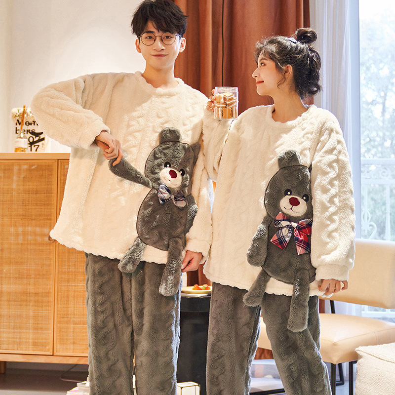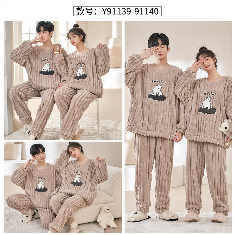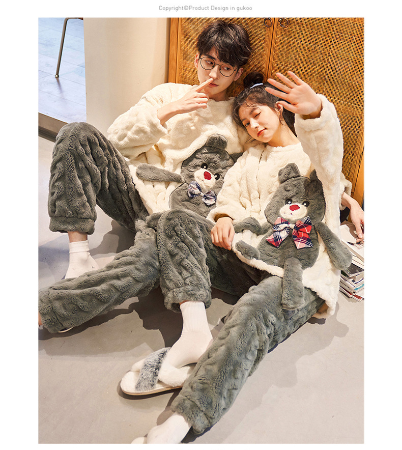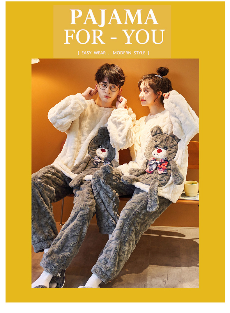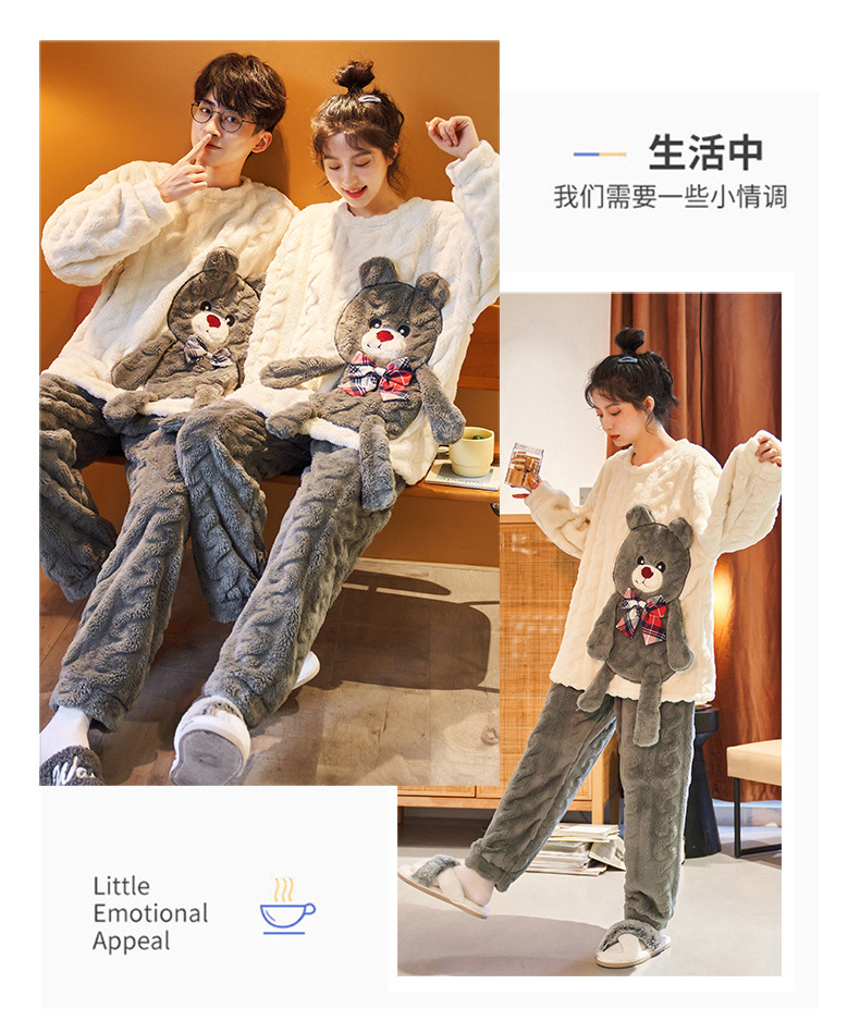 잠옷 커플의 산호 양털 두꺼운 따뜻한 귀여운 만화 소녀의 둥근 목 플러스 사이즈 플란넬 홈 옷을 입을 수 있습니다스토어 가기