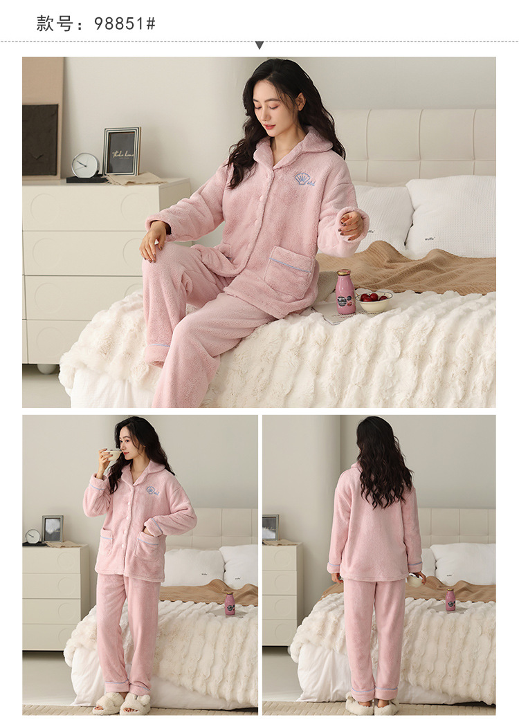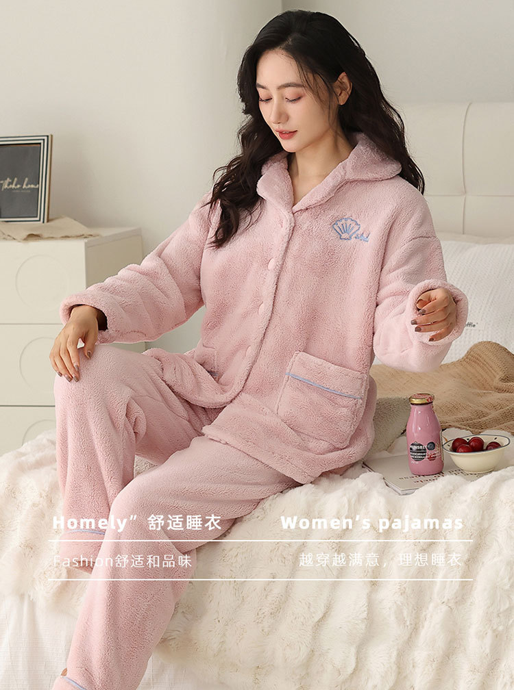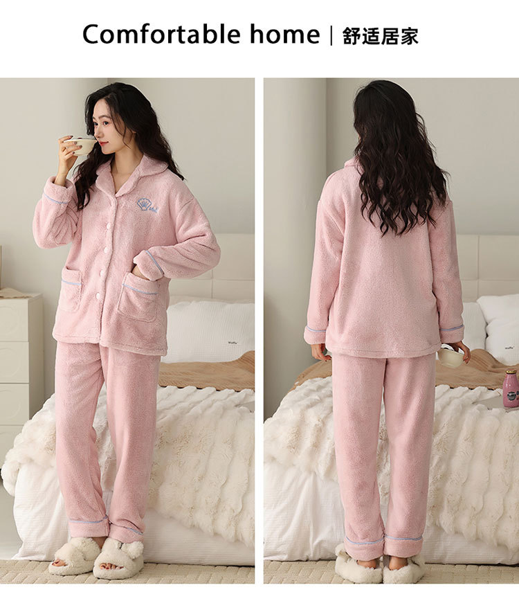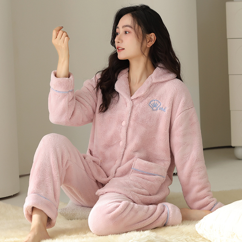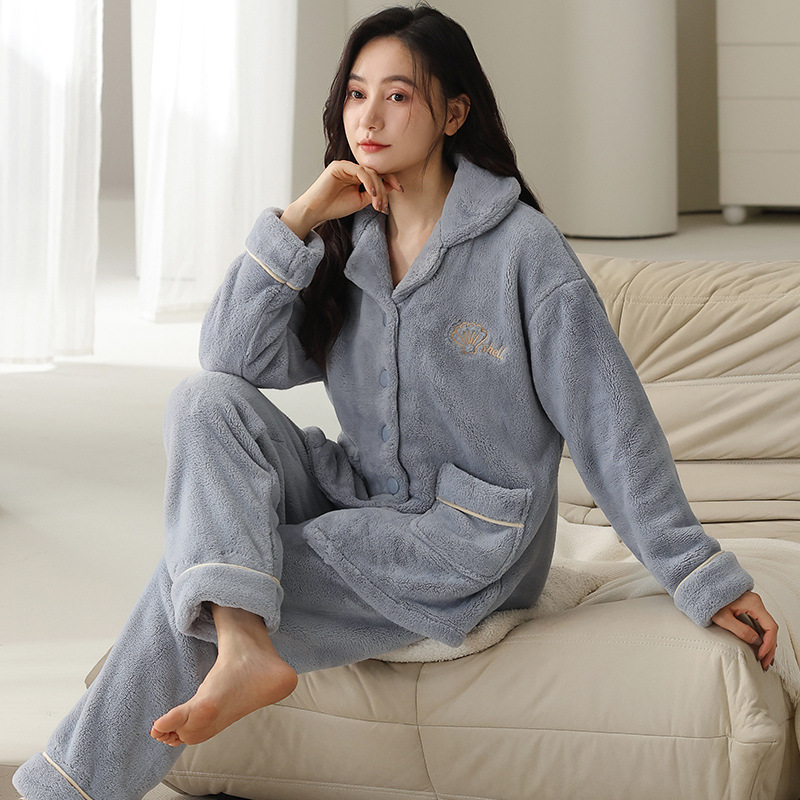 여자 잠옷 2024 겨울 플란넬 두꺼운 기모 양면 양털 홈 옷 세트 겨울 캐주얼 의상스토어 가기