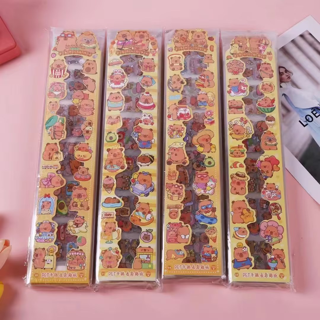 국경 간 폭발 산리오 긴 투명 스티커 애완 동물 방수 손 계정 스티커 세트 만화 랩 천 스티커