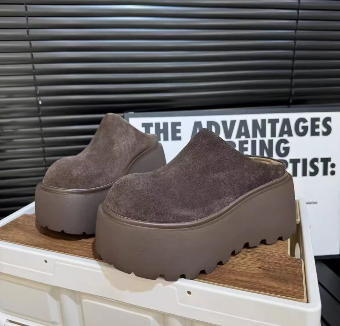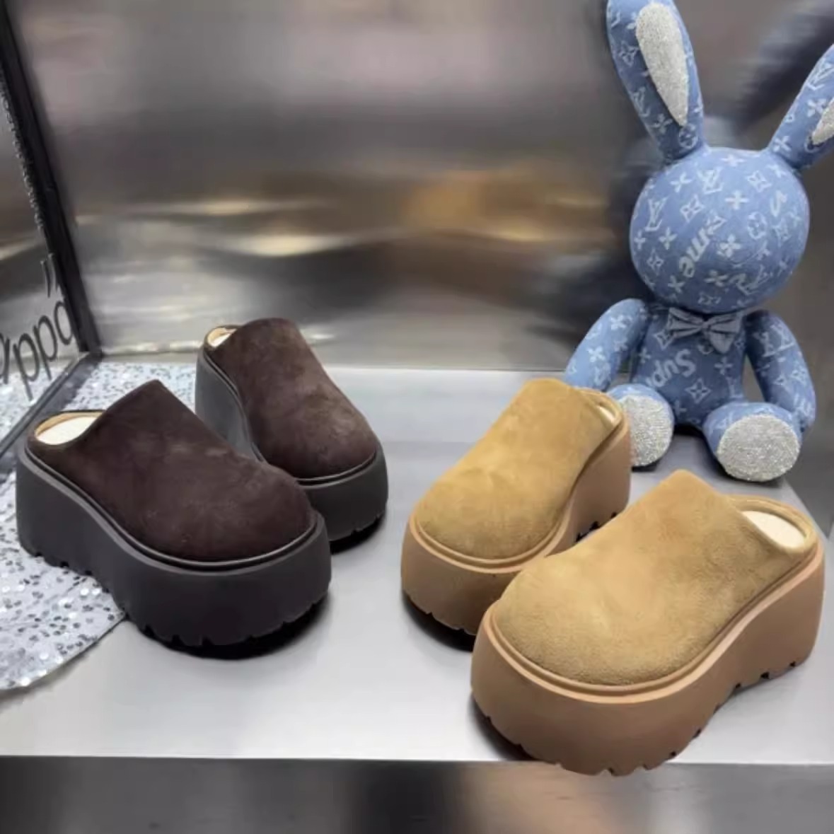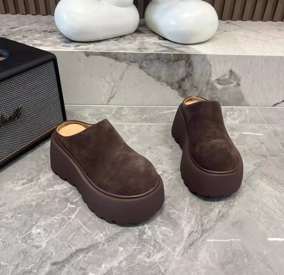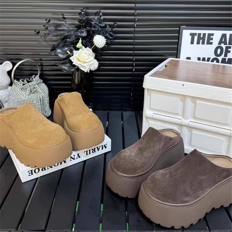 프랑스 스타일의 두꺼운 인형 머리 버켄 슬리퍼 2024 새로운 복고풍 작은 높이 올리는 게으른 발가락 하프 슈즈스토어 가기