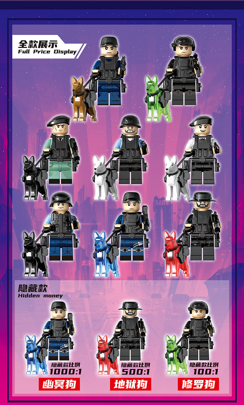 새로운 슈퍼 멋진 경찰견 시리즈 경찰 인형 어린이 지능 작은 입자 빌딩 블록 손 삽입 장난감스토어 가기
