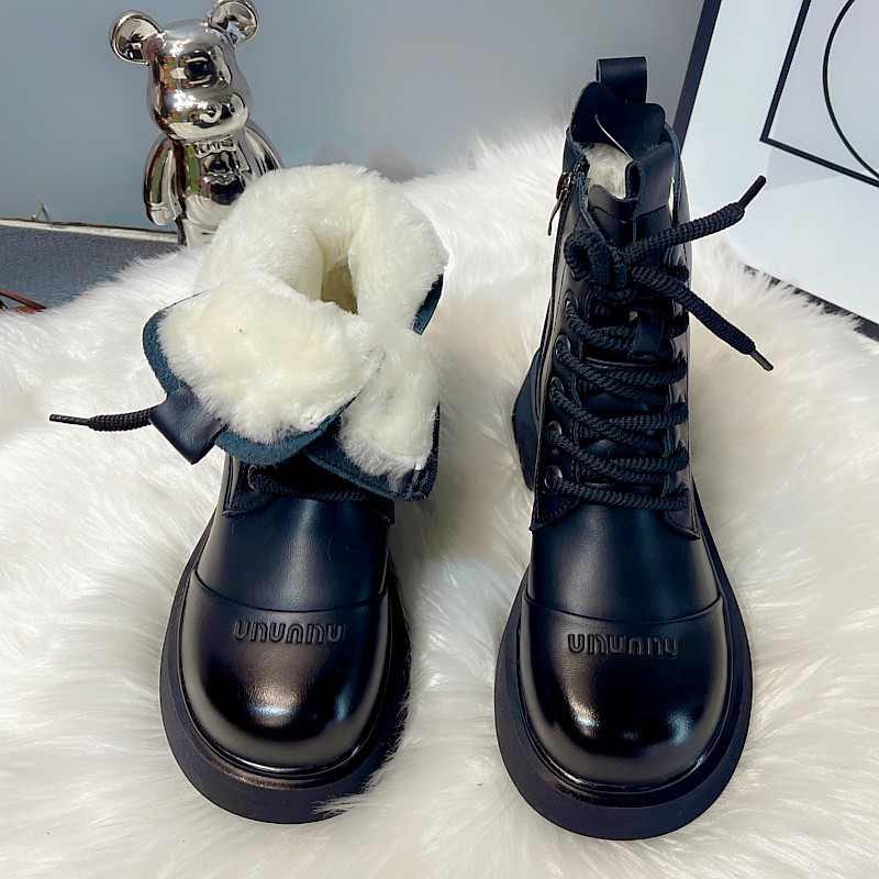 인기있는 마틴 부츠 가을과 겨울 새로운 부드러운 가죽 두꺼운 미끄럼 방지 라운드 헤드 부츠 여성 부츠 앞 레이스 업 패션 기모스토어 가기