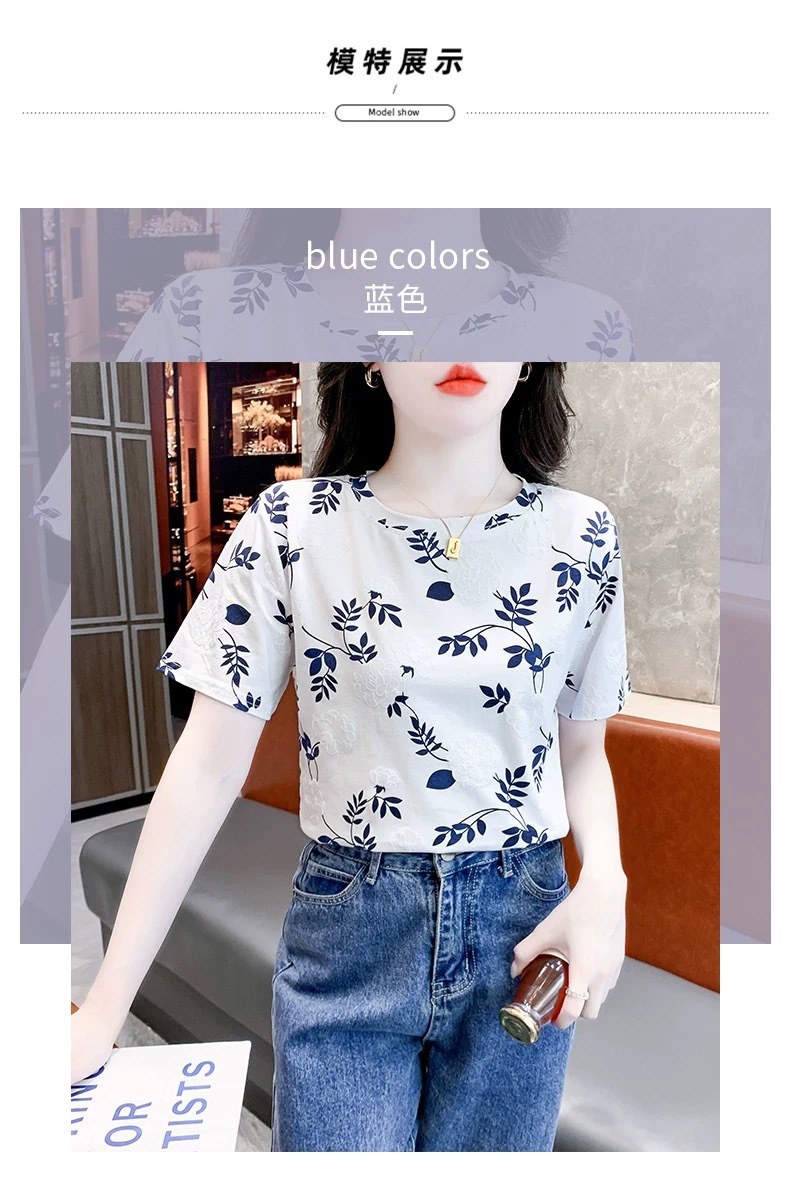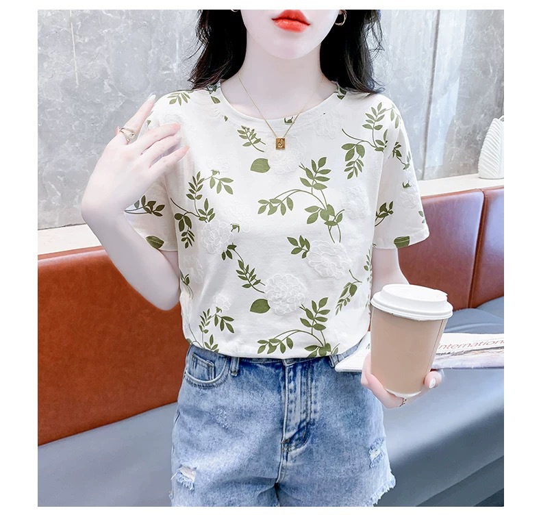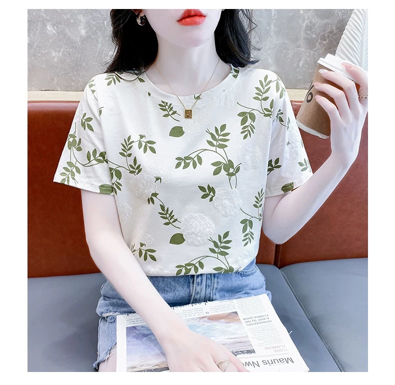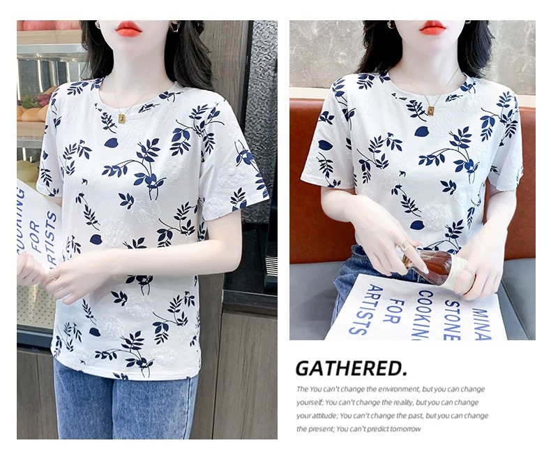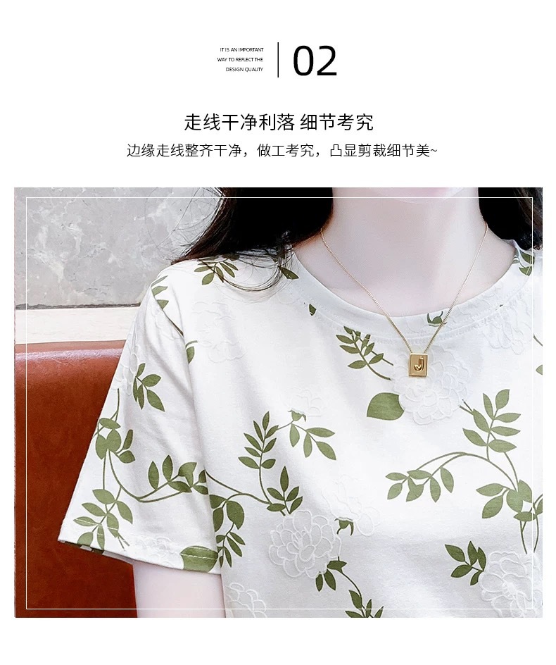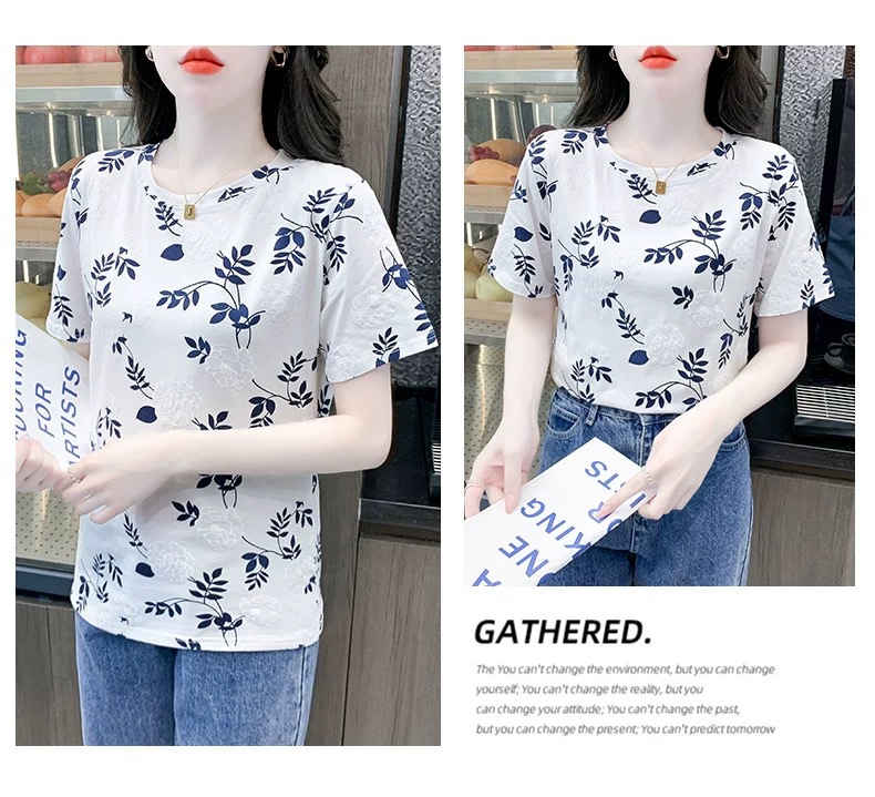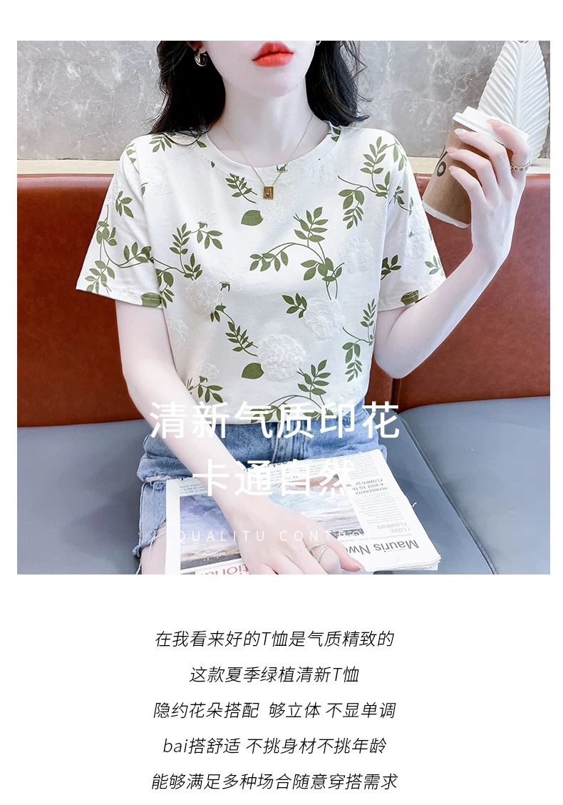 유럽 화이트 플러스 사이즈 반팔 티셔츠 여성의 새로운 폭발 여름 인쇄 틈새 최고 느슨한 나이 감소 티셔츠 여름스토어 가기