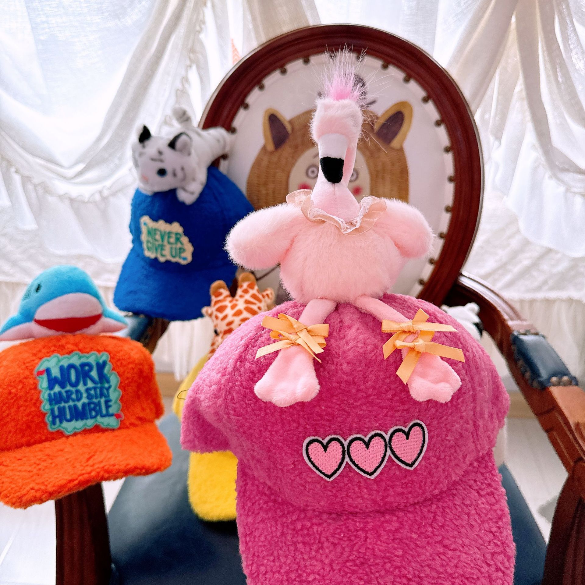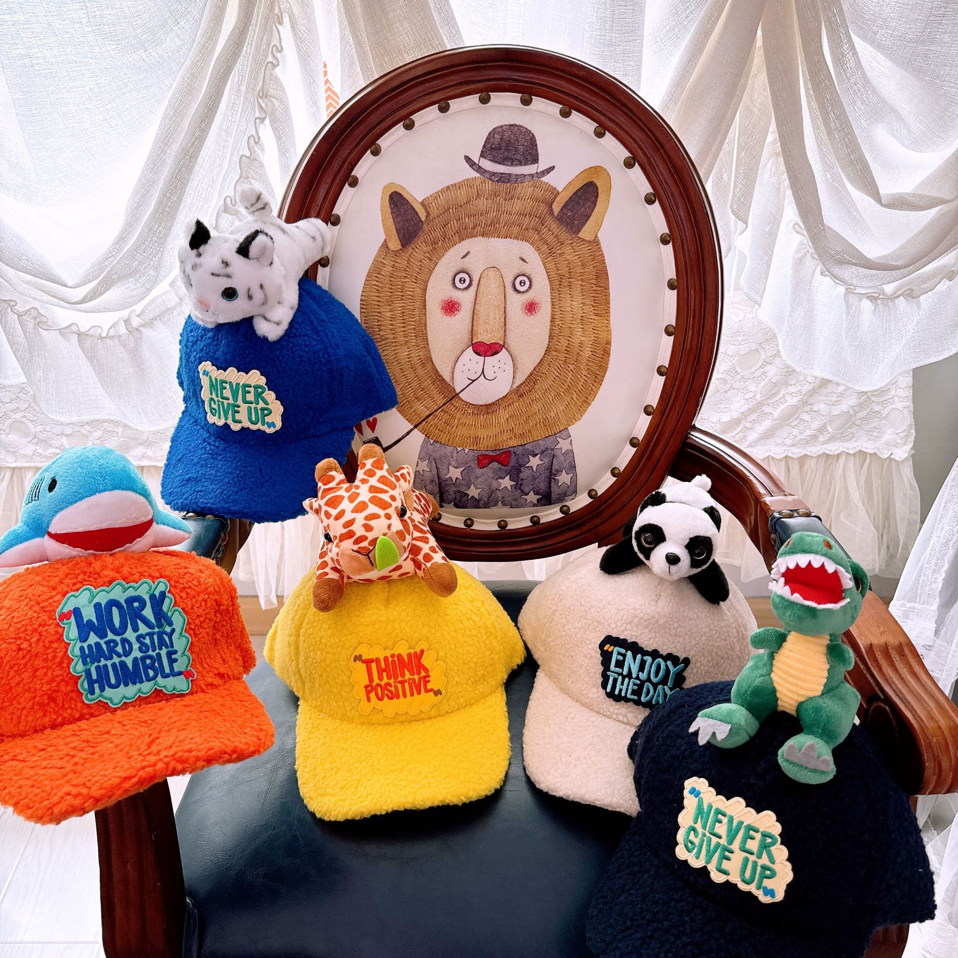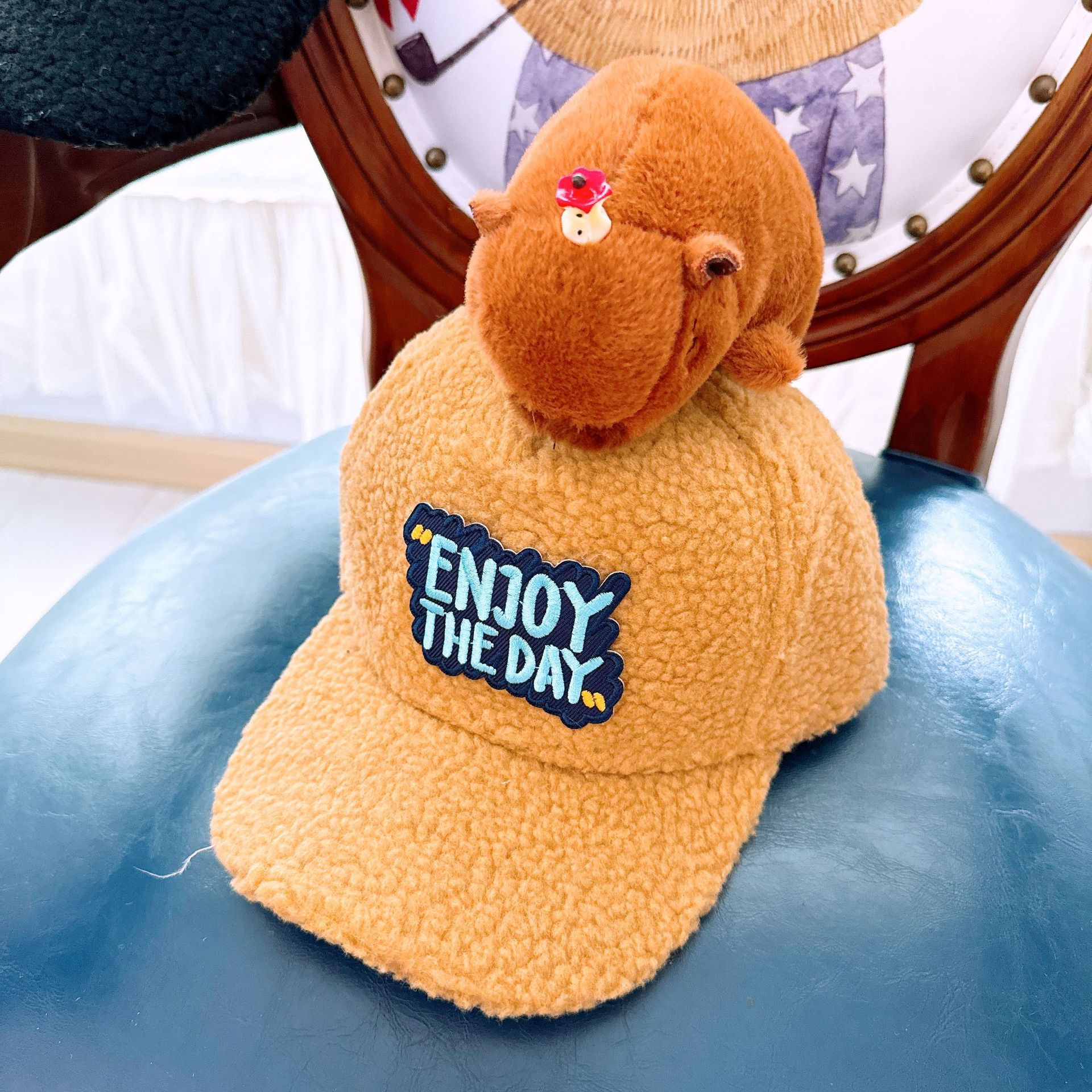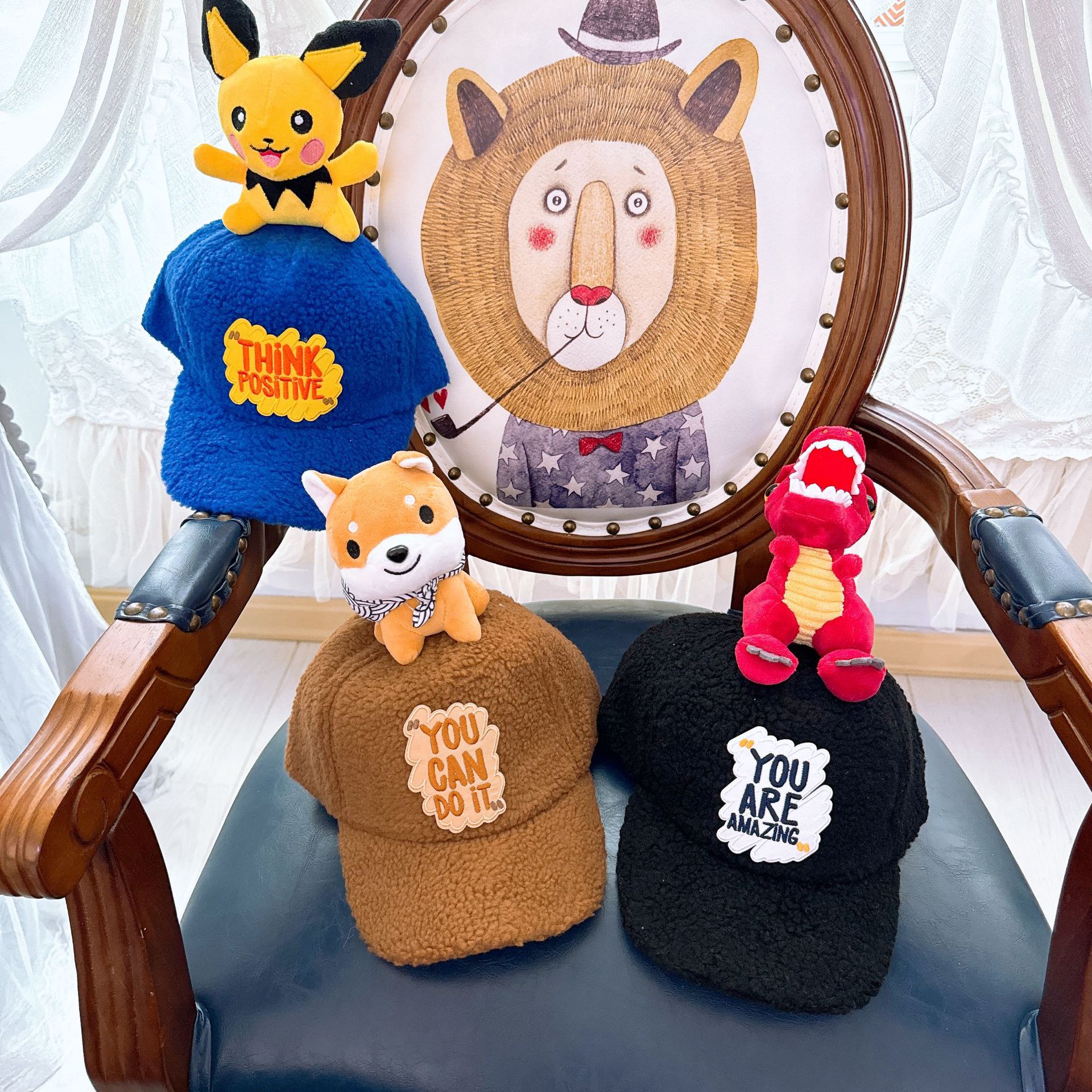 부모-자식 가을과 겨울 어린이 야구 모자 귀여운 동물원 양고기 다운 캡 성인 따뜻한 차양 모자스토어 가기