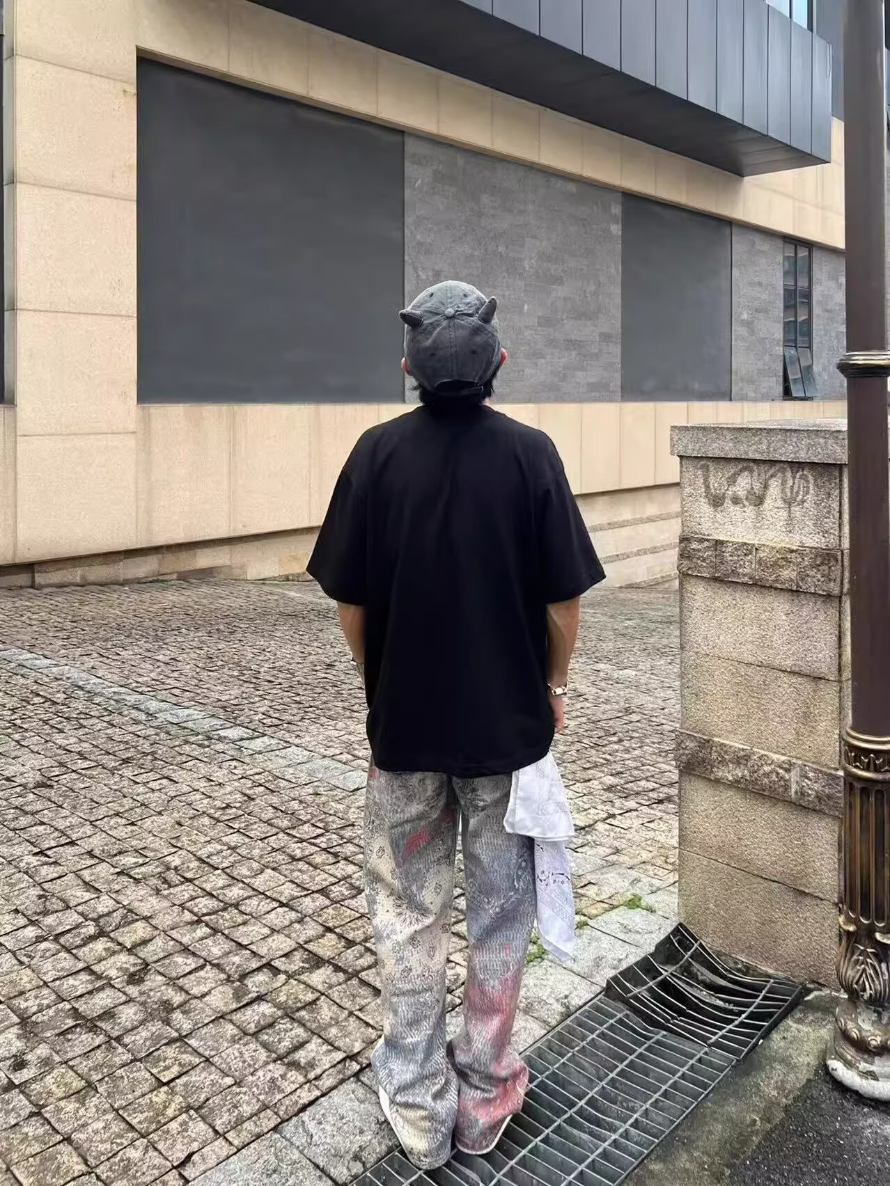미국 틈새 디자인 센스 디지털 인쇄 스트레이트 청바지 남성과 여성 스트리트 힙합 느슨한 와이드 다리 바지스토어 가기