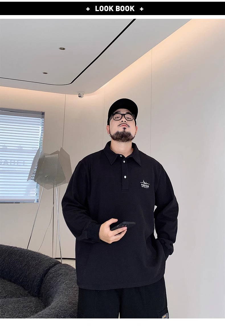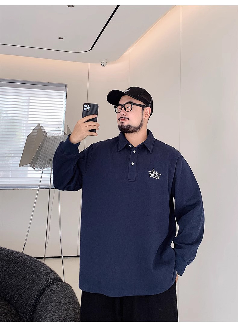 플러스 사이즈 남성 옷깃 스웨터 남성 봄과 가을 패션 브랜드 미국 자수 폴로 셔츠 긴 소매 캐주얼 루즈 탑스토어 가기