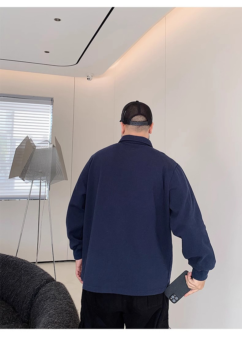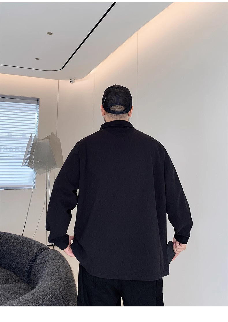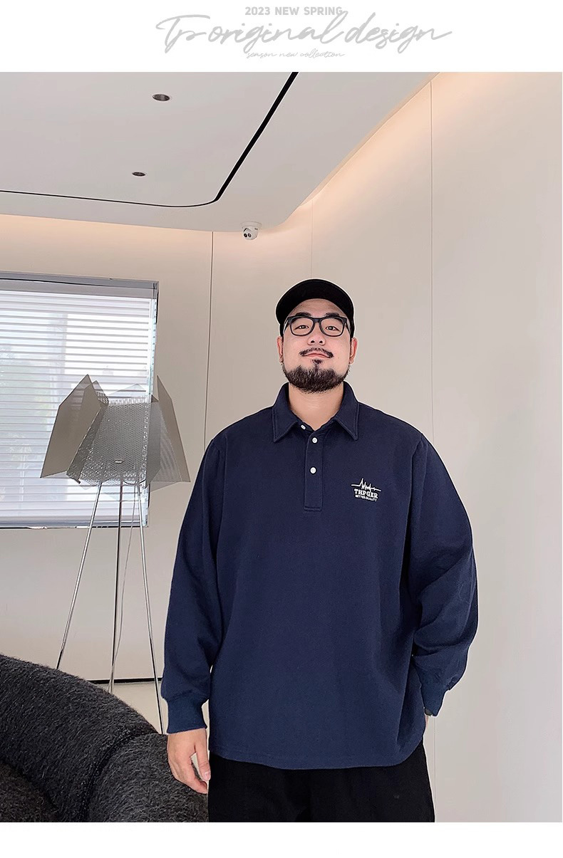 플러스 사이즈 남성 옷깃 스웨터 남성 봄과 가을 패션 브랜드 미국 자수 폴로 셔츠 긴 소매 캐주얼 루즈 탑