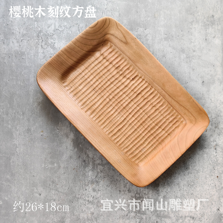 북미산 체리나무 통나무 조각 일본식 트레이, 수납 트레이, 식사 트레이, 과자 트레이, 과일 트레이, 나무 차 트레이, 사각 트레이