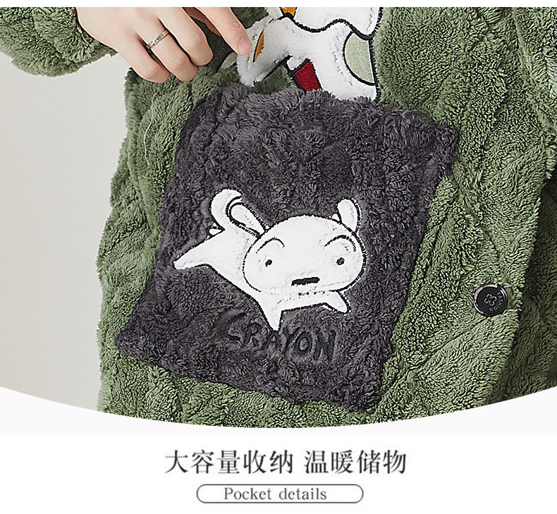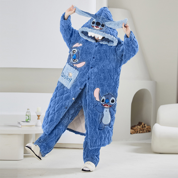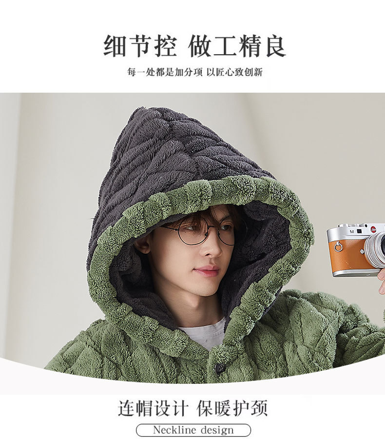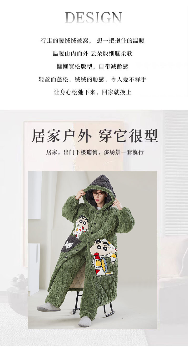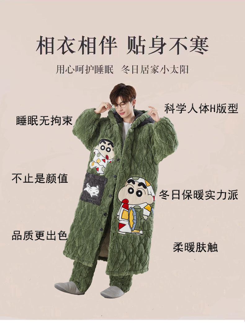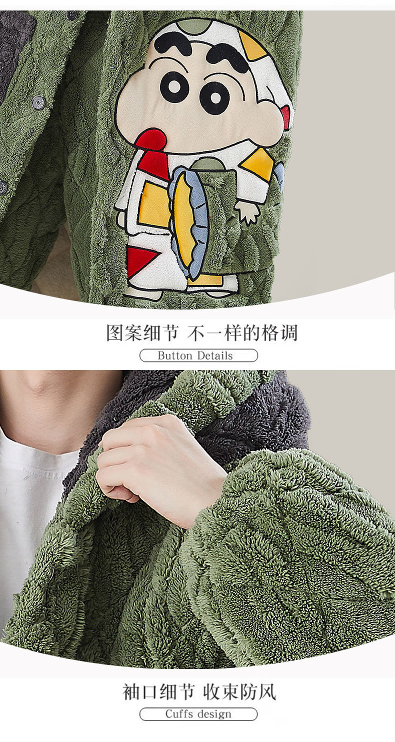 고급 3 층 퀼트 나이트가운 남자 겨울 후드 만화 기모 따뜻한 청소년 홈 의류 세트스토어 가기