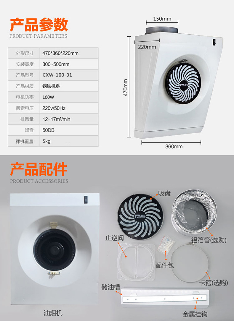 작은 연기 기계 간단한 큰 흡입 임대 방 흡입 기계 휴대용 작은 범위 후드 가정용 부엌 크기