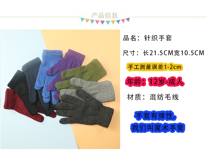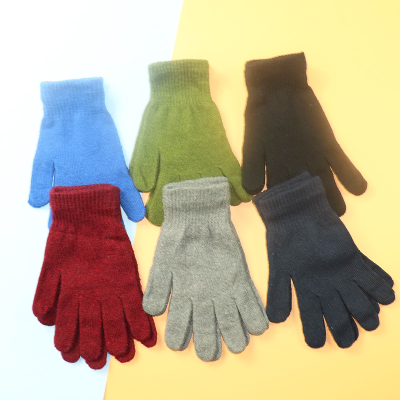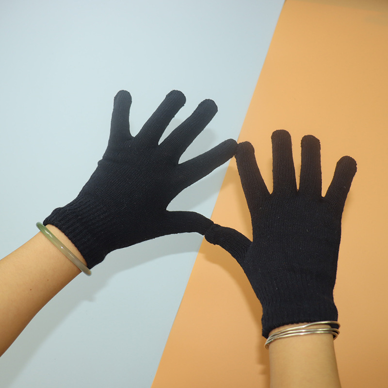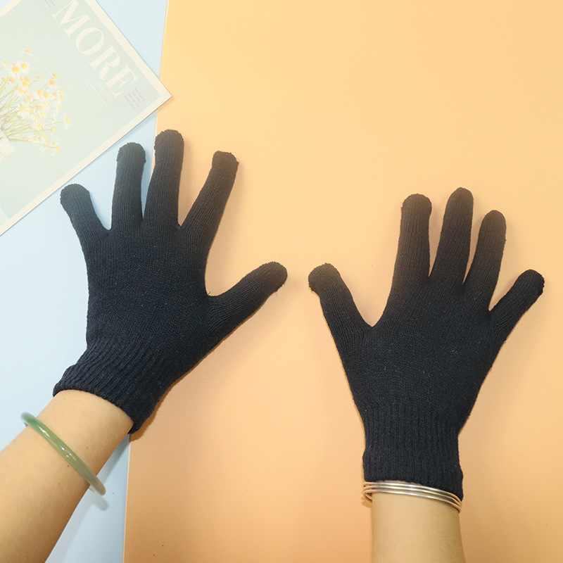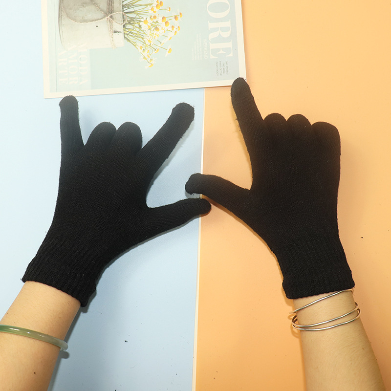 가을과 겨울 청소년 남성 다섯 손가락 검은 양모 니트 장갑 얇은 여성의 따뜻한 겨울 승마