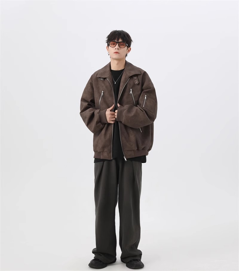 아메리칸 스타일 레트로 라펠 PU 가죽 자켓 남자 가을 하이 엔드 패션 브랜드 느슨한 오토바이 디트로이트 재킷 탑스토어 가기