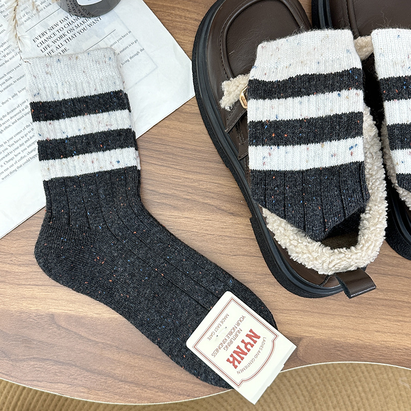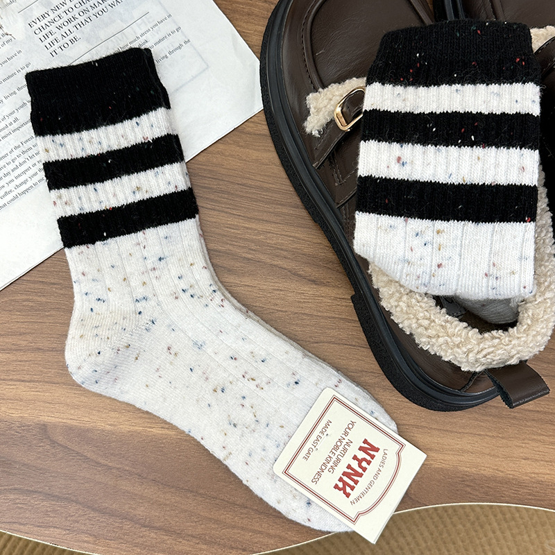 겨울 새로운면 양말 스트라이프 포인트 원사 따뜻한 튜브 양말 여성 양말 도매 일본 색상 매칭 폭발 더미 양말