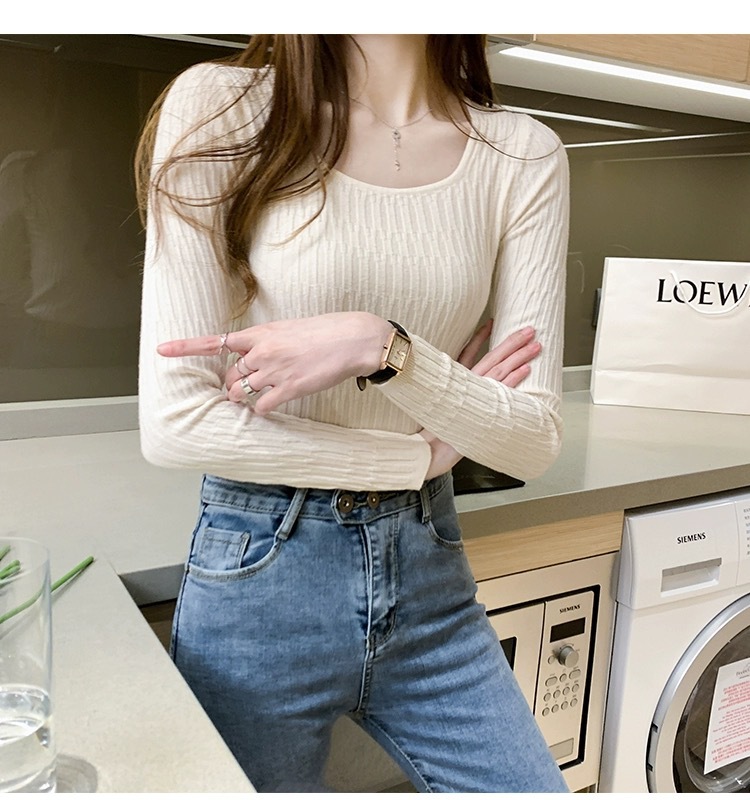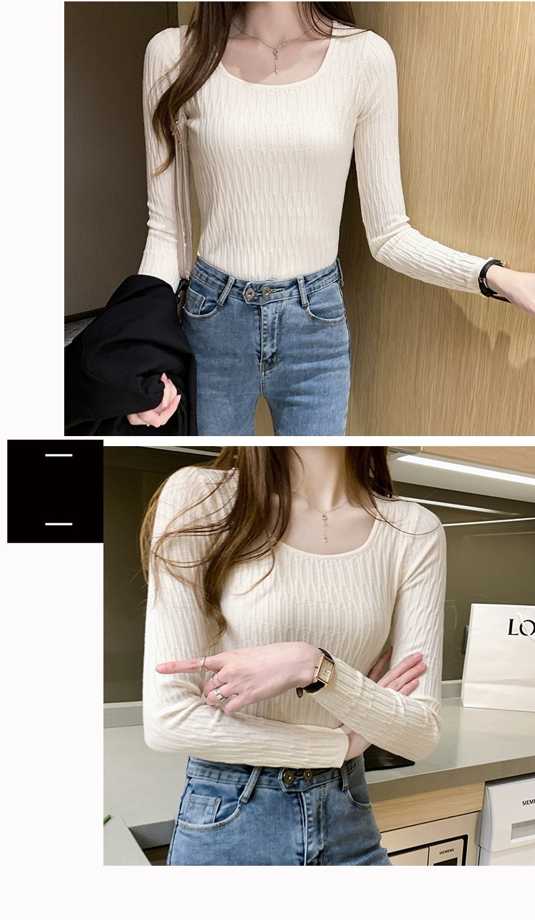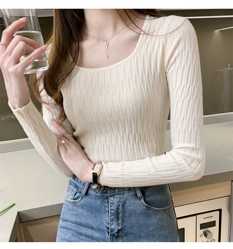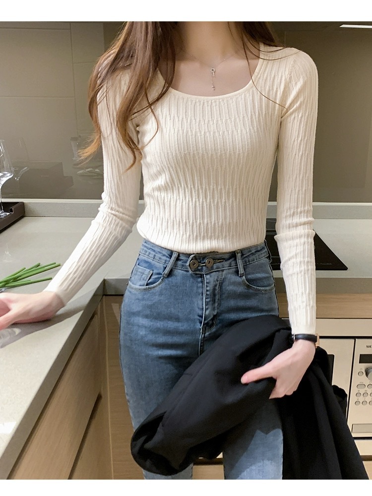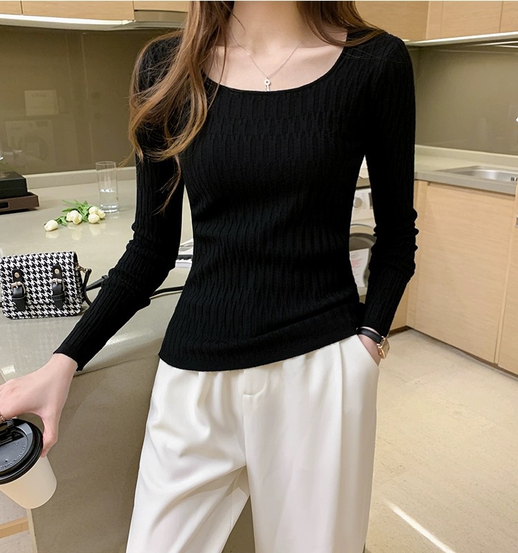 니트 바닥 셔츠 여성의 봄과 가을 2024 외국 스타일의 로우 칼라 긴 소매 탑 슬림 핏 풀오버 스웨터 겨울이있는 새로운 스타일의 인테리어스토어 가기