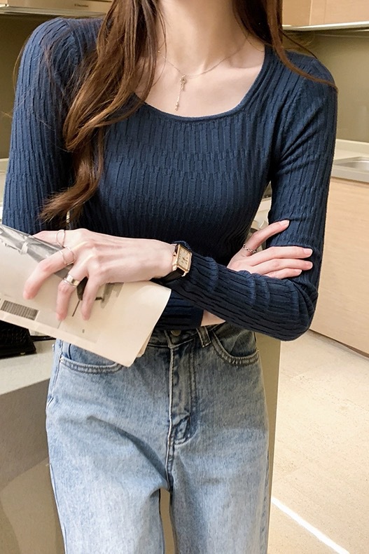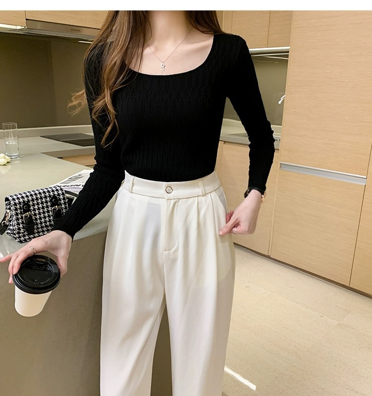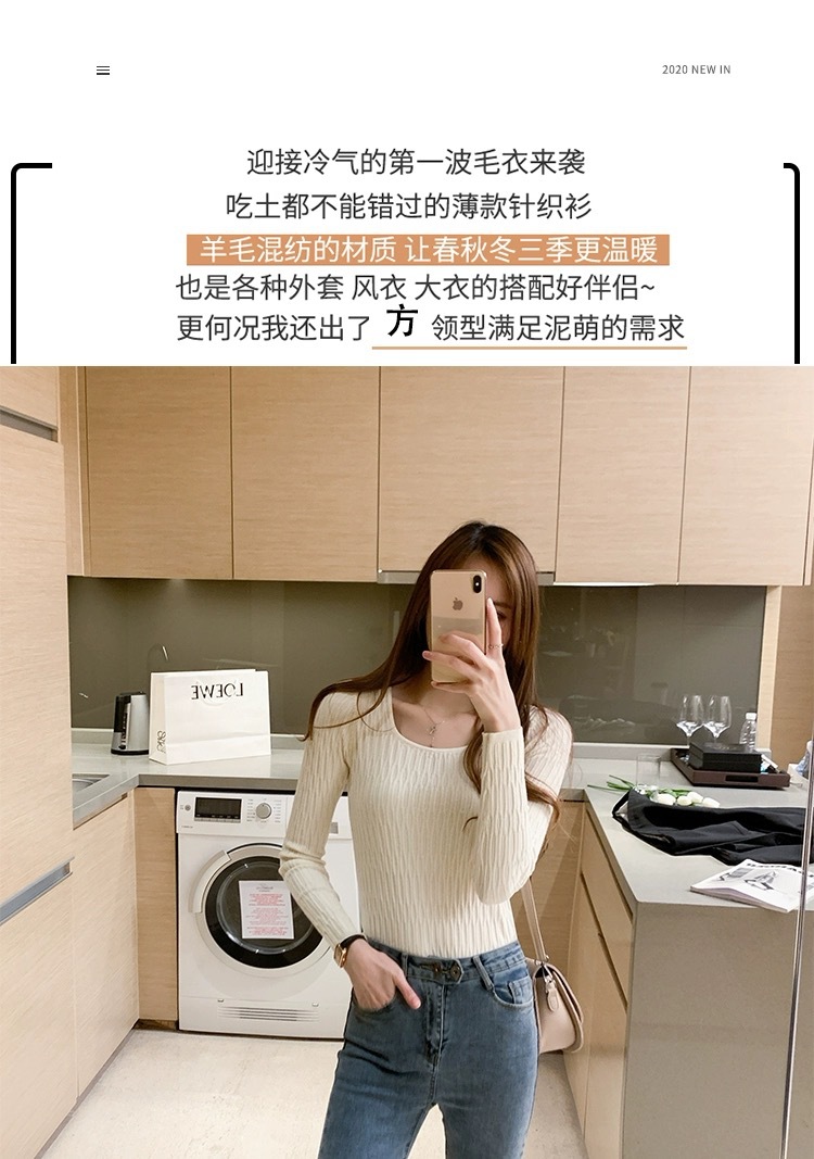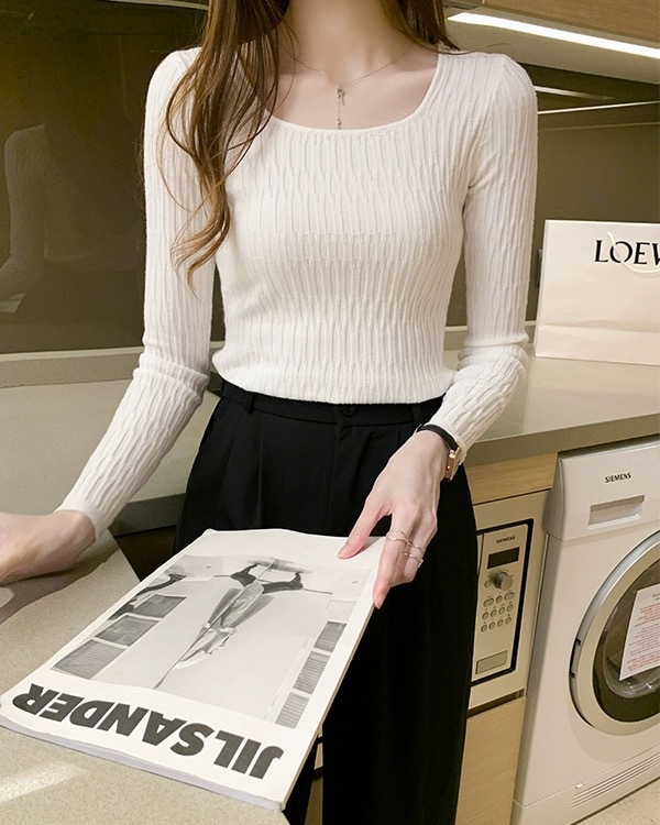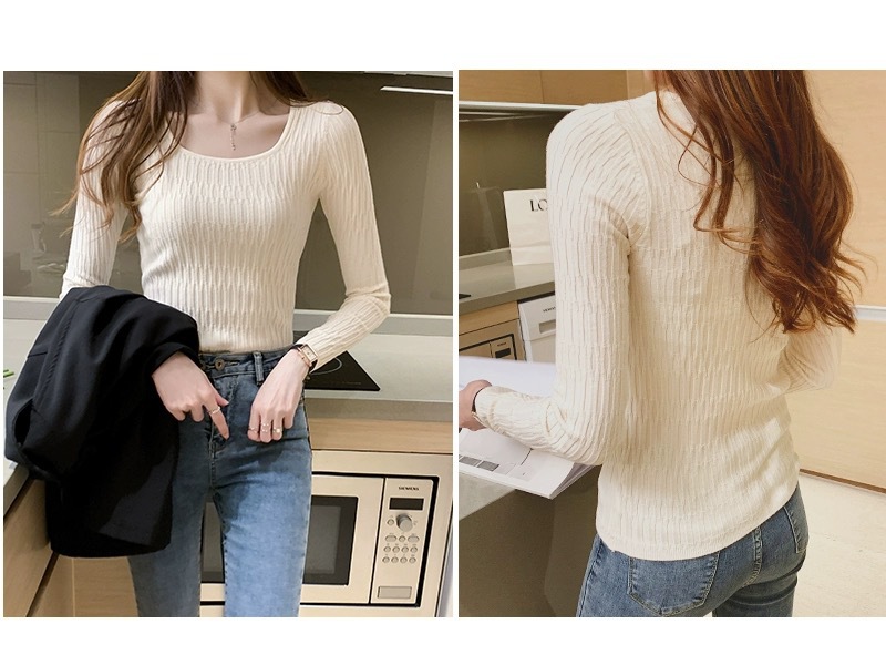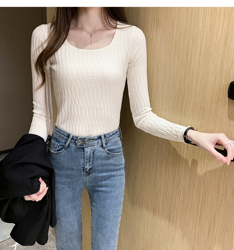 니트 바닥 셔츠 여성의 봄과 가을 2024 외국 스타일의 로우 칼라 긴 소매 탑 슬림 핏 풀오버 스웨터 겨울이있는 새로운 스타일의 인테리어스토어 가기