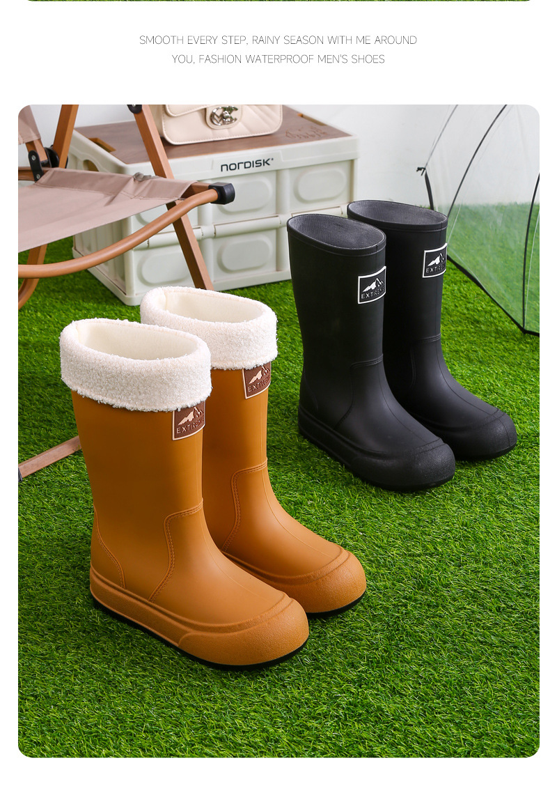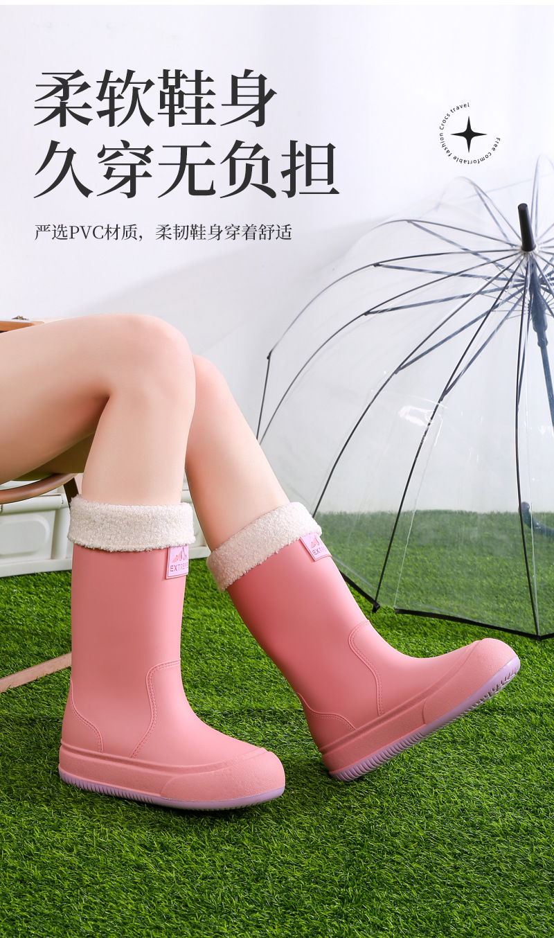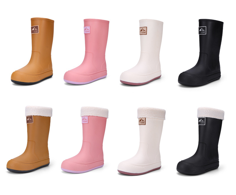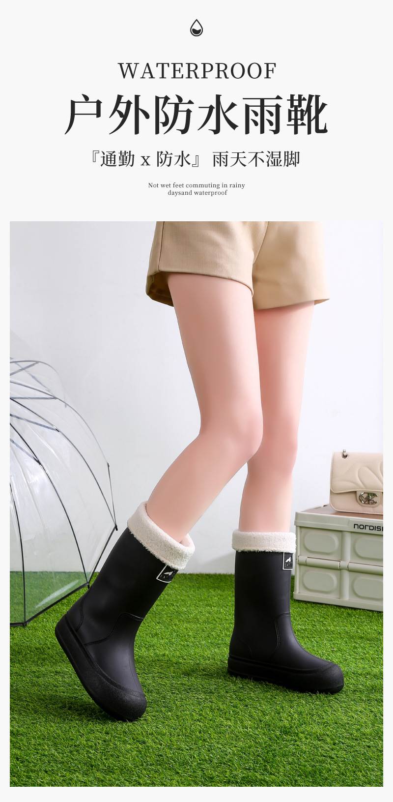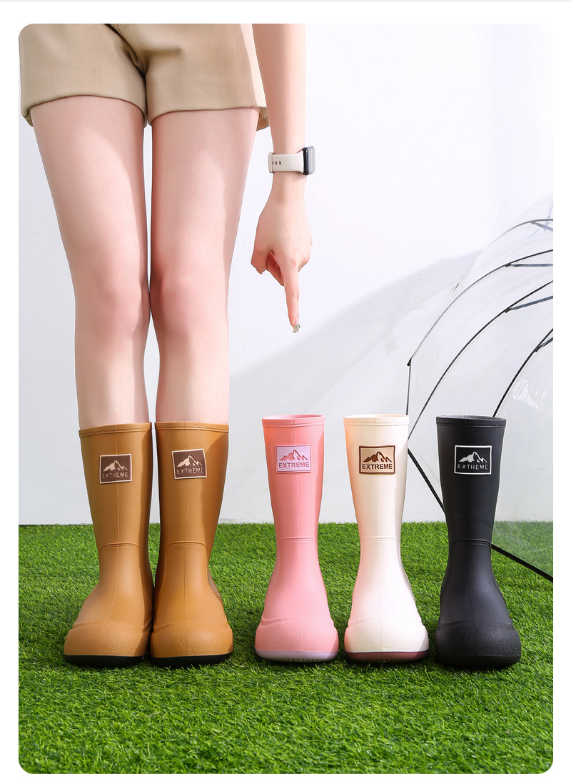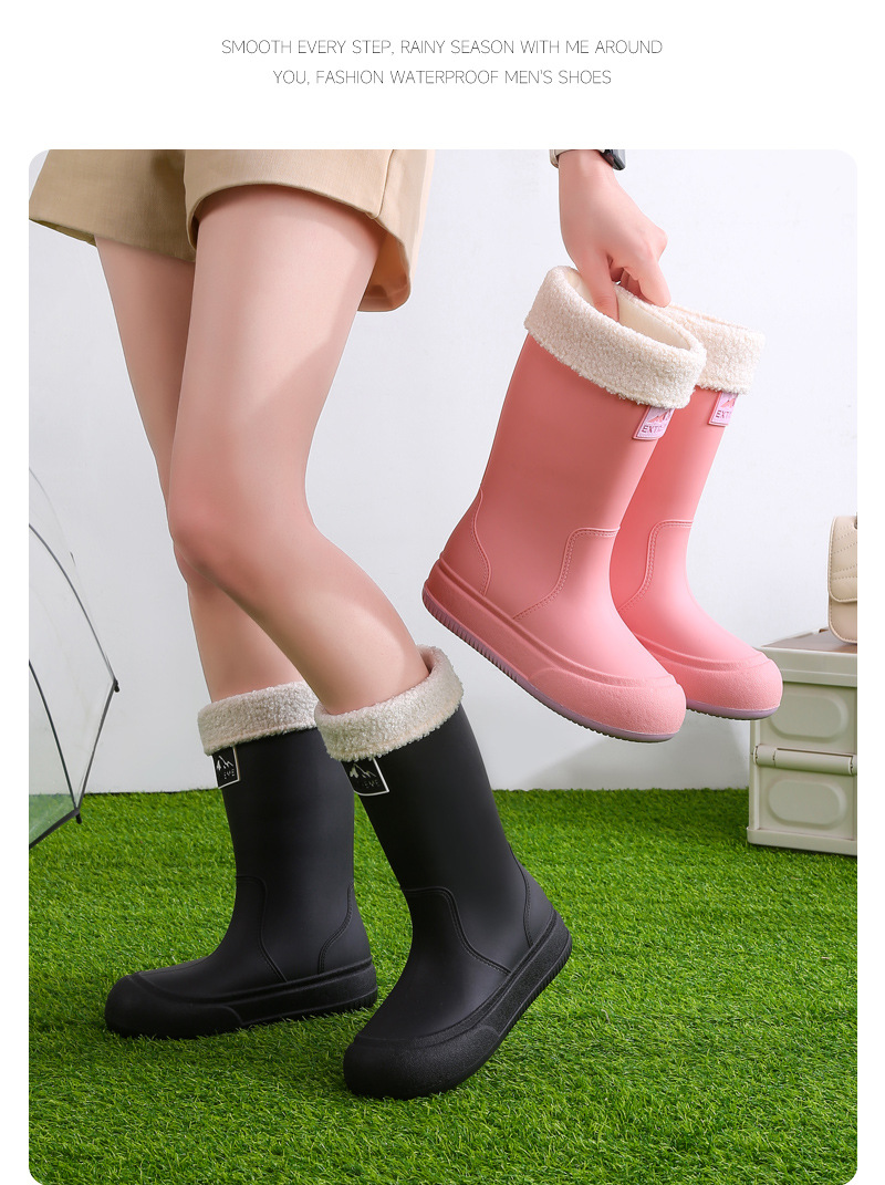 사계절 장화 여성용 기모 장화 키 큰 성인 방수 신발 여성 패션 작업 워터 부츠 비 슬립 주방 고무 신발