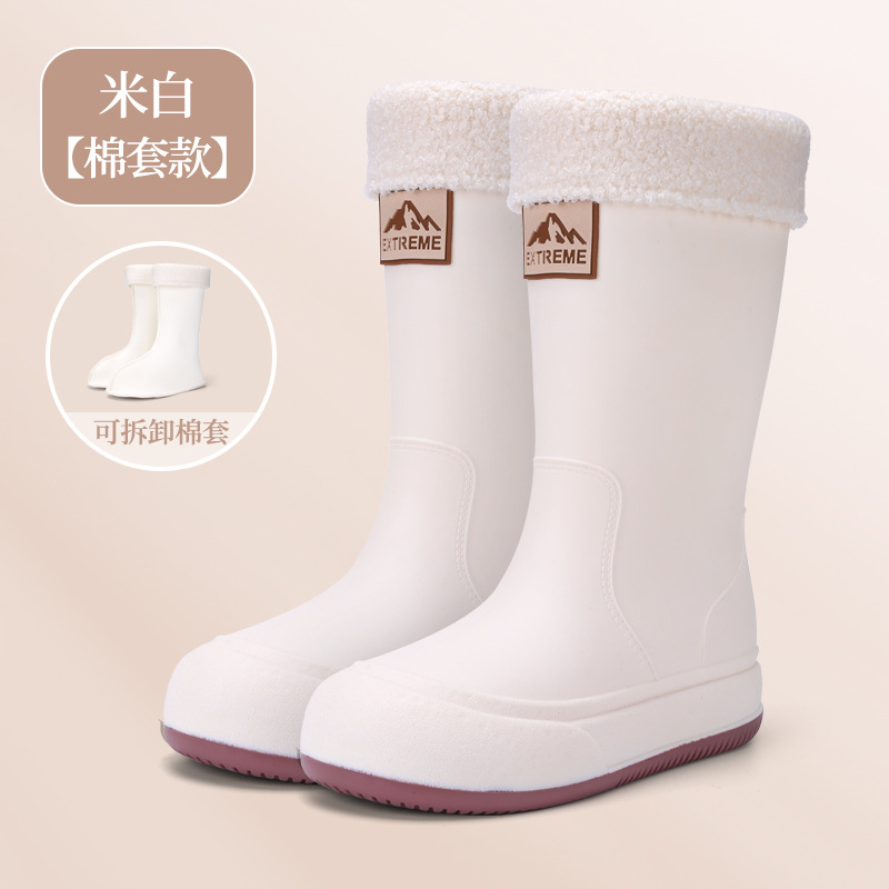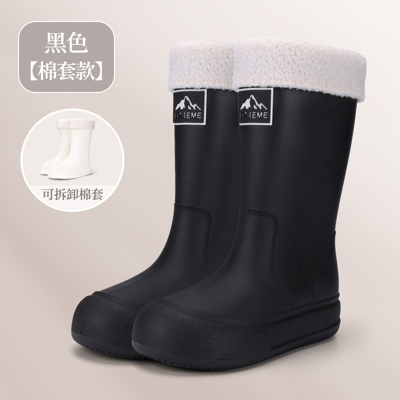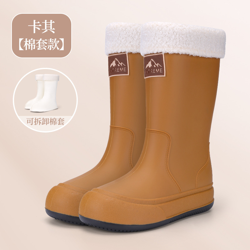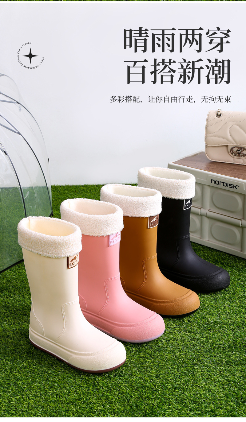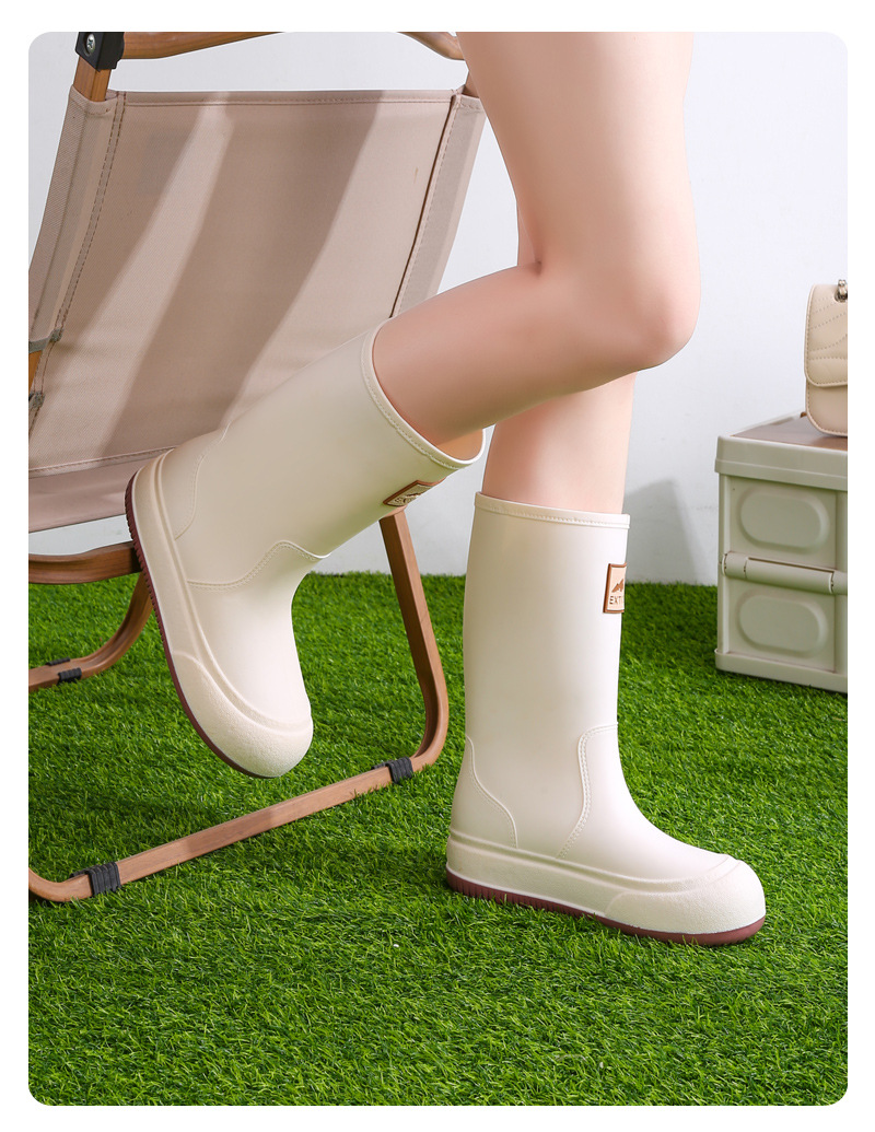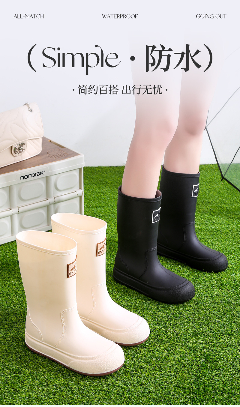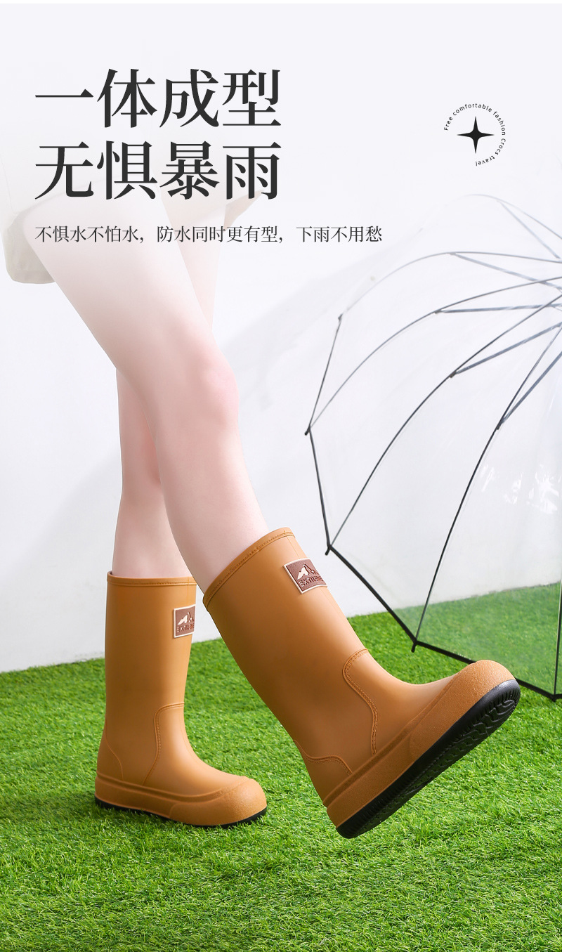 사계절 장화 여성용 기모 장화 키 큰 성인 방수 신발 여성 패션 작업 워터 부츠 비 슬립 주방 고무 신발