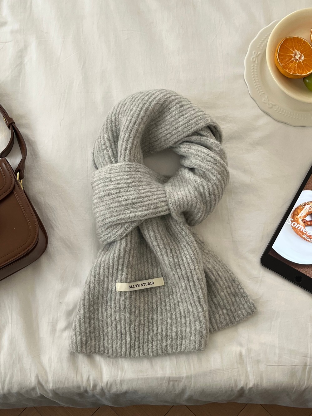 공장 수제 양모 혼합 단색 양모 스카프 여성의 겨울 흰색 새 학생 커플 간단한 니트 스카프