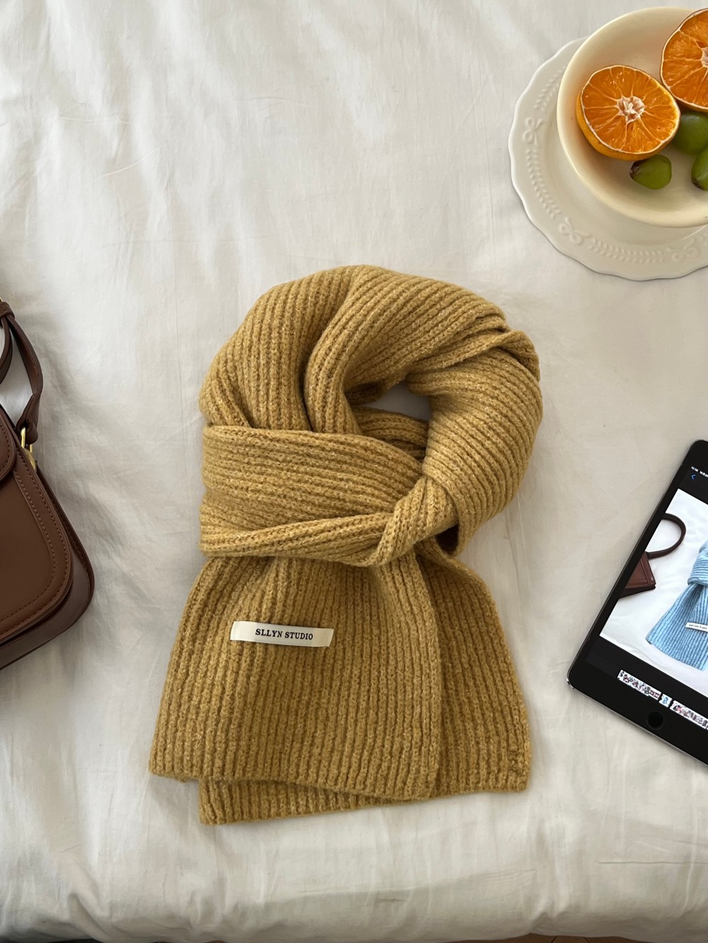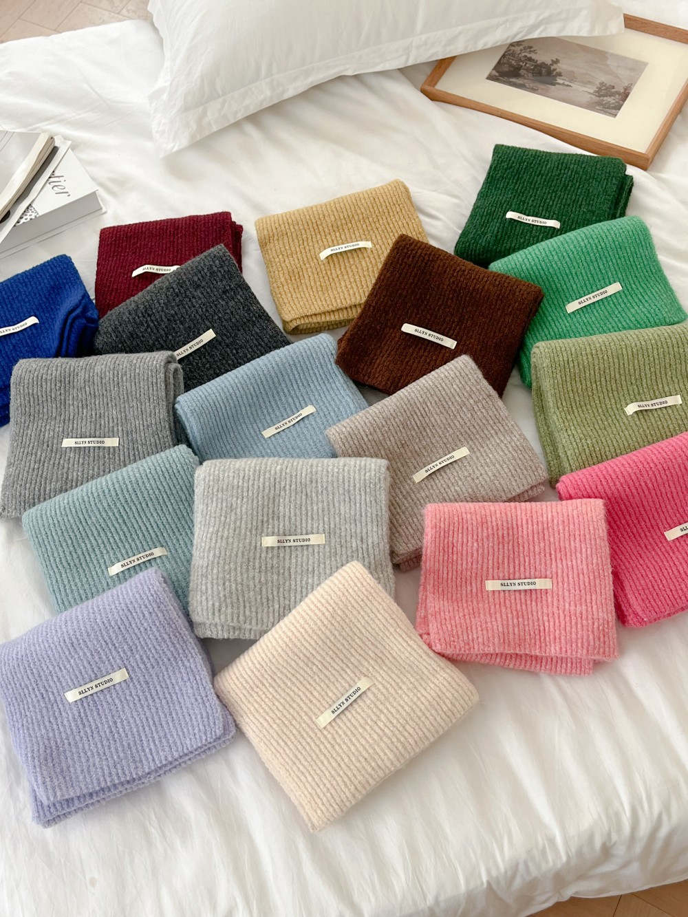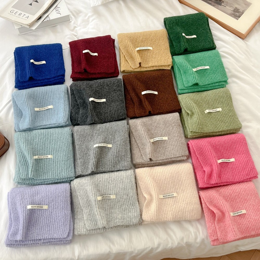 공장 수제 양모 혼합 단색 양모 스카프 여성의 겨울 흰색 새 학생 커플 간단한 니트 스카프스토어 가기