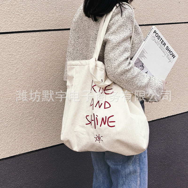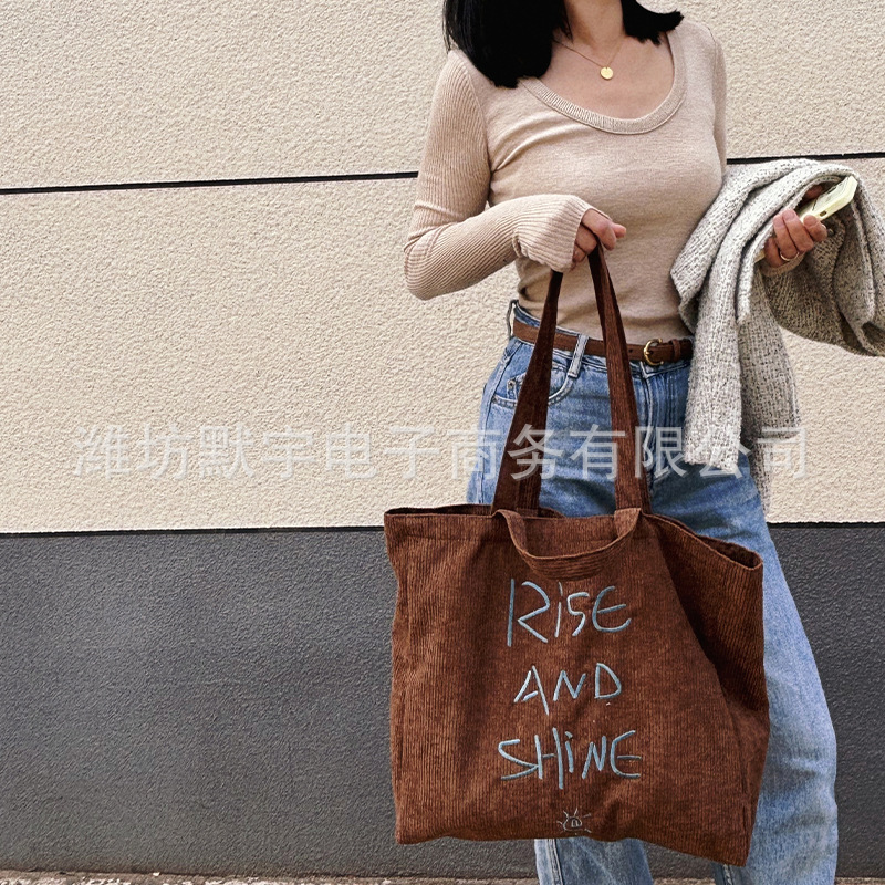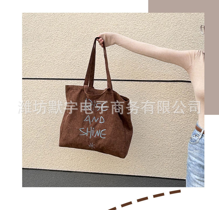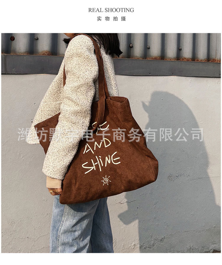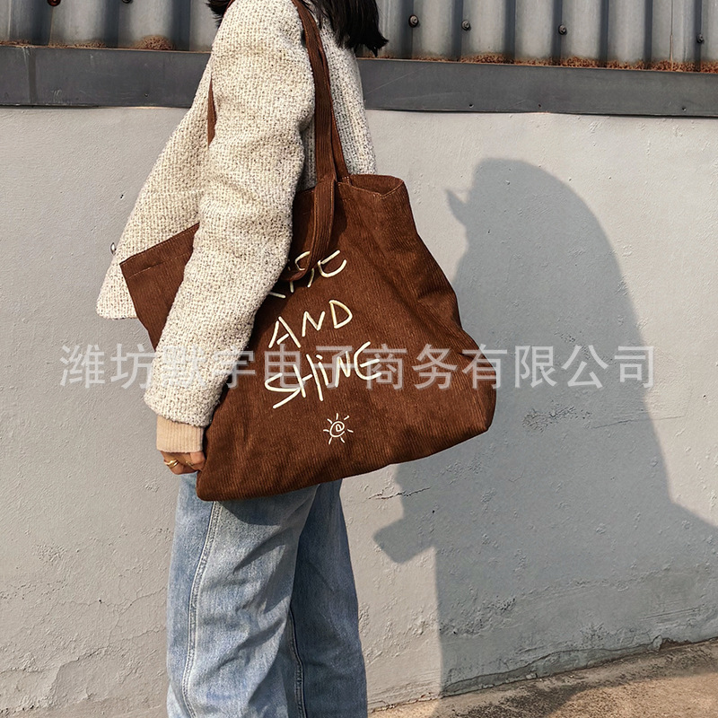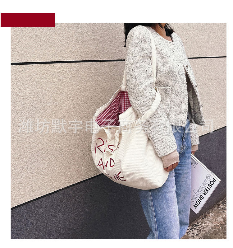 Bufan Liangpin/한국 스타일 간단한 대용량 편지 수 놓은 토트 백 어깨 가방 게으른 가을 핸드백스토어 가기
