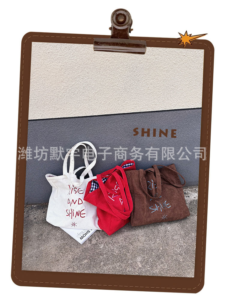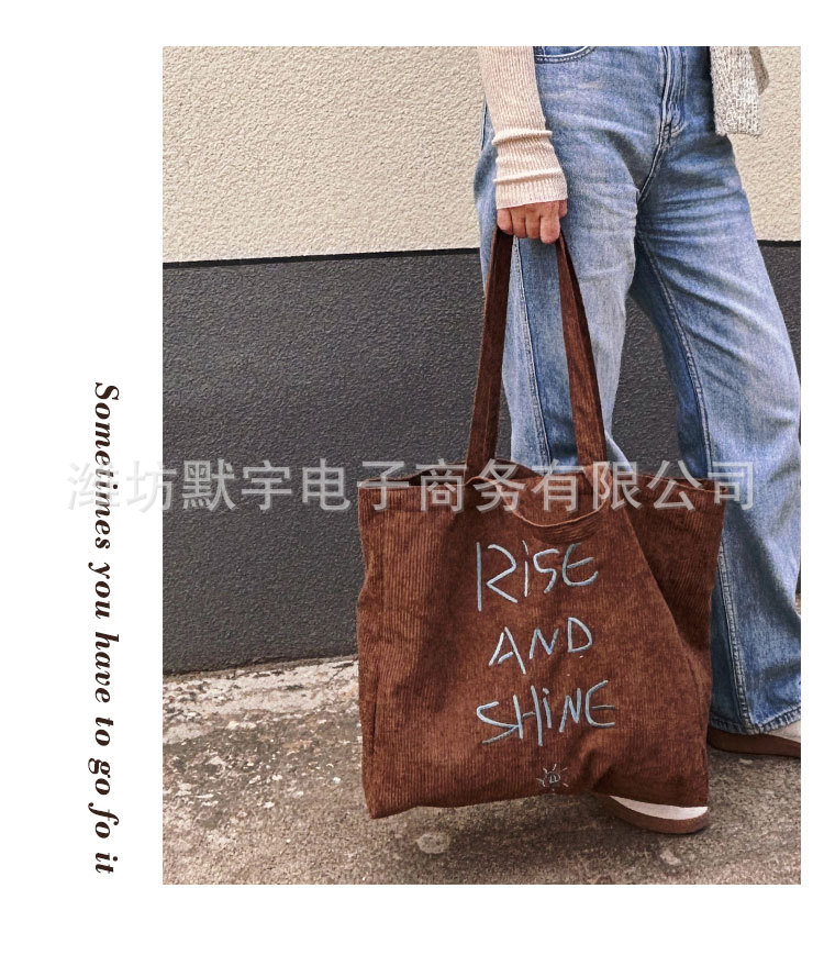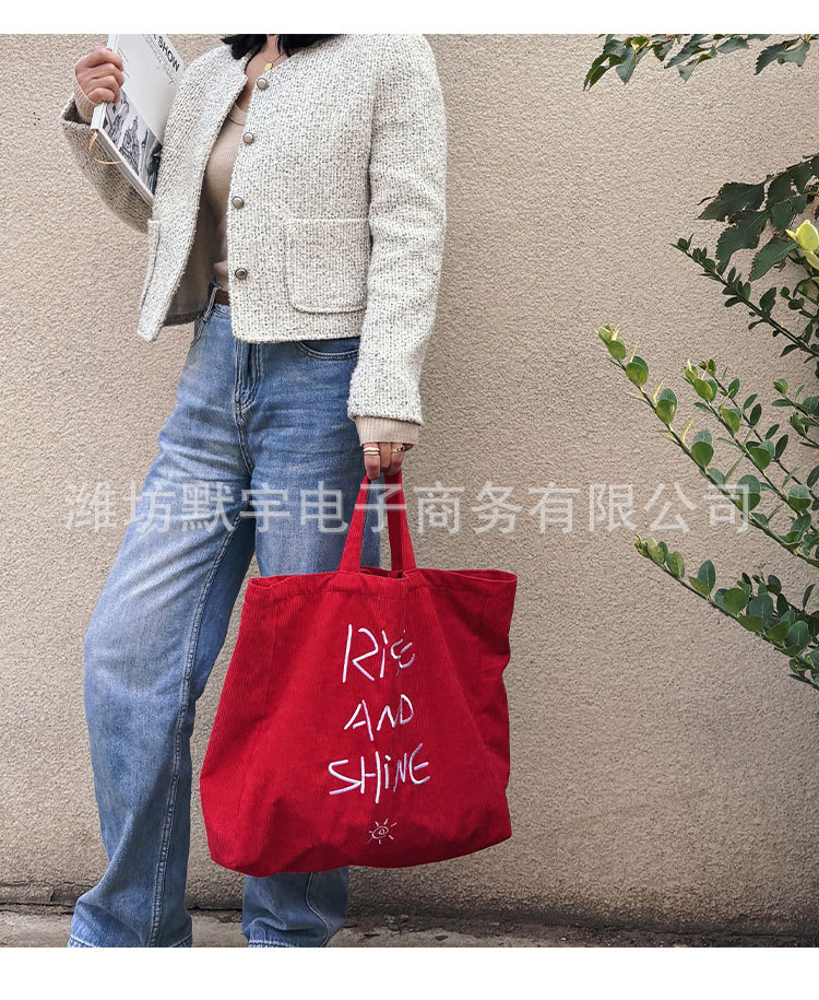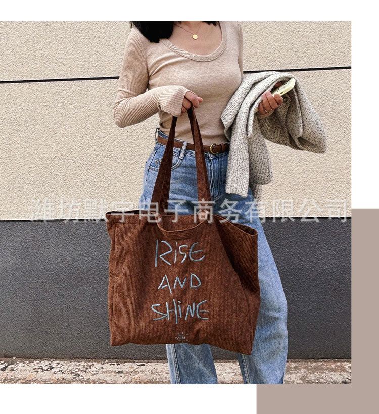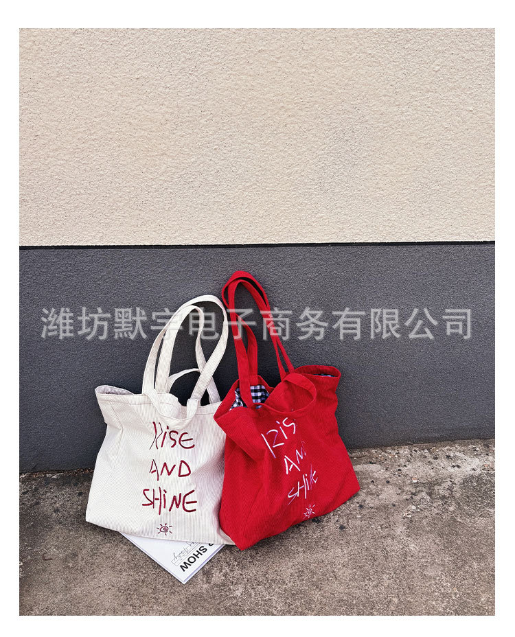 Bufan Liangpin/한국 스타일 간단한 대용량 편지 수 놓은 토트 백 어깨 가방 게으른 가을 핸드백스토어 가기