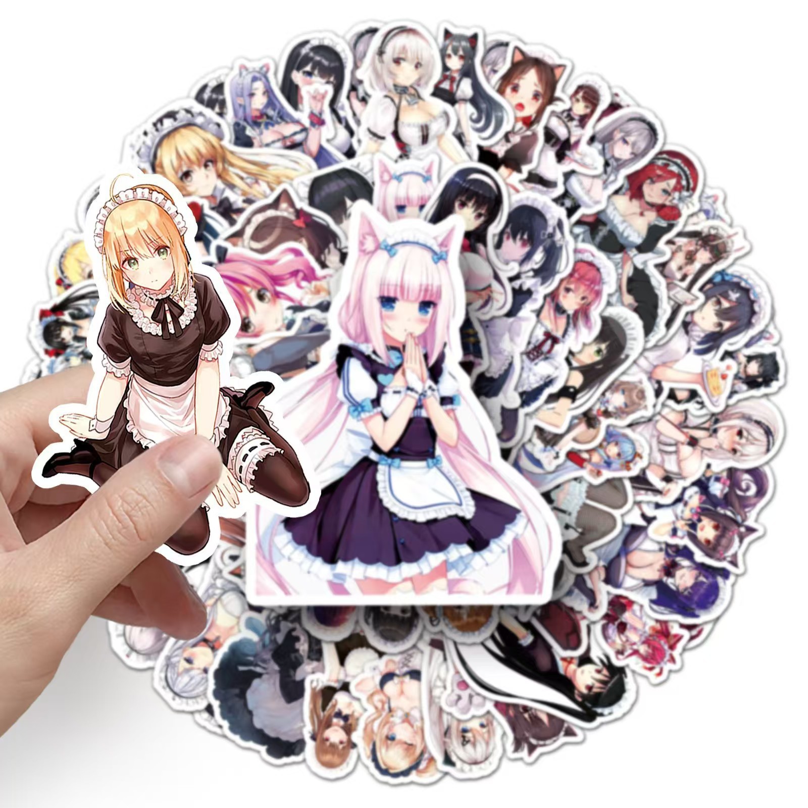 50 2 차원 일본 하녀 스티커 개인화 된 국경 뜨거운 섹시한 아름다움 창조적 인 장식 휴대 전화 쉘 스티커스토어 가기