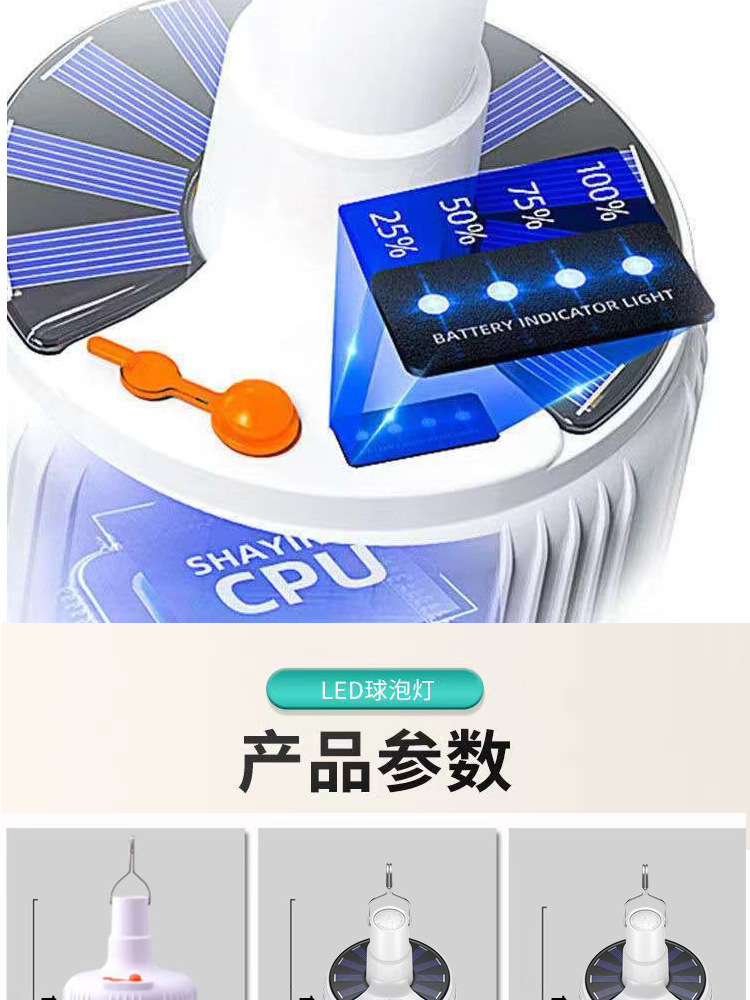 야외 캠핑 LED 텐트 라이트 슈퍼 밝은 스톨 전기 디스플레이 야시장 전구 빛 태양 충전 캠핑 라이트