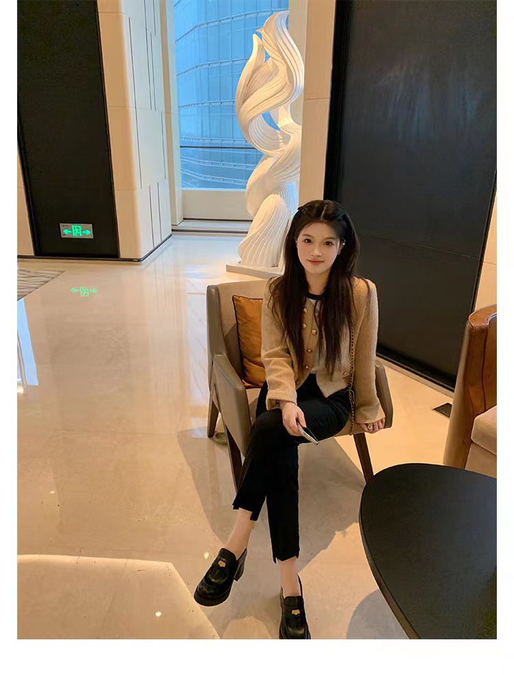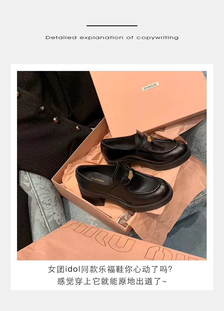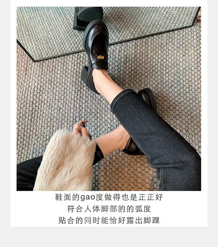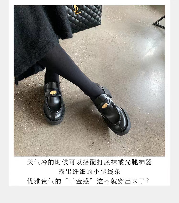 재고 있음, 즉시 배송! 레트로 라운드 토 작은 금화 높이 증가 두꺼운 굽 두꺼운 밑창 영국식 로퍼 작은 가죽 신발 여성 싱글 슈즈스토어 가기