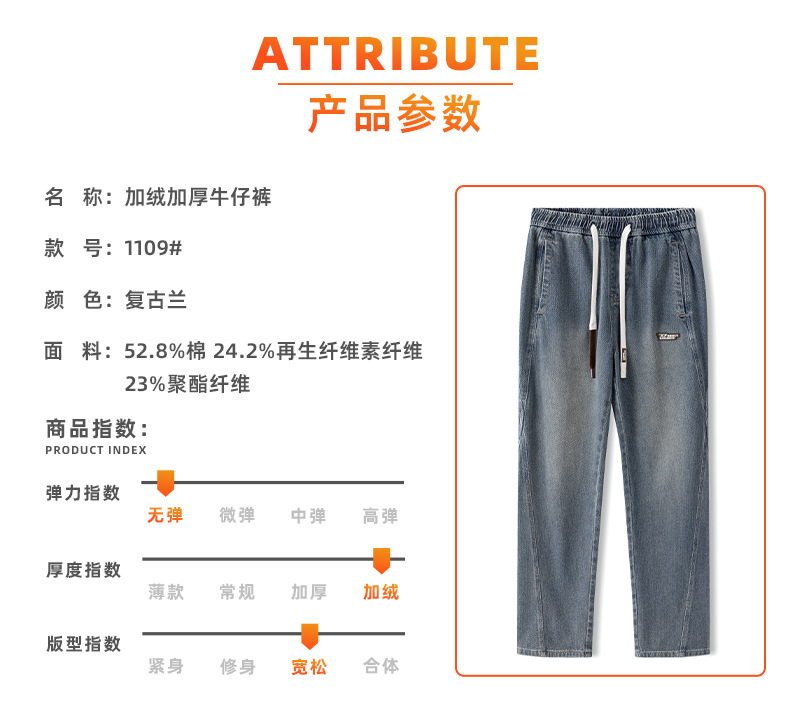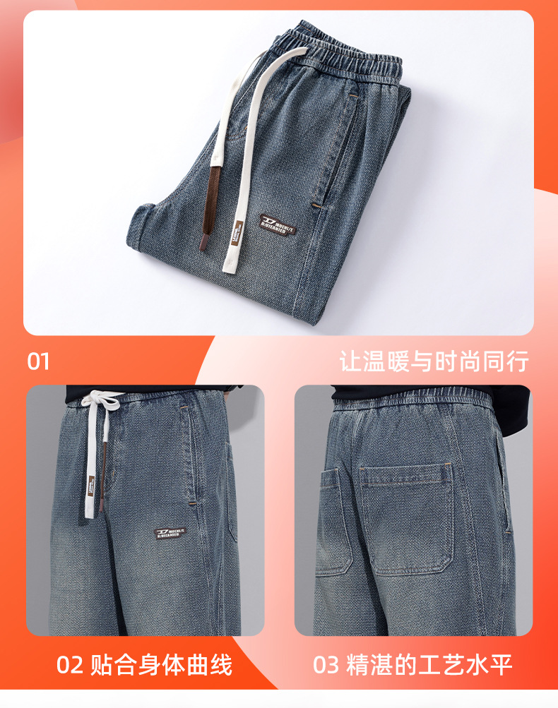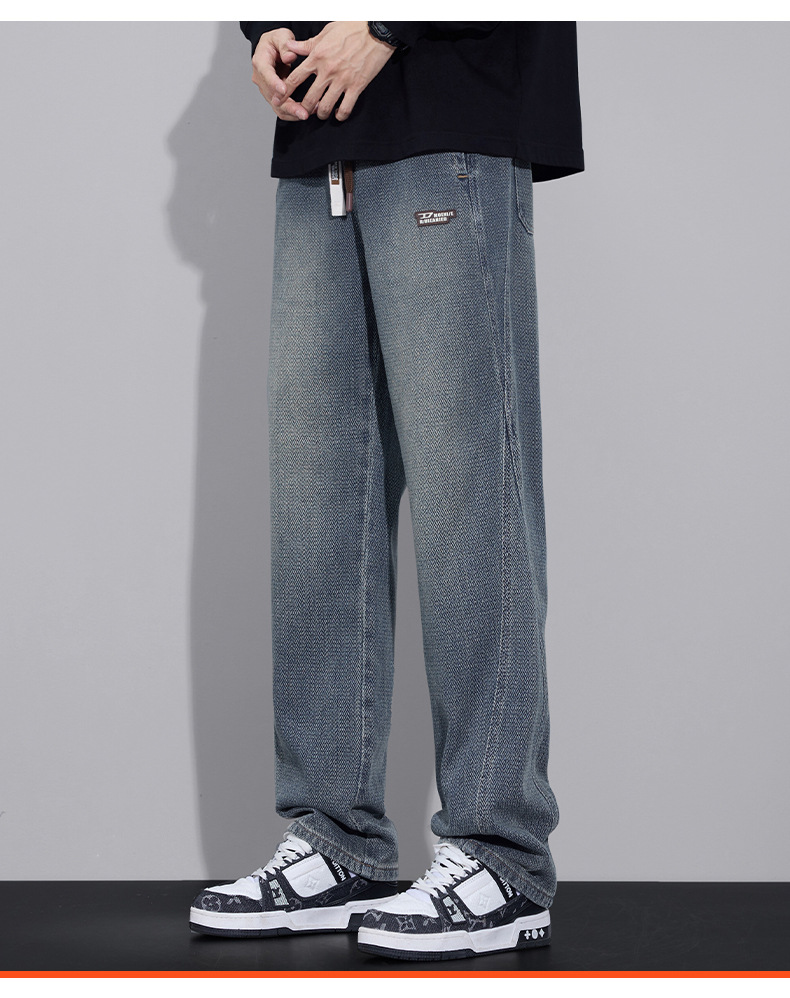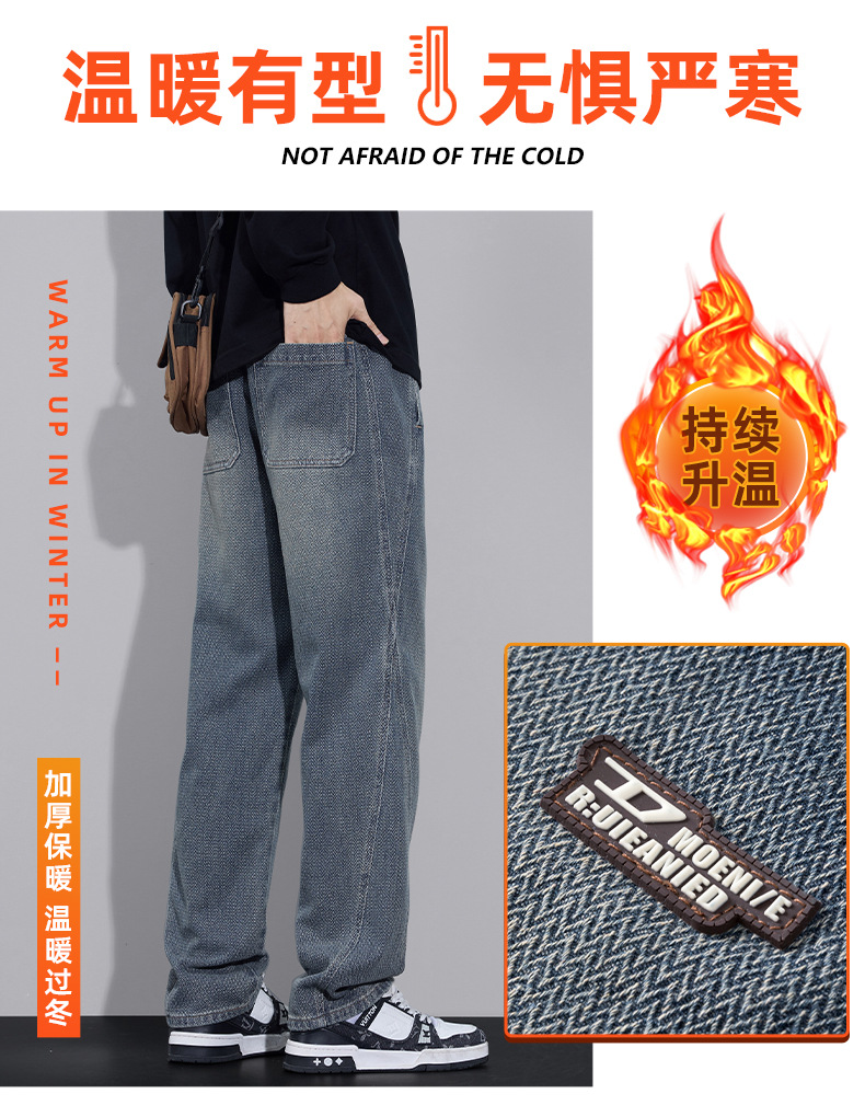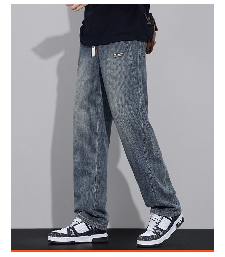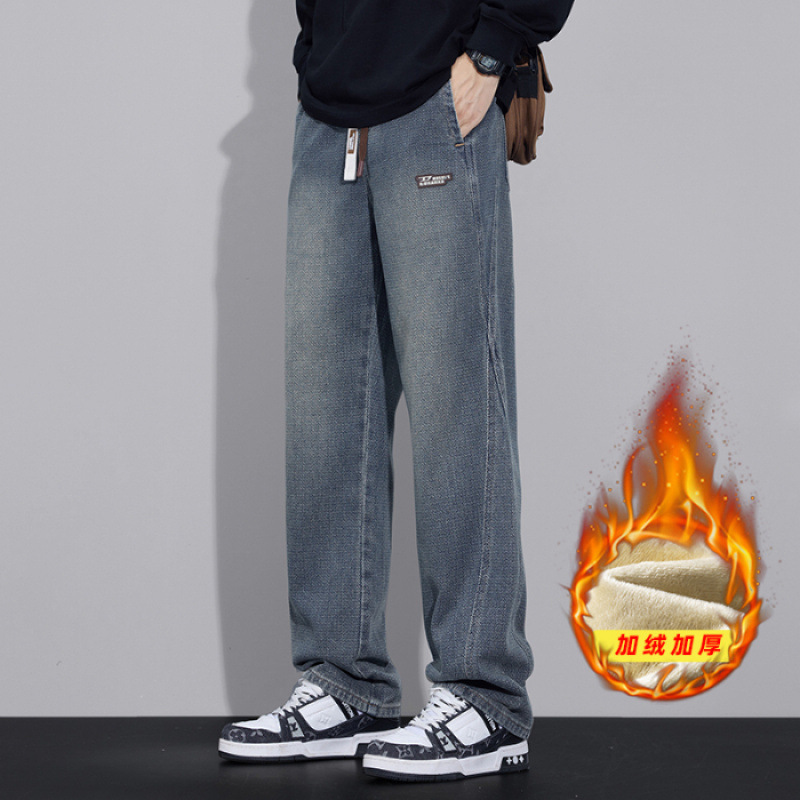 미국 복고풍 청바지 가을과 겨울 새로운 2024 패션 브랜드 느슨한 직선 넓은 다리 캐주얼 세척 양털 긴 바지스토어 가기