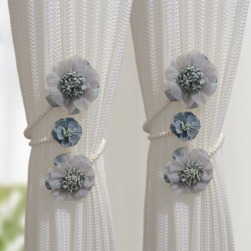 새로운 지점 꽃 커튼 스트랩 빛 고급 창조적 인 고급 거즈 커튼 버클 바인딩 커튼 스토리지 클립 장식 바인딩 로프